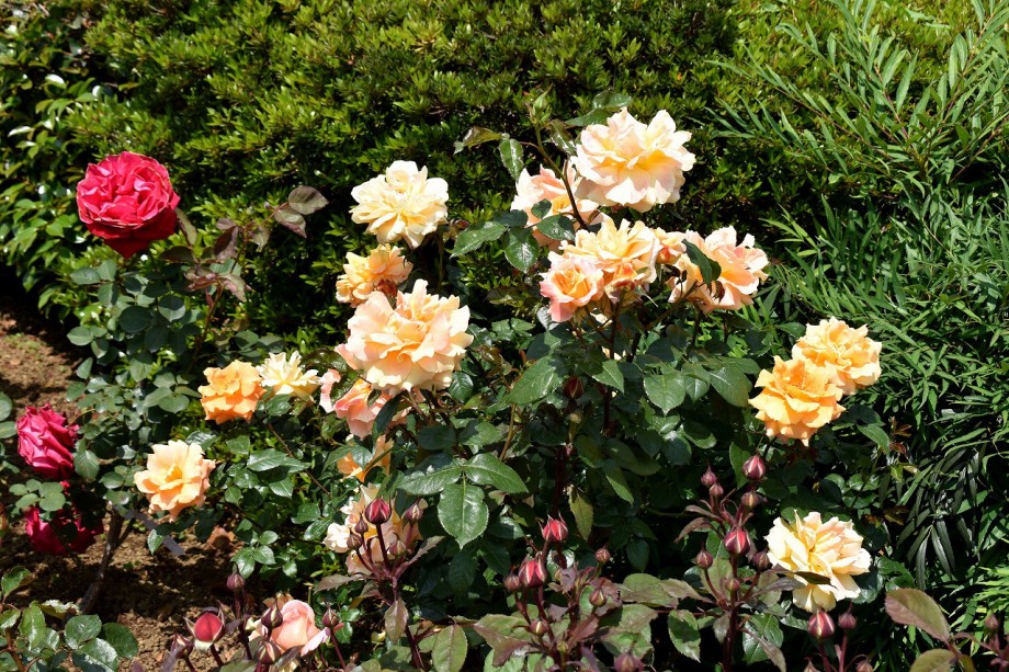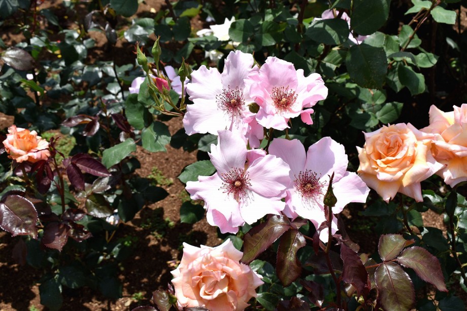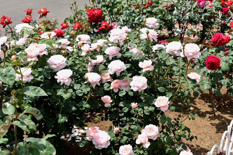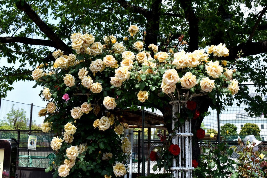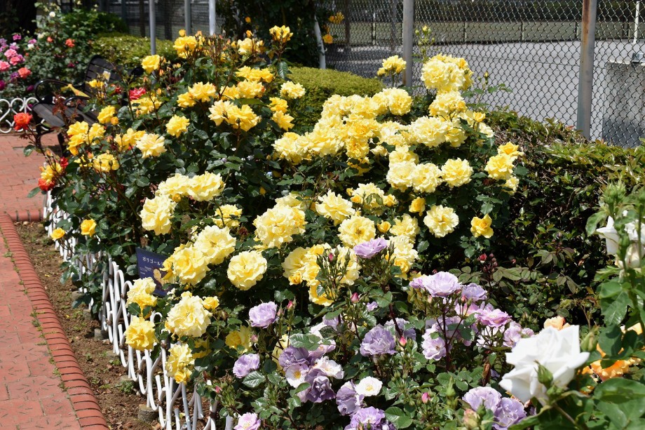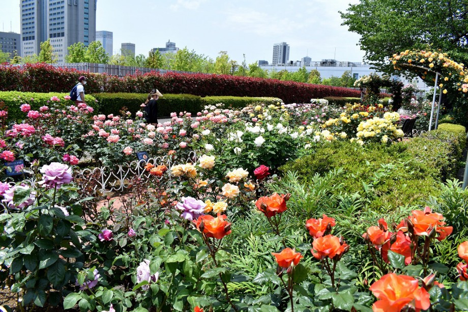 「一言」芝浦中央公園のバラが非常に綺麗になりました。先週に比べてバラの花の数が非常にたくさん増えて咲いています。 バラ園を手入れをしている人も今年はたくさん咲いたと話していました。色々な種類のバラがあり、華やかです。