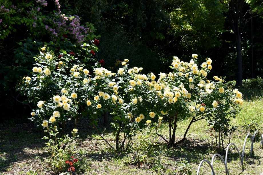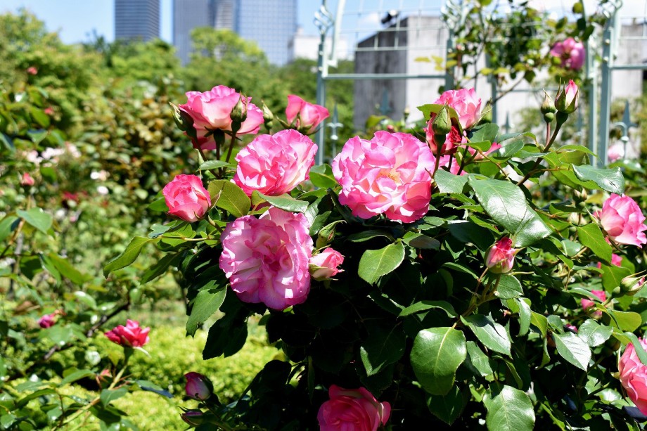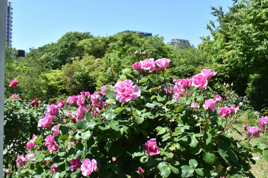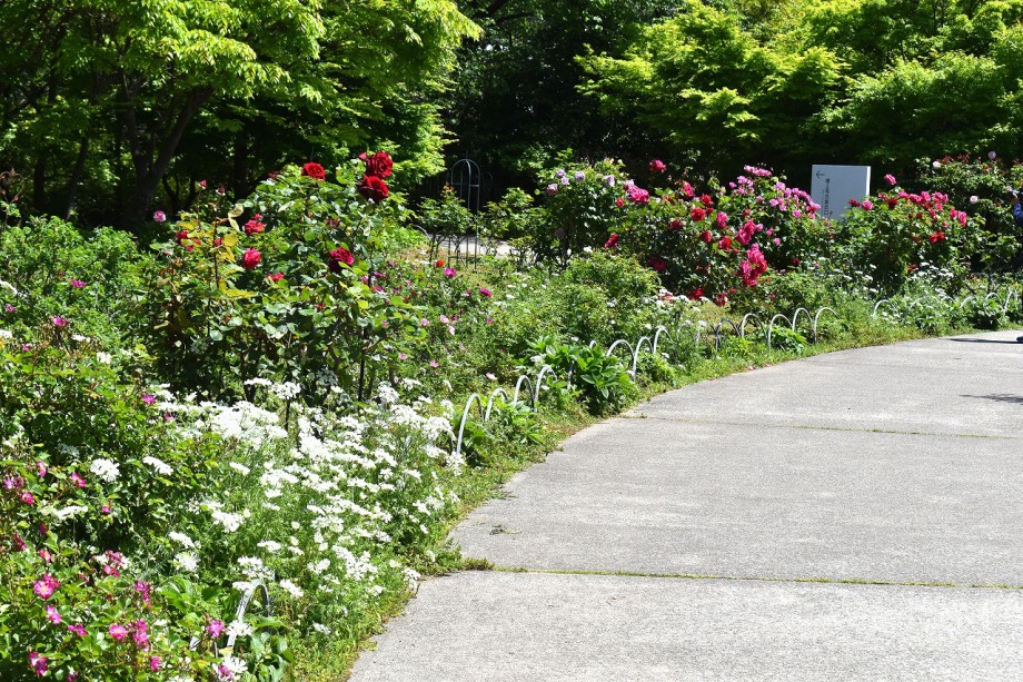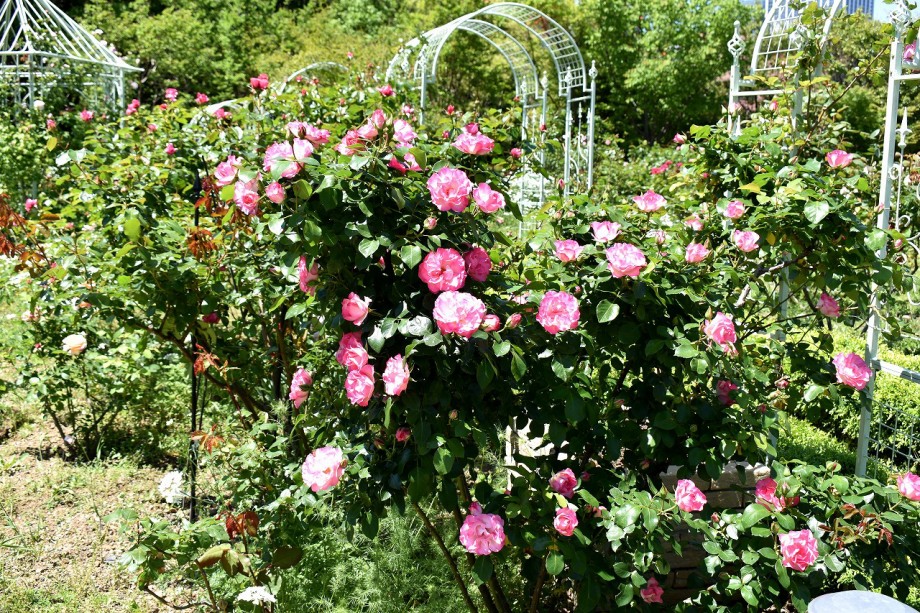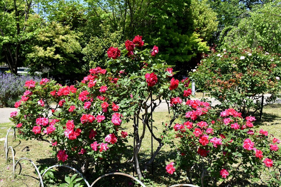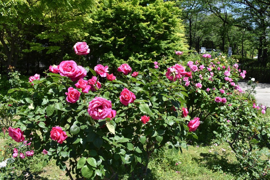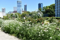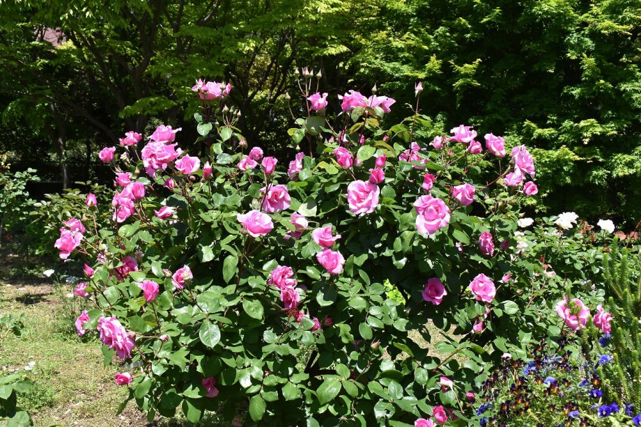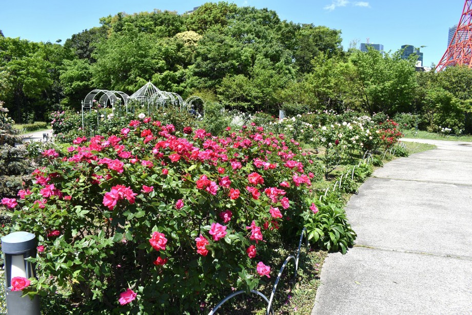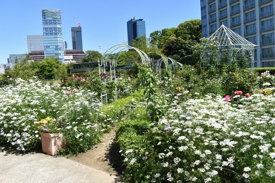 「一言」プリンス芝公園のバラが非常にたくさん咲いて綺麗になってきました。色々な色のバラの花が咲き、花の数も増えて 華やかになりました。白い色のレースフラワー?も一面に咲いていて綺麗です。写真が多いのでバラの花は別にしました。