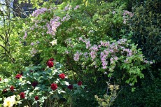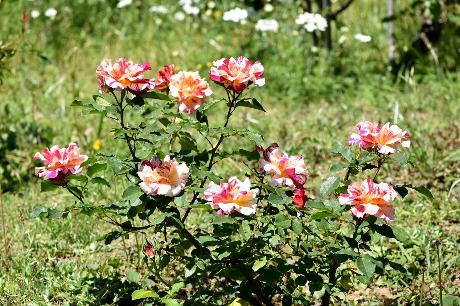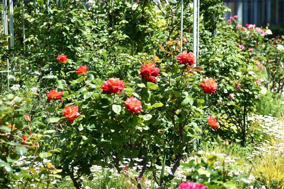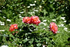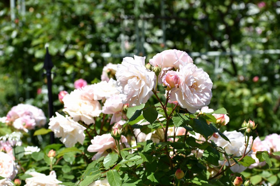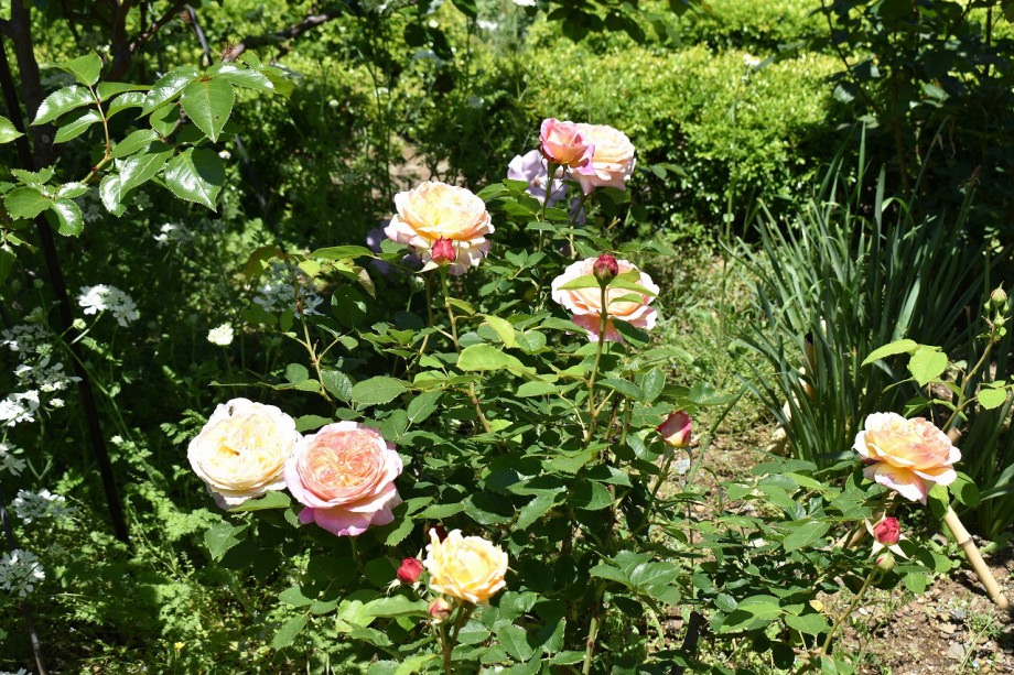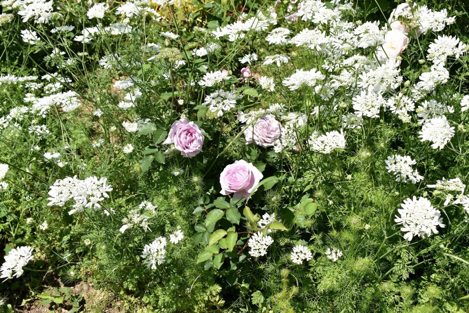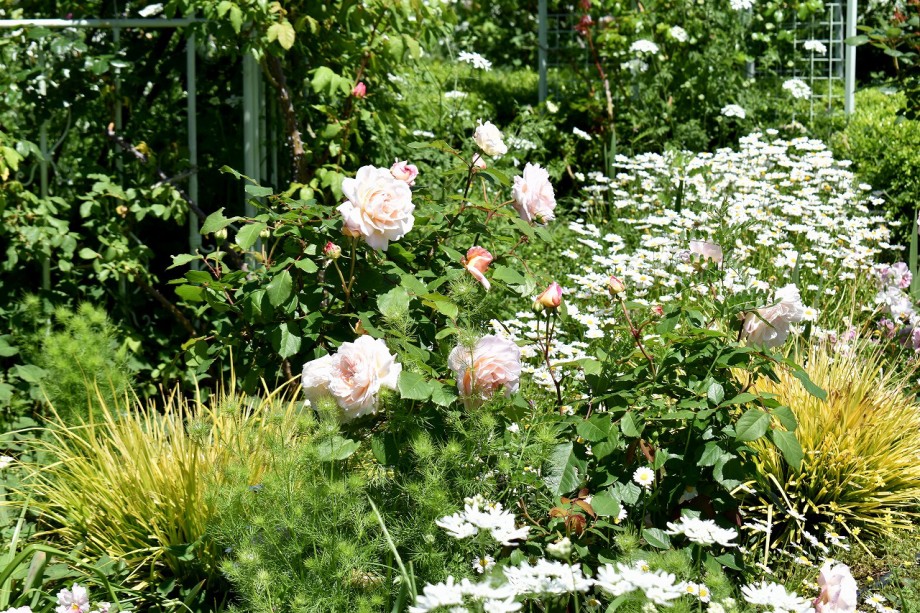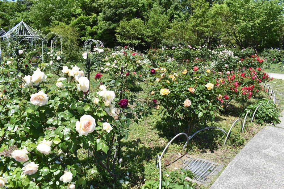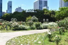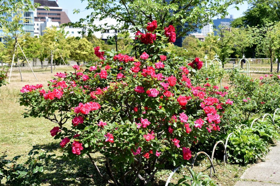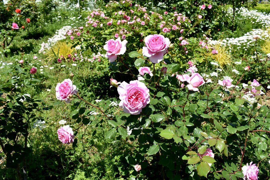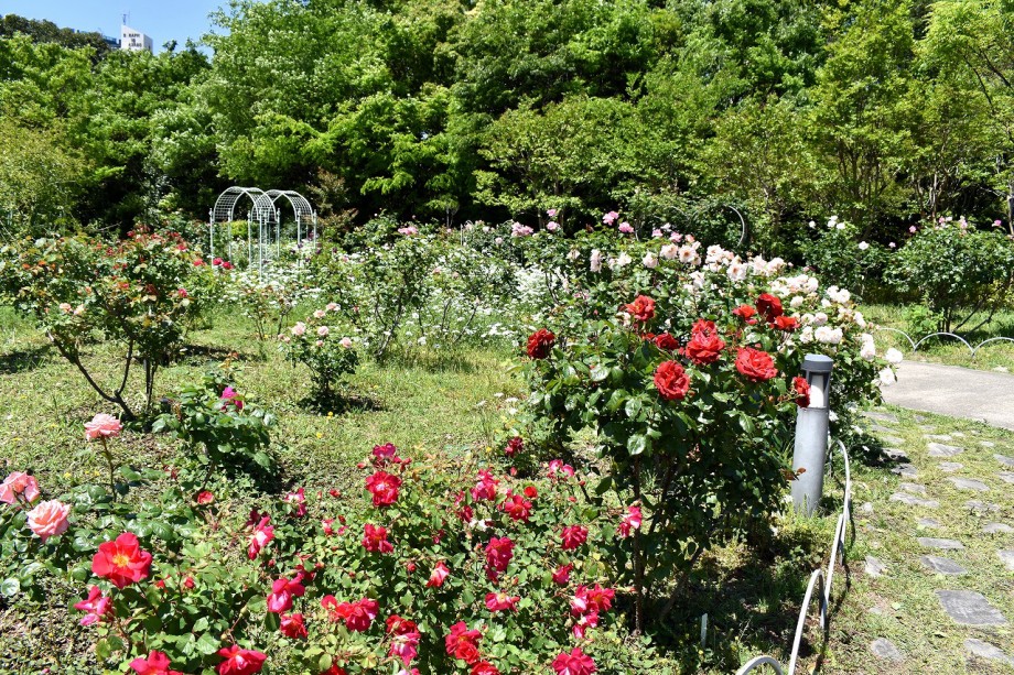 「一言」プリンス芝公園のバラが非常にたくさん咲いて綺麗になってきました。色々な色のバラの花が咲き、花の数も増えて 華やかになりました。白い色のレースフラワー?も一面に咲いていて綺麗です。写真が多いのでバラの花は別にしました。