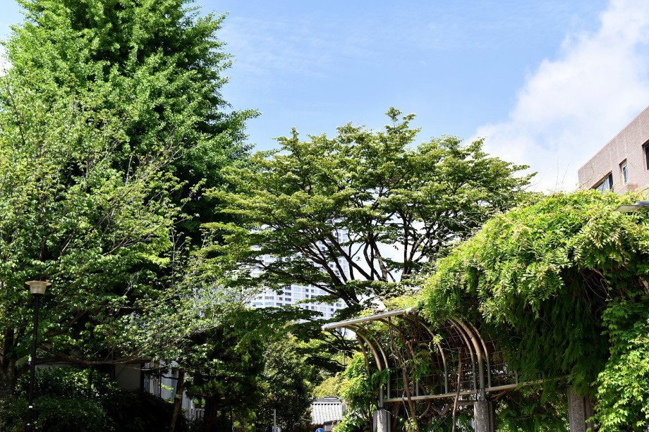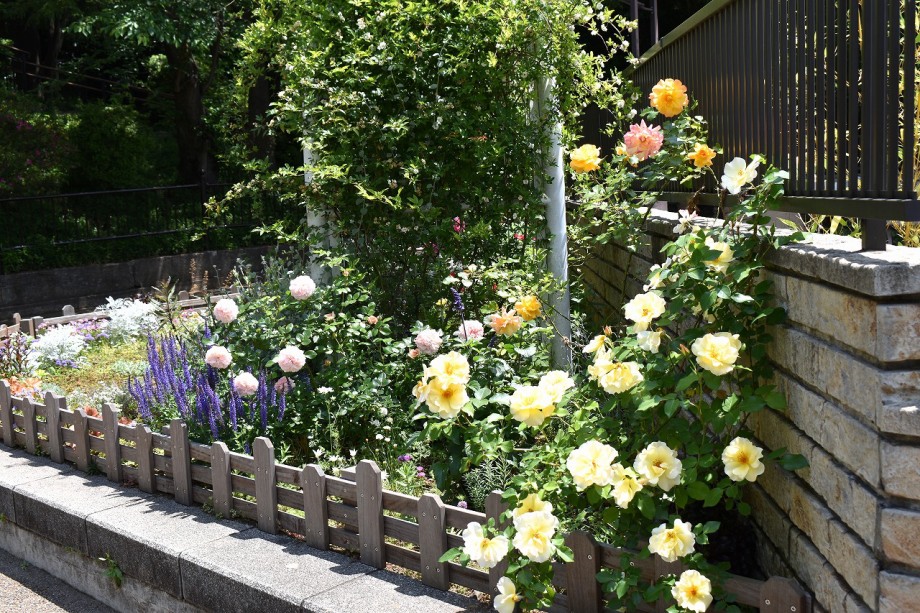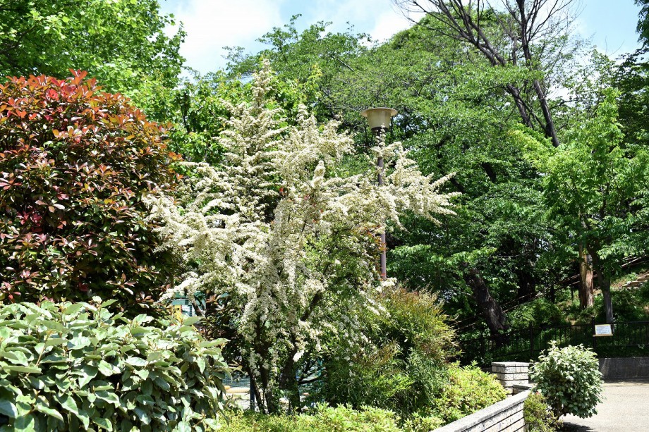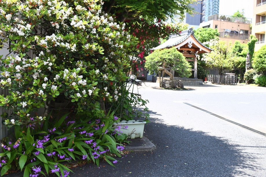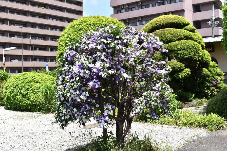 「一言」高輪皇族邸前のプリンセスミチコのバラの花が咲きました。證誠寺にはバンマツリが満開です。シランやバラの花も咲いています。 高輪公園の山法師も咲き出しましたが、大きな木なので、まだ白い花が小さく目立ちません。新緑が綺麗です。フラワーデザインビル のバラが満開です。三田の願海寺や薬王寺のバンマツリが満開です。亀塚公園にはバラが咲いています。三田台遊園の大きなミズキ に花が咲いています。