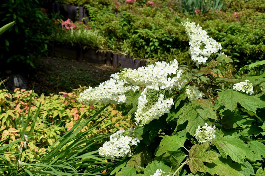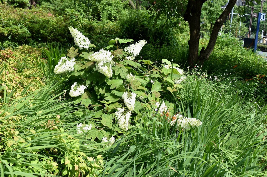 「一言」芝公園にはカシワバアジサイや宮城野萩、ヤマボウシ、シモスケなど色々な花が咲いています。黄色いビョウヤナギや 良く似たヒドコートの黄色い花も咲いています。紫陽花やアガパンサスも咲き始めました。しばらく入れなかった芝離宮 も開園していました。入口にはフクロバナがたくさん咲いていました。紫陽花もあちこちに咲き始めています。年間入場券 の有効期間を変更してくれました。
