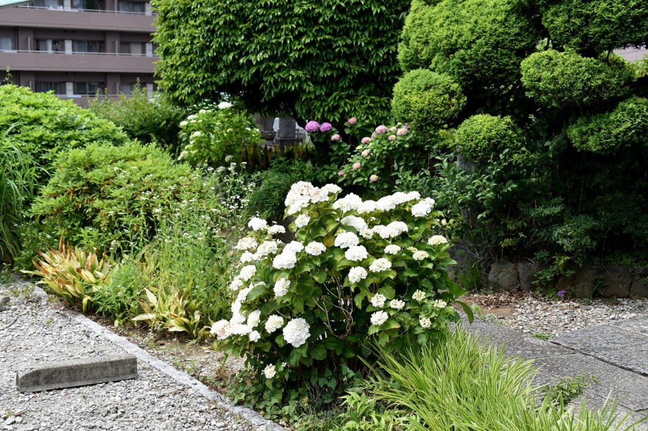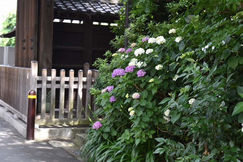 「一言」亀塚公園に続き、林泉寺に泰山木の白い大きな花が咲いています。大きな花が次々と咲きますが、大きな木の上の方に 咲くので写真を撮るのは難しい感じです。三田台児童遊園には色々な種類の紫陽花が咲いています。願海寺や明王院、 正山寺にも紫陽花が咲いています。皇族邸の前に植えられたプリンセスミチコのバラはまだ咲いています。伊皿子坂や 泉岳寺の入り口にも紫陽花が咲き出しました。