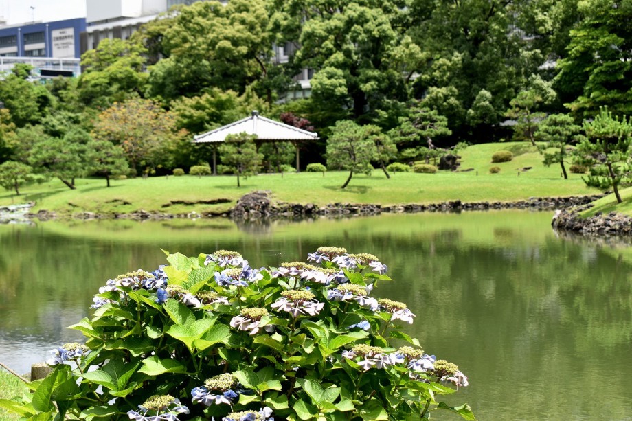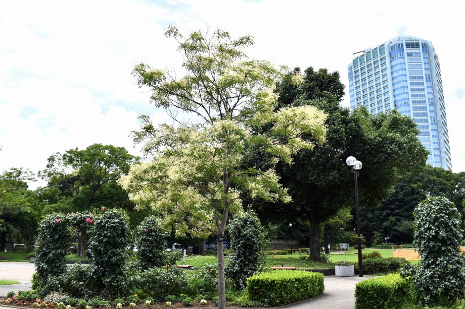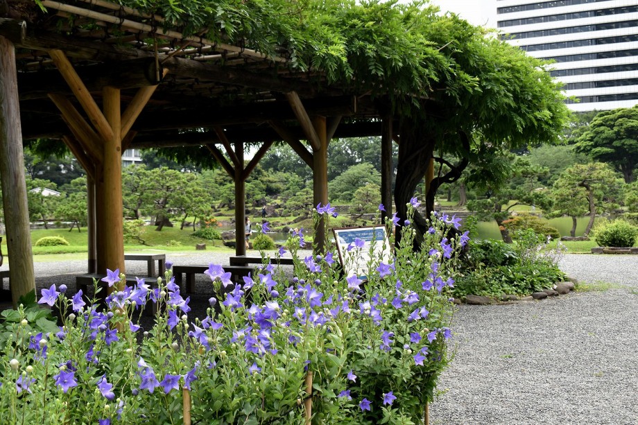 「一言」芝公園にはアガパンサスが咲き始めています。シマトネリコの花が公園の中のあちこちに咲いています。旧芝離宮の入口近くには 桔梗に花がたくさん咲いています。ホタルブクロやギボウシの花も咲いています。池には花菖蒲やカキツバタの花が残っています。 園内にはあちこちにオレンジ色のヤブカンゾウや白いインドハマユウの花が咲いています。ムクゲや夾竹桃も咲き出しています。