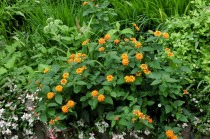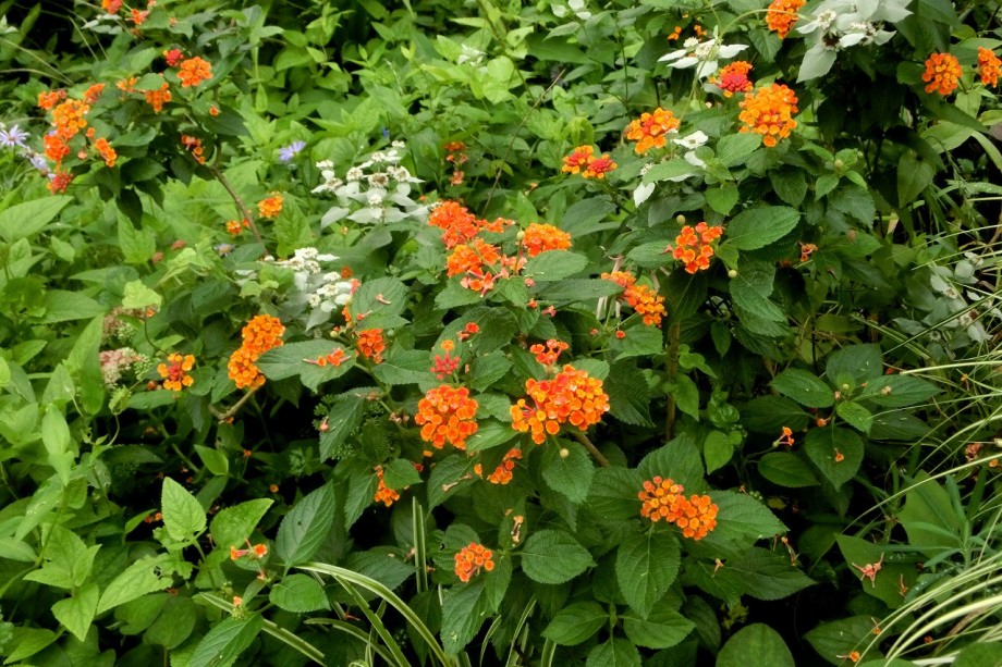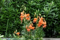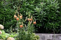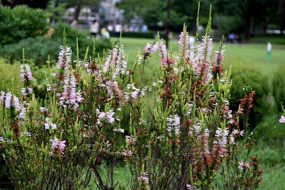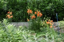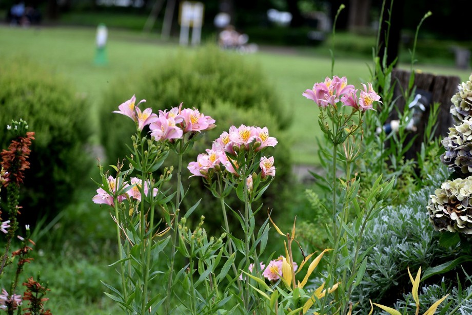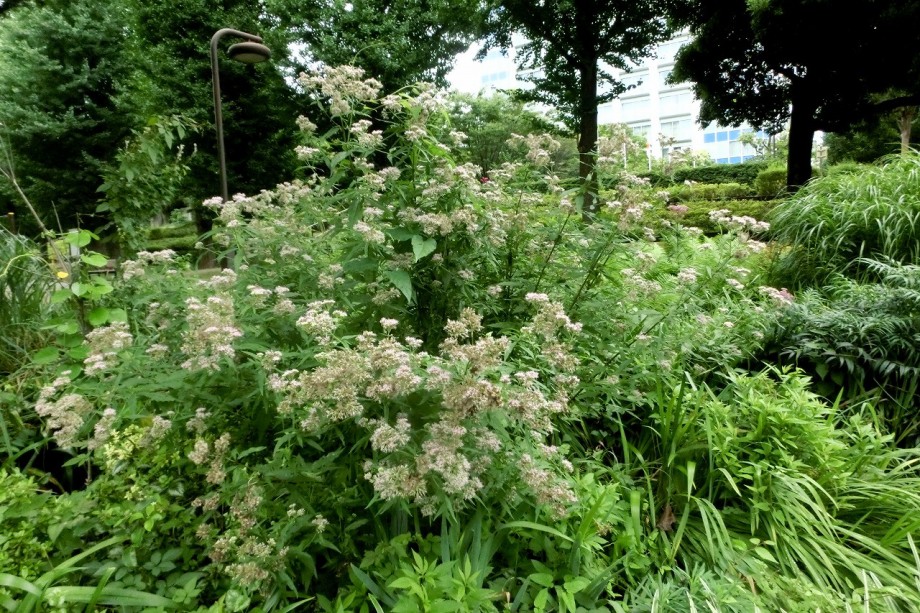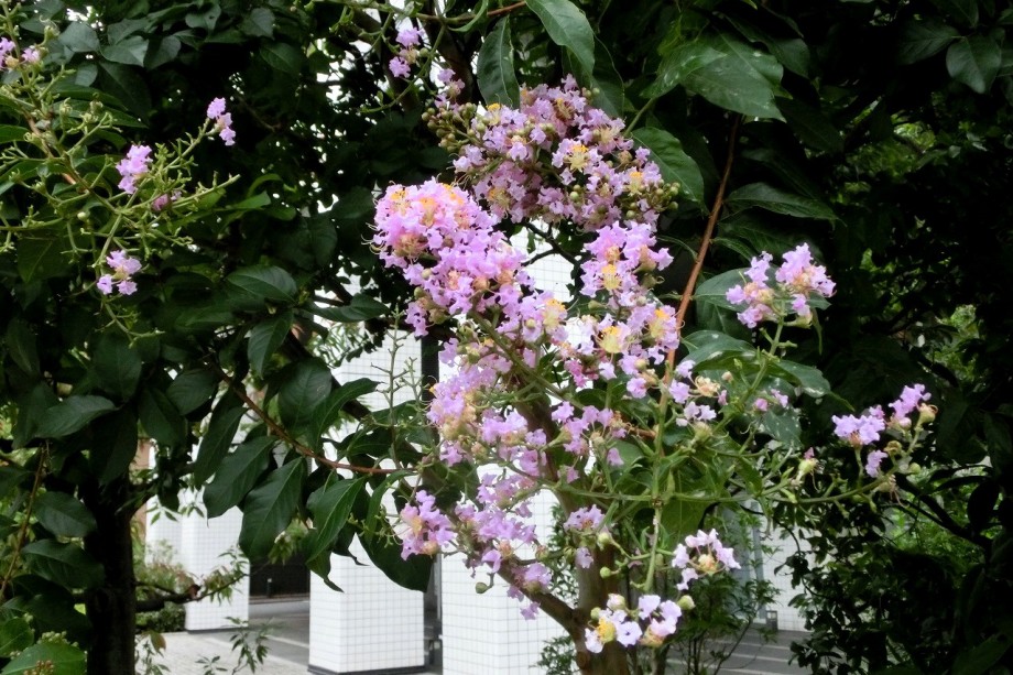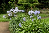 「一言」芝公園の広場にアガパンサスの花が一斉に咲きました。大きなムクゲの木にはたくさんの花が咲いています。 オニユリも咲いています。白やピンクの夾竹桃やヒマワリが咲き始めていました。ヒメリンゴも実っていました。 赤羽橋の近くには百日紅の花が咲いています。
