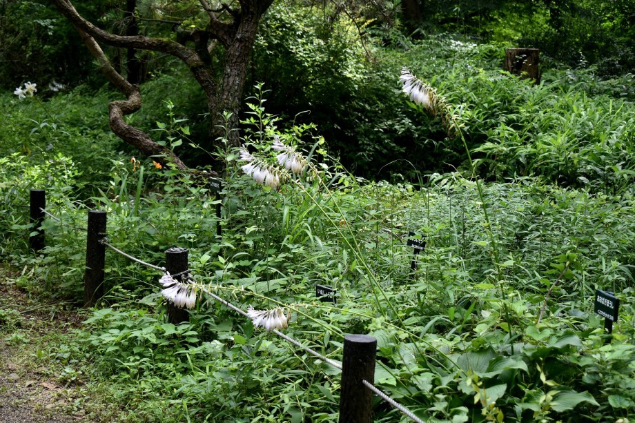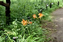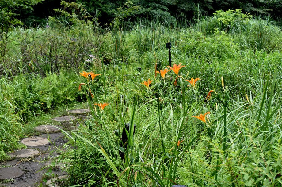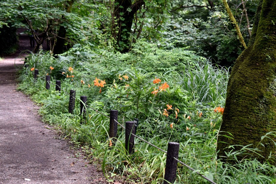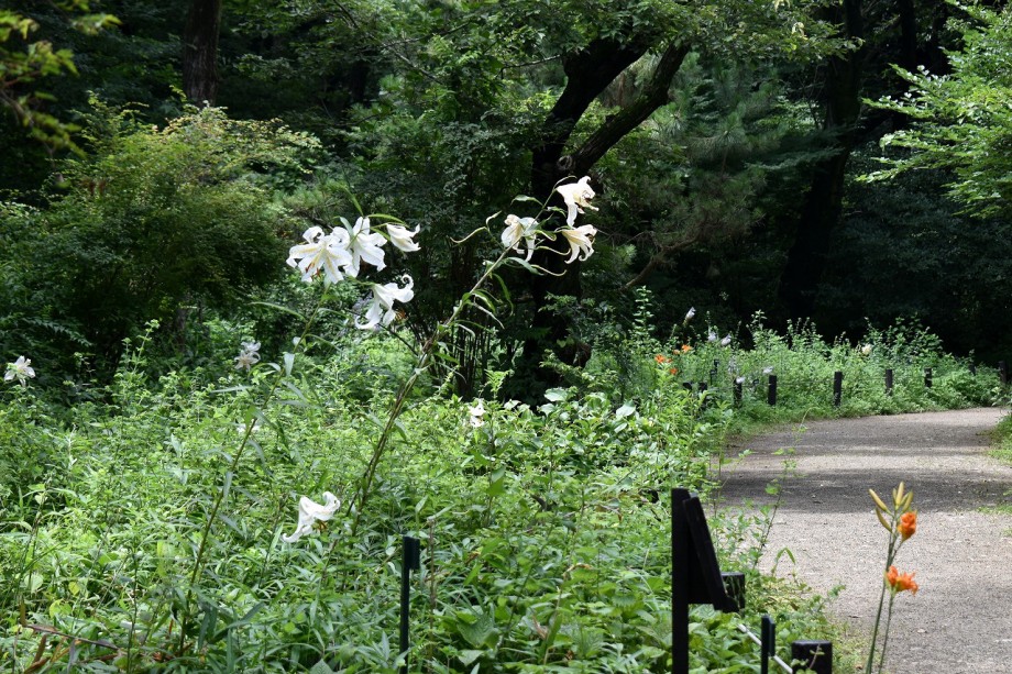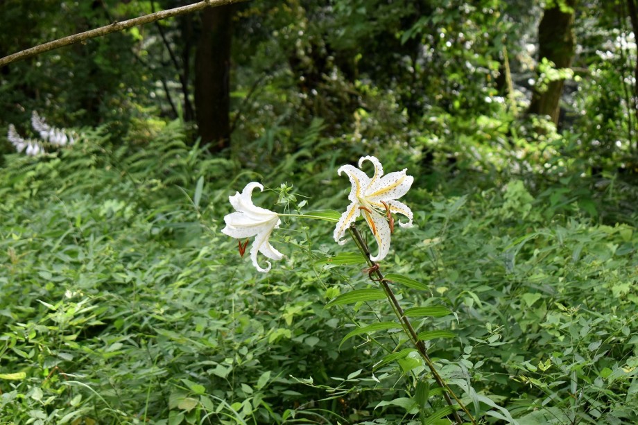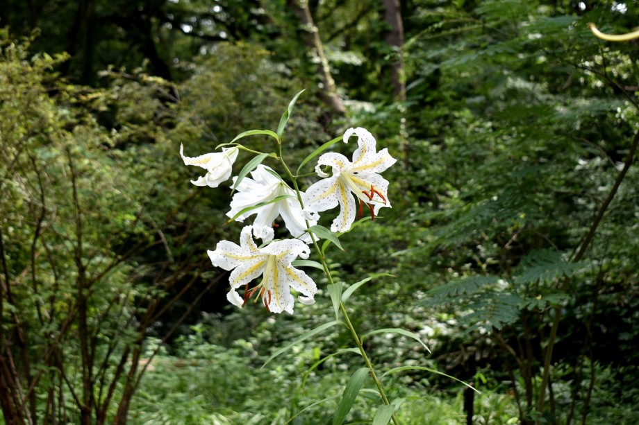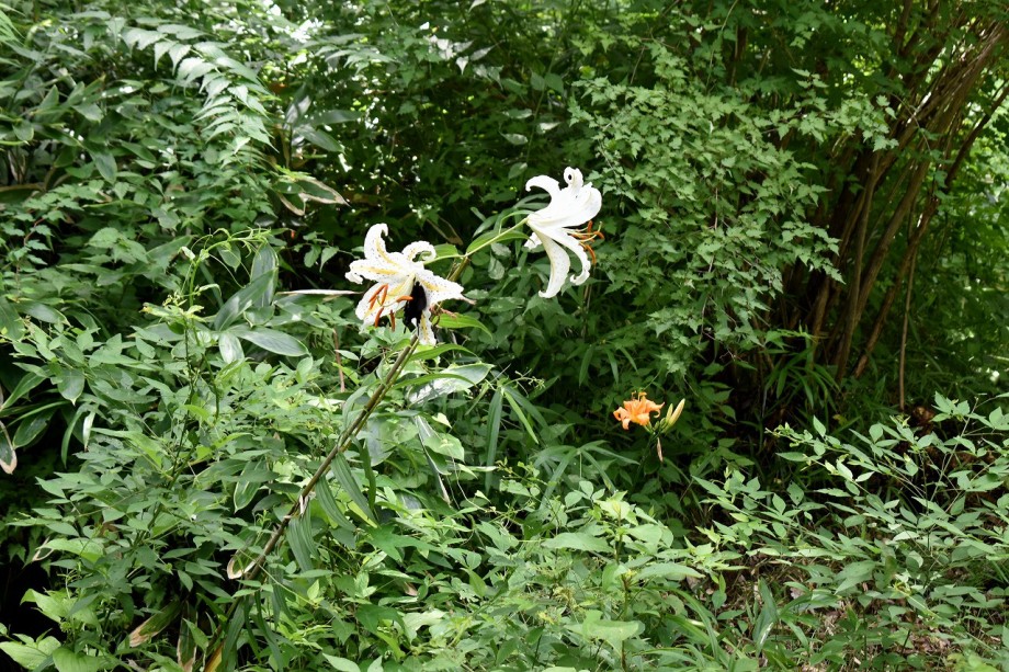 「一言」自然教育園にはヤマユリが見頃ということで見に行きました。入口の近くにはヤブミョウガがたくさん咲いていました。ユウガキクやガマズミ、 ガマの穂、カワラナデシコ、ミソハギなど色々な花が咲いていました。池のまわりにはノカンゾウやヤブカンゾウの花がたくさん咲いていました。 モンキアゲハが花に飛んできていました。園の奥の方にヤマユリやオオバギボウシの花が咲いていました。色々な花が咲いていて楽しかった。