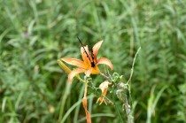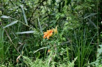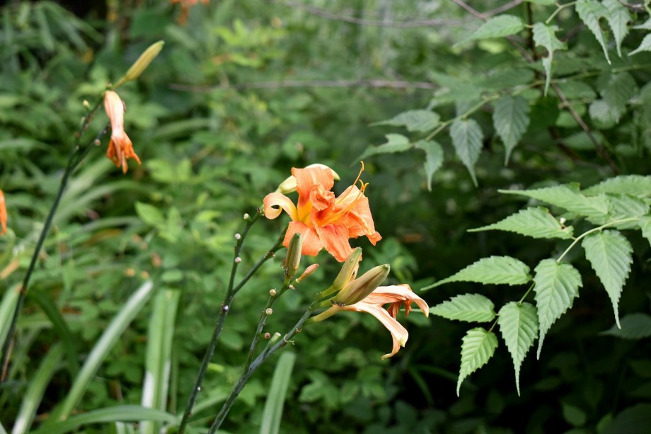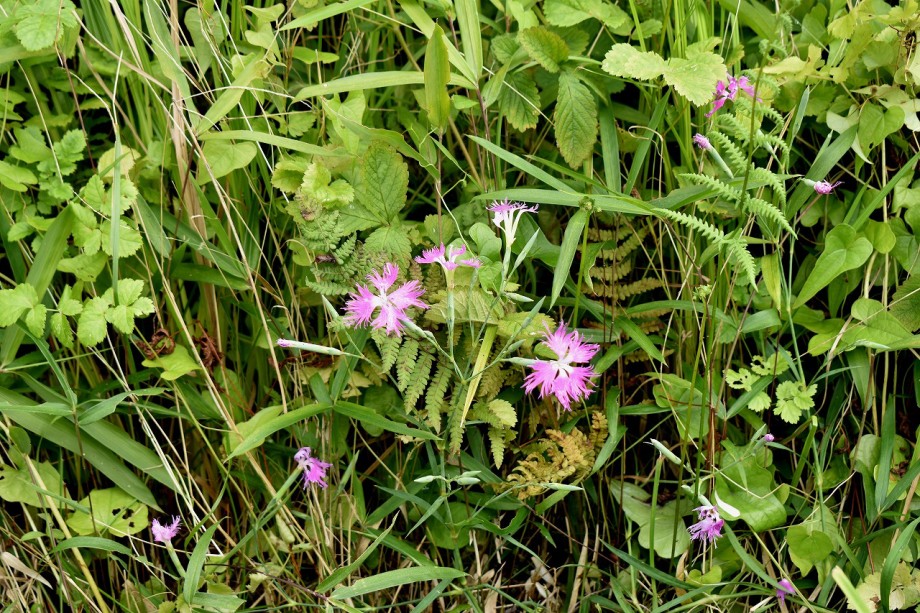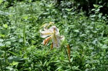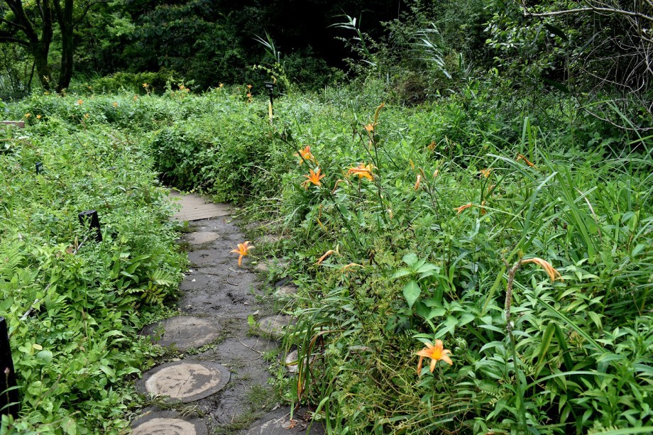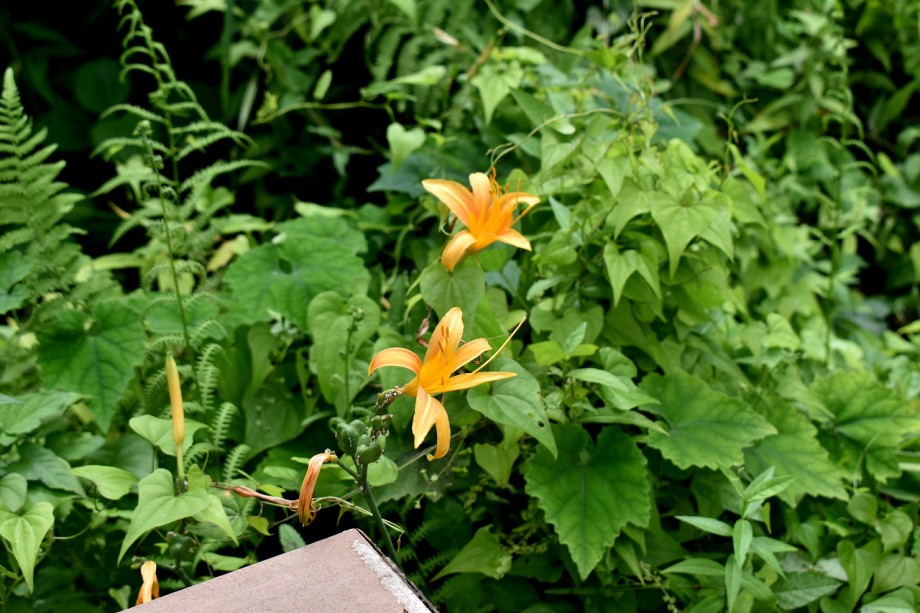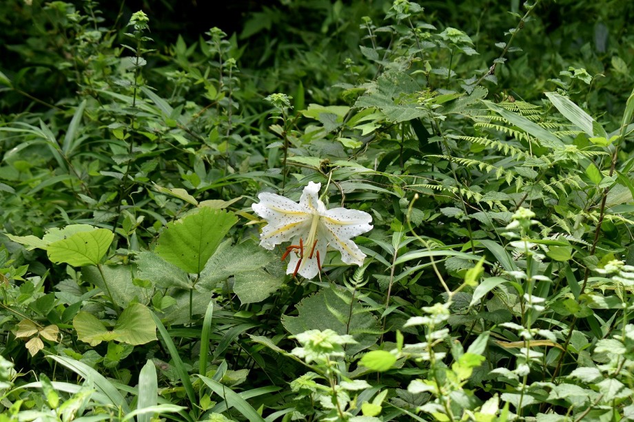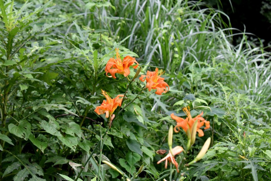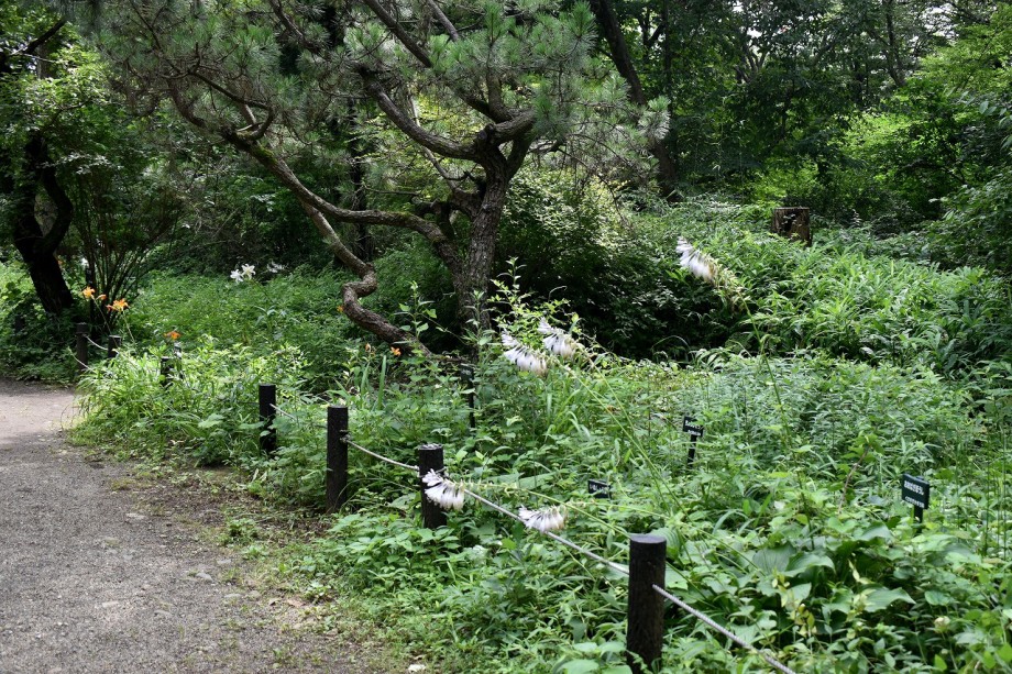 「一言」自然教育園にはヤマユリが見頃ということで見に行きました。入口の近くにはヤブミョウガがたくさん咲いていました。ユウガキクやガマズミ、 ガマの穂、カワラナデシコ、ミソハギなど色々な花が咲いていました。池のまわりにはノカンゾウやヤブカンゾウの花がたくさん咲いていました。 モンキアゲハが花に飛んできていました。園の奥の方にヤマユリやオオバギボウシの花が咲いていました。色々な花が咲いていて楽しかった。