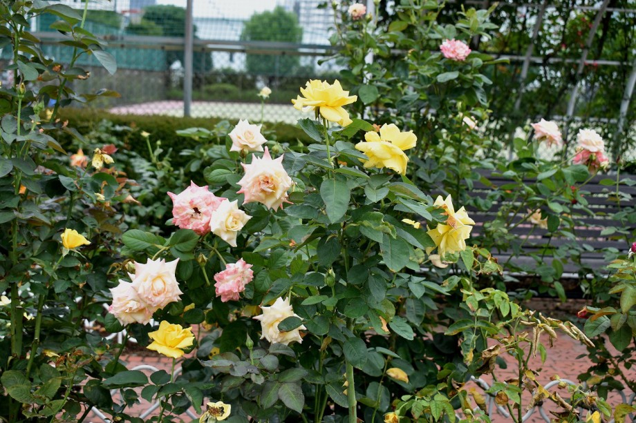 「一言」芝浦中央公園にバラの花が咲いているということをfacebookで見たので写真を撮りに行きました。7月下旬というのに非常に たくさんのバラの花が咲いていました。既に、枯れかけている花もありましたが、綺麗な花がたくさん咲いていましたので写真 をたくさん撮りました。バラの花の種類も色々な花がありましたので驚きました。