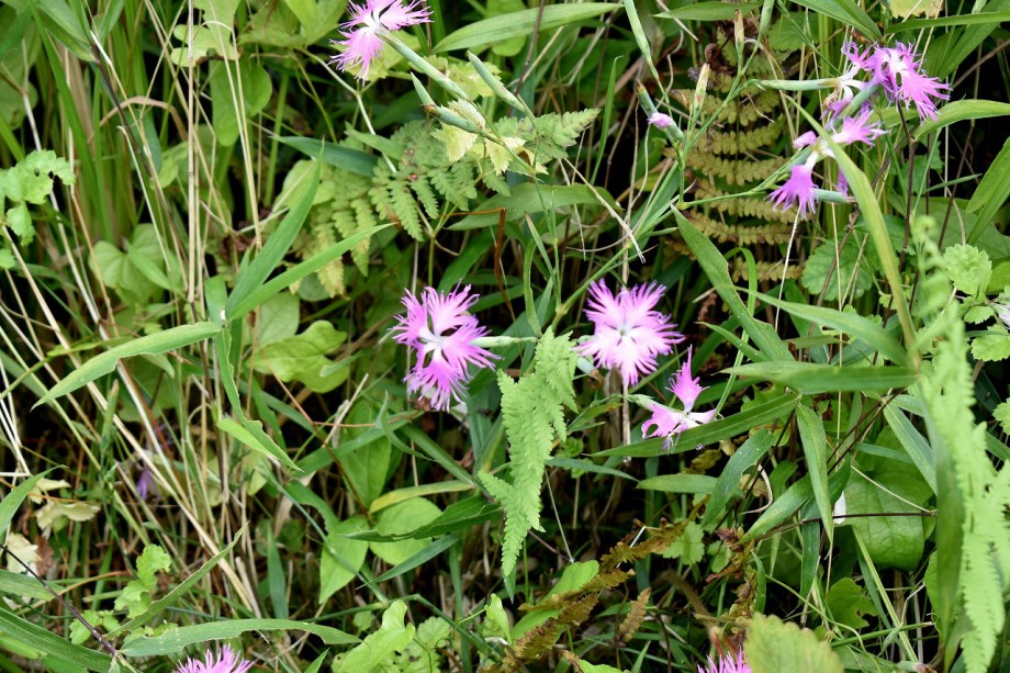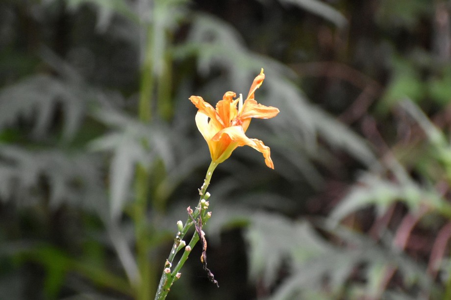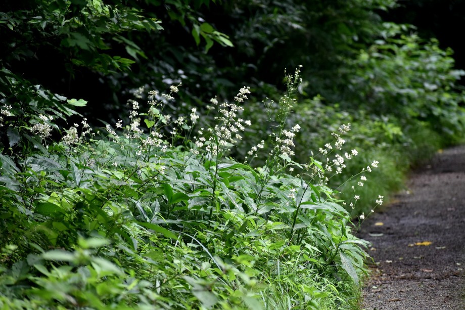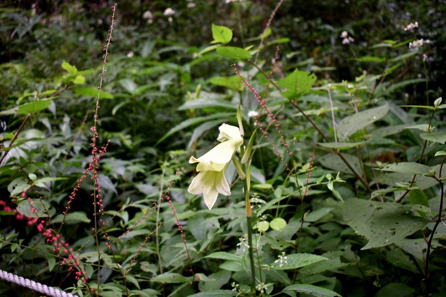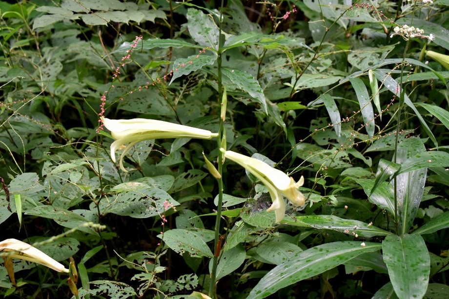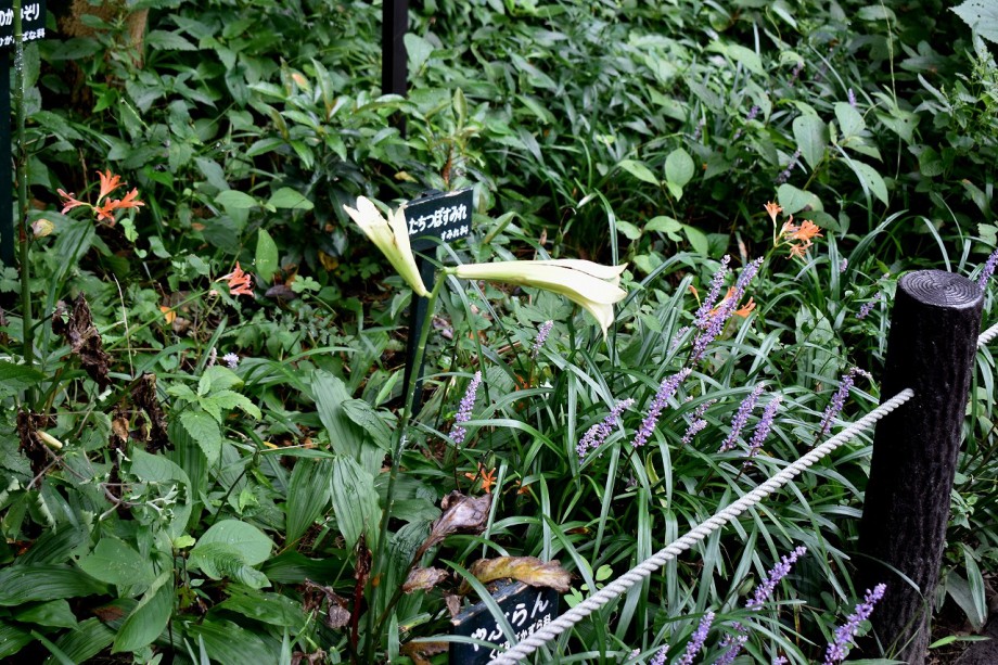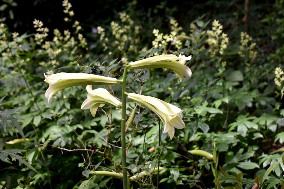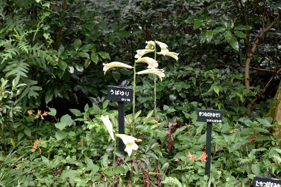 「一言」ウバユリの花が見頃ということで写真を撮りに行きました。入り口近くと園内の奥の方にウバユリがたくさん咲いていました。 派手さはありませんが、自然のユリという感じでした。ヤブミョウガやヤブランもたくさん花が咲いていました。池の回りには ヒメガマの茶色い花が咲いていました。ミソハギのピンク色の花がたくさん咲いていて綺麗でした。園内ではチョウチョやトンボ が飛んでいました。