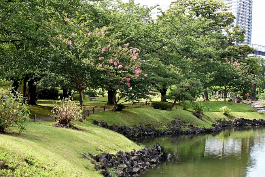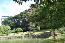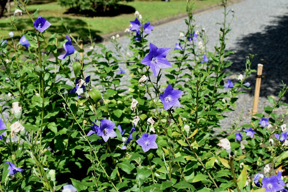 「一言」旧芝離宮には桔梗やギボウシの花が咲いています。大きな珊瑚樹に真っ赤な実がたくさんに実っています。百日紅やムクゲの花も 咲き出しました。タカサゴユリが咲き出しました。これから一斉に咲く感じです。花菖蒲も咲いていました。芝公園にはアガパンサス がまだ咲いていました。白い百日紅も咲いています。ヒメリンゴ?の大きな木にたくさん実っています。
