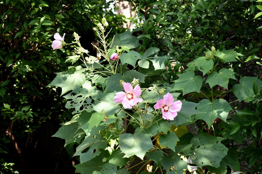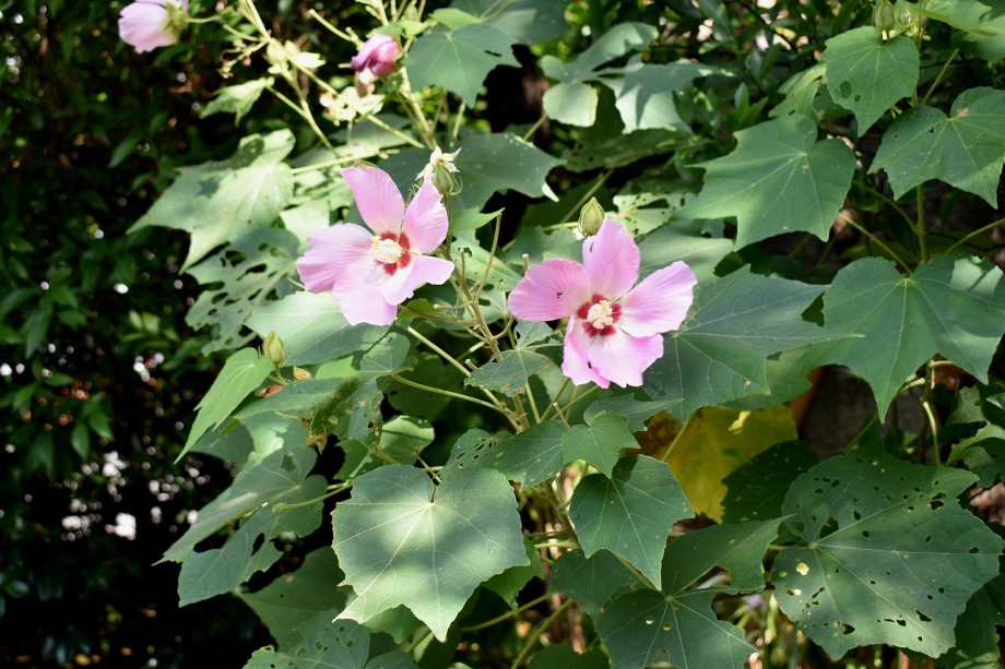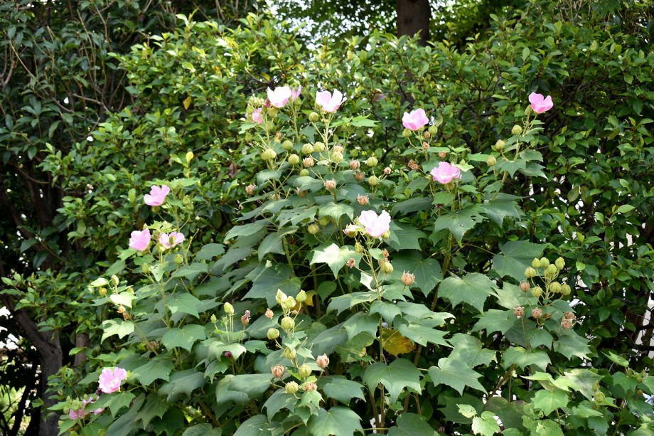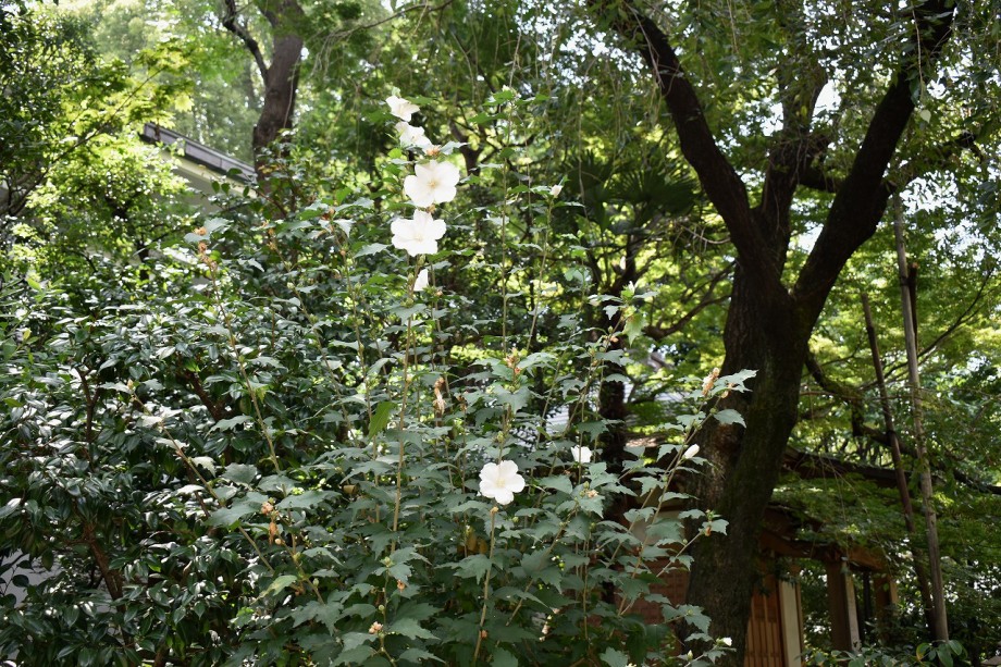 白金公園や龍源寺にはムクゲや芙蓉の花が咲いていました。願海寺には白い蓮の花が咲いていました。
