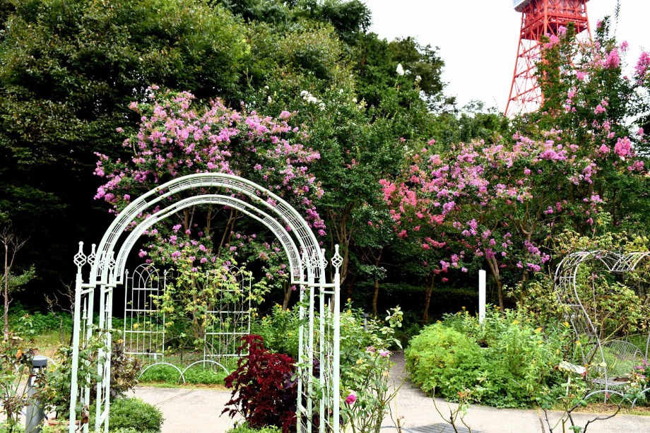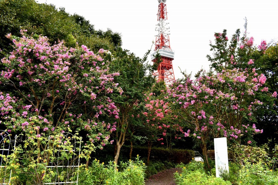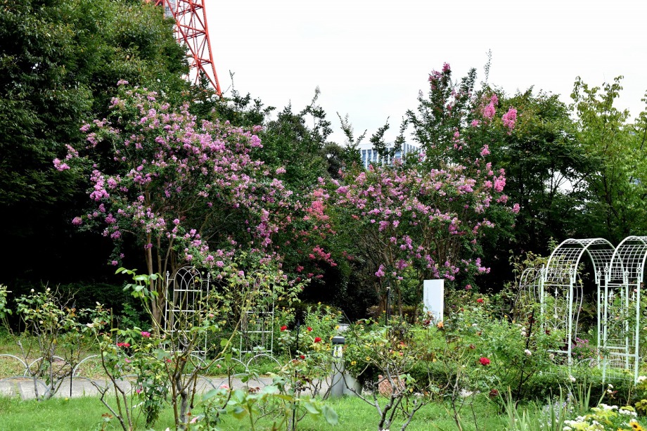 「一言」プリンス芝公園にはバラの花が咲きだしました。まだまだ花の数は少ないですが綺麗な花が咲いています。百日紅の花が見頃に なっています。東京タワーを背景に、大きな百日紅の木に2色のピンクの花がいっぱい咲き綺麗です。芝公園にも紅白の百日紅の 花が咲いています。旧芝離宮にも百日紅が綺麗になっています。彼岸花が園内のあちこちの咲き出しています。、