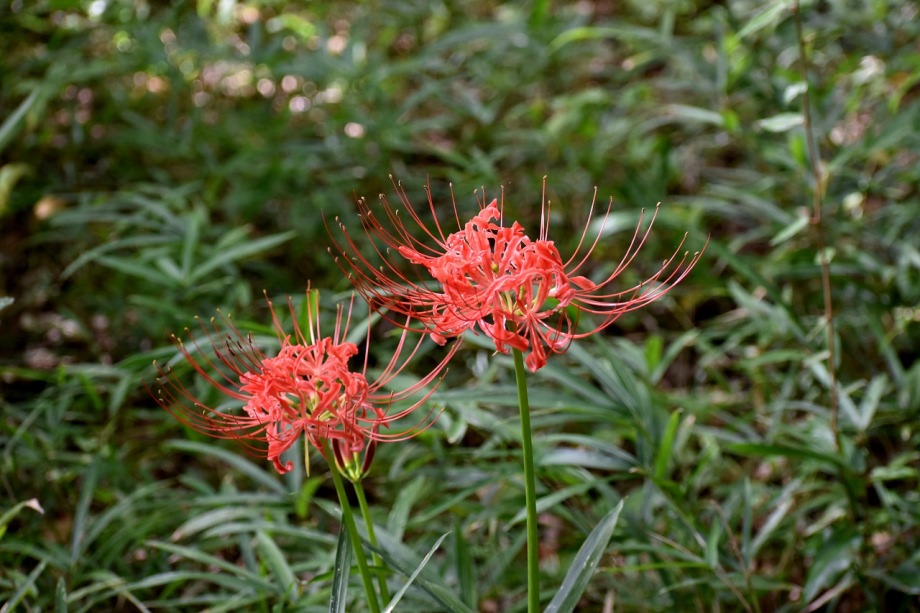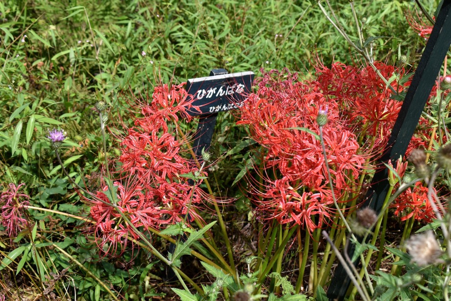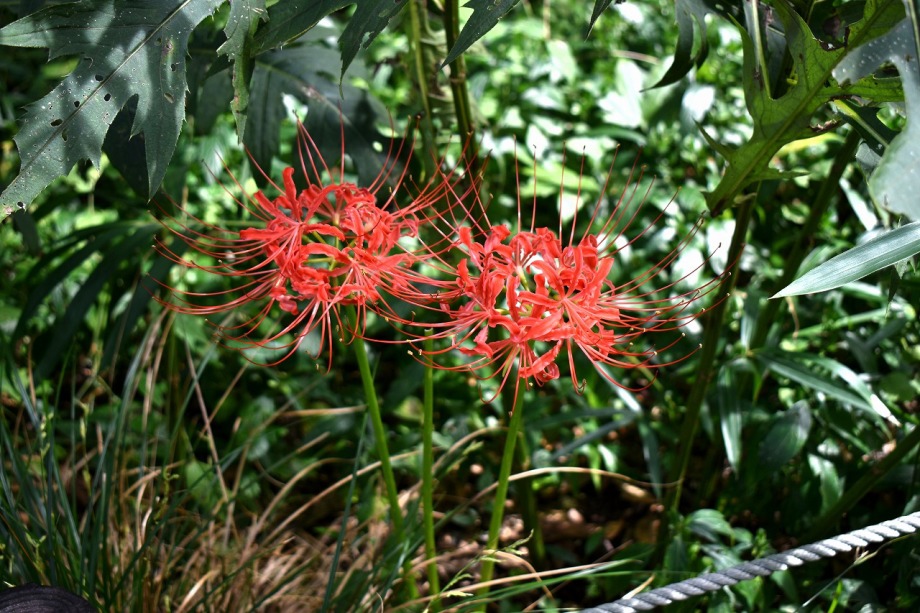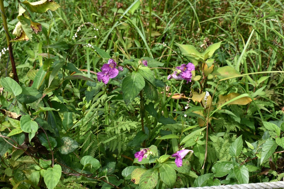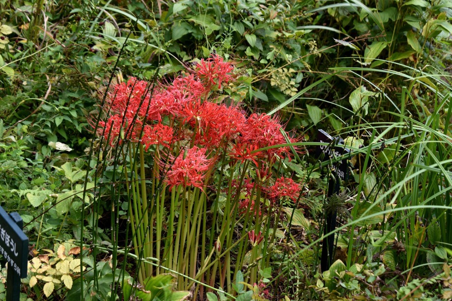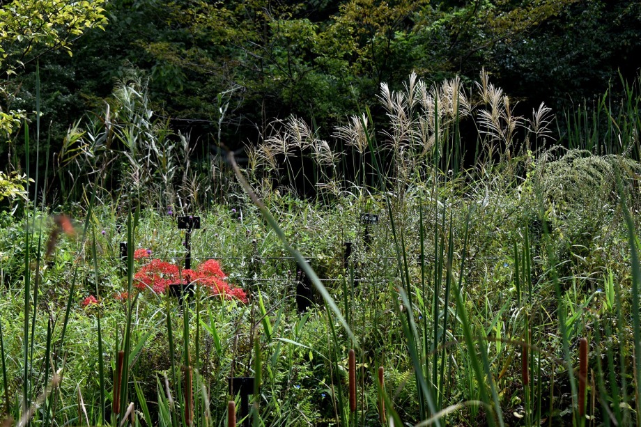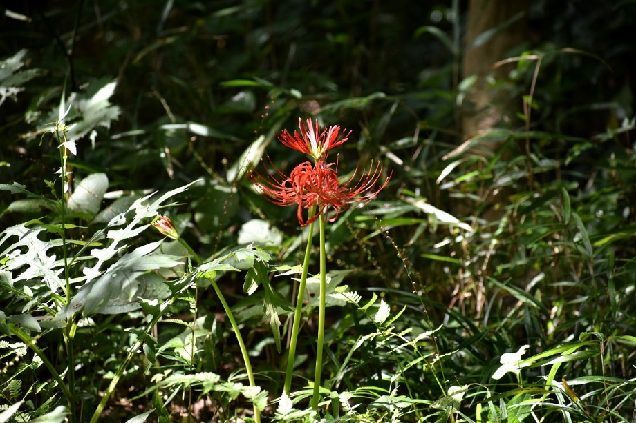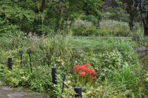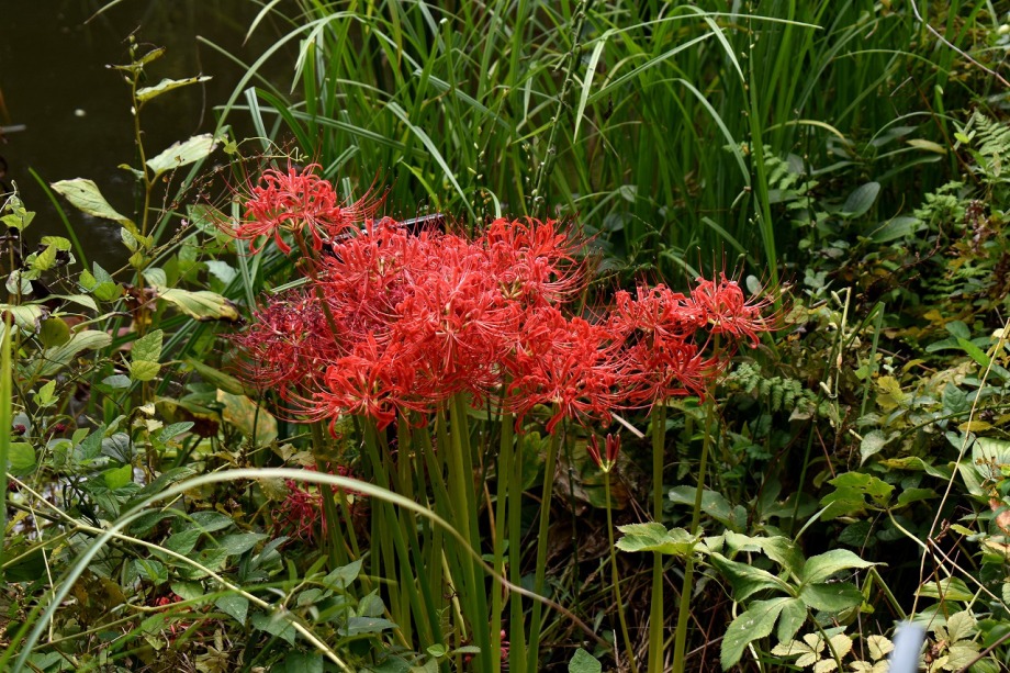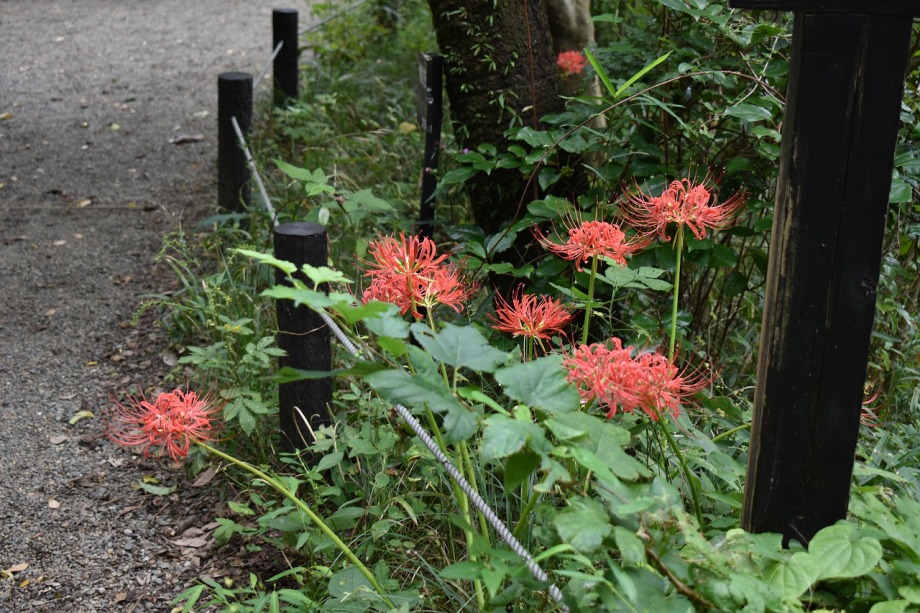「一言」気候が良くなり、天気も良いので自然教育園に行きました。彼岸花があちらこちらに咲いていました。池のまわりにはツリフネソウがたくさん咲いていました。
