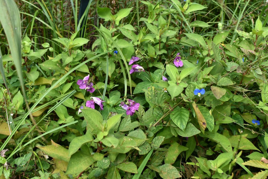 写真を撮りに来ている人がナンバンギゼルが咲いていると教えてくれました。ススキの根元に咲いていたので教えて頂かないと気がつかなかったと思います。