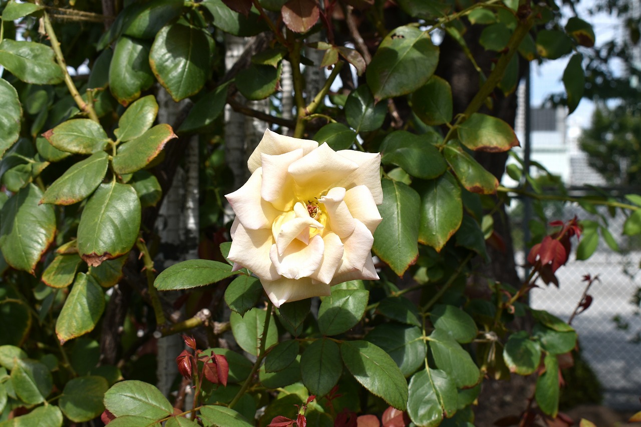 「一言」芝浦運動場のバラの花が咲き出しました。今年は例年よりバラの花が咲くのが大幅に遅れていましたが、バラの花が咲き出しました。 今年のバラの花は小さい花や花びらが痛んでいる花が多い感じです。芝浦中央公園のバラの花も咲き出しました。まだ花の数は少ない 状況ですが、きれいな花が咲いています。芝浦中央公園のバラを面倒見ている専門家の話では1週間後には見事に咲くということでした。