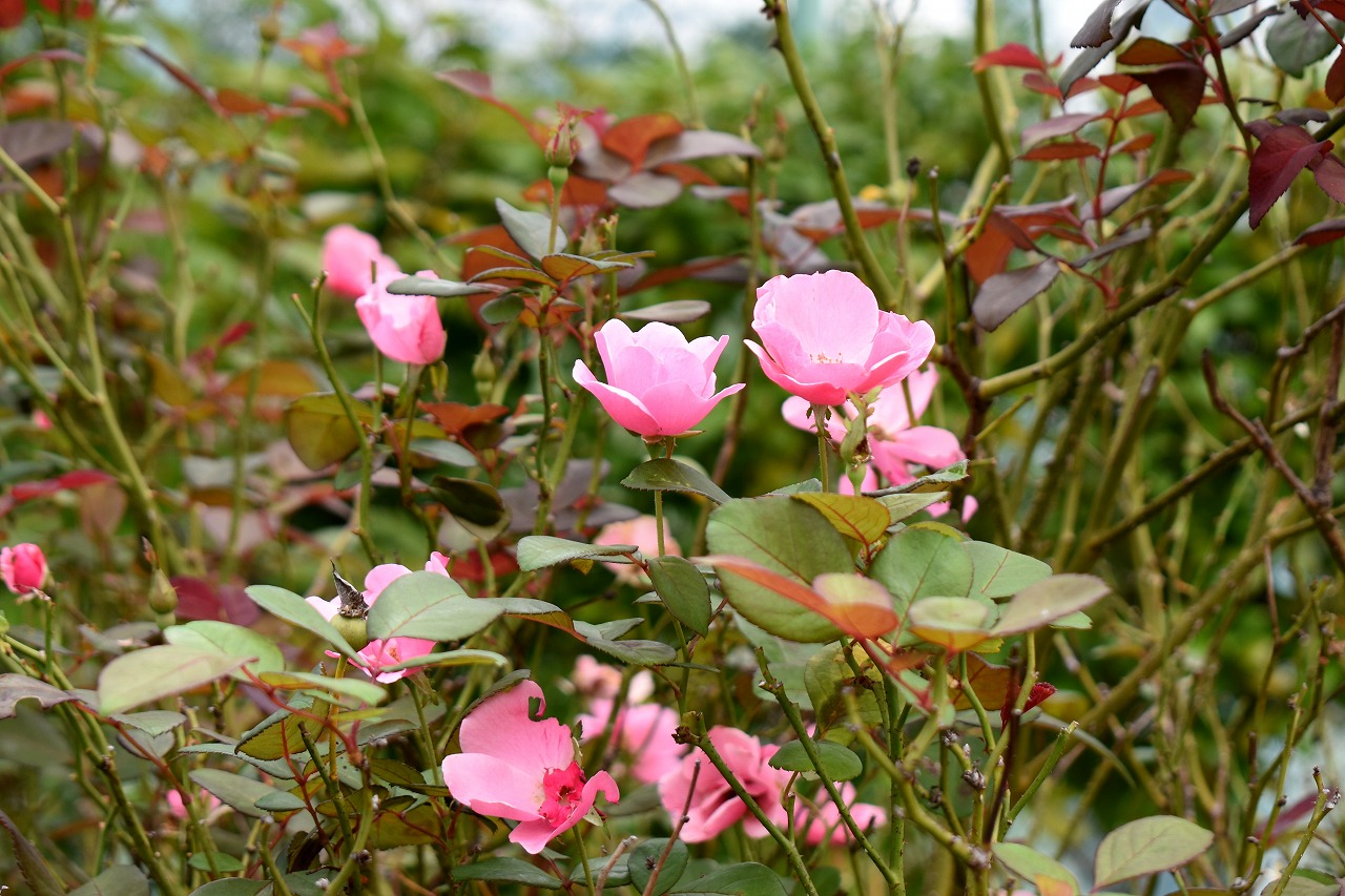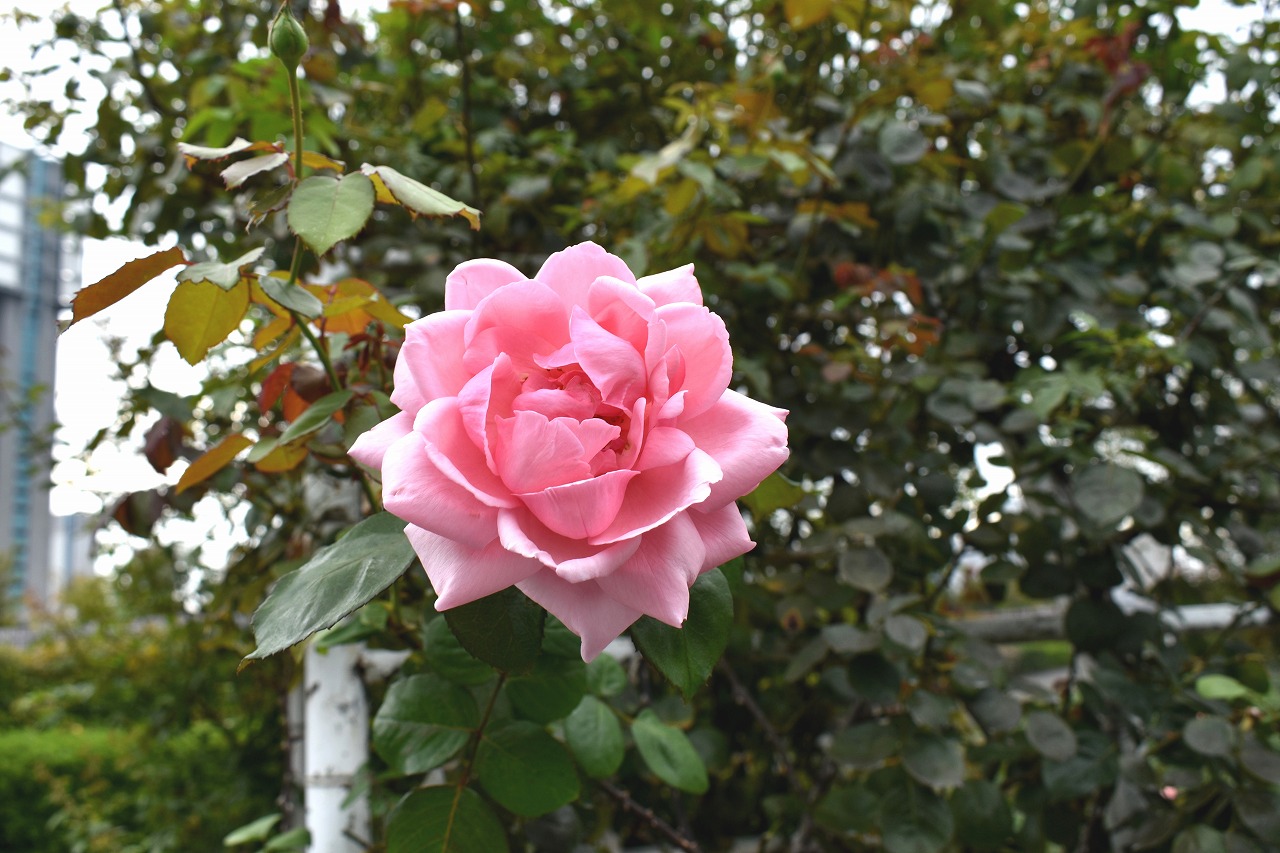 「一言」芝浦中央公園のバラの花が咲いています。先週に比べると花の数が増えて綺麗な花が増えています。つぼみがたくさんありますので、 もう少ししたらもっと華やかになると思います。芝浦運動場にもバラの花が咲いていますが、花びらが痛んでいる花が多い感じがします。 それでも綺麗なバラの花が咲いています。アゲハチョウが飛んでいたり、ハナミズキも赤い実をつけ、ススキの穂も伸びて秋の景色が楽しめます。