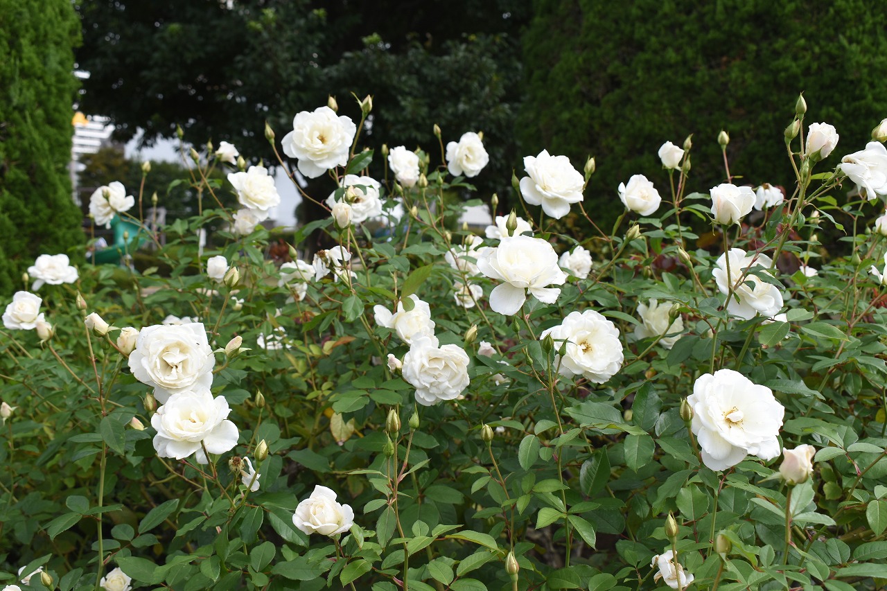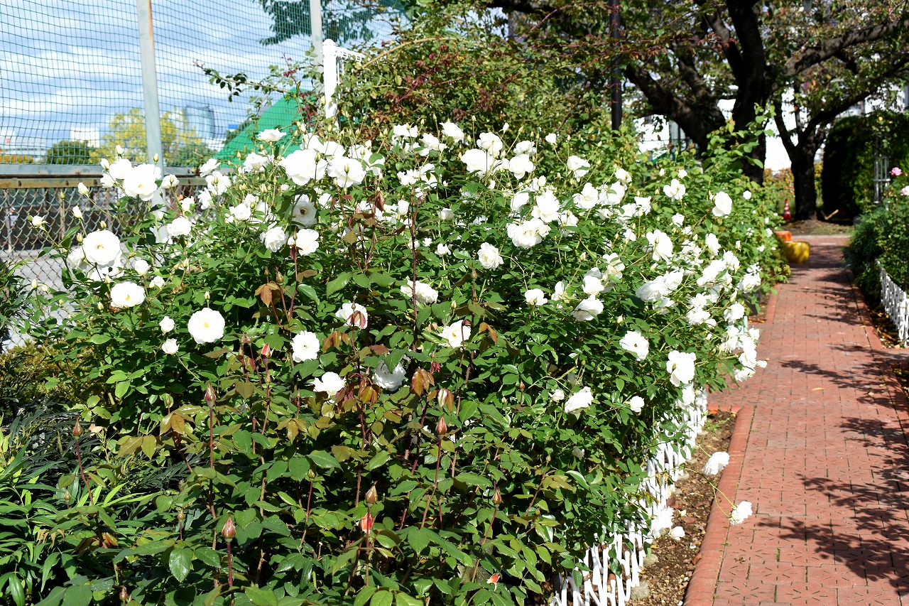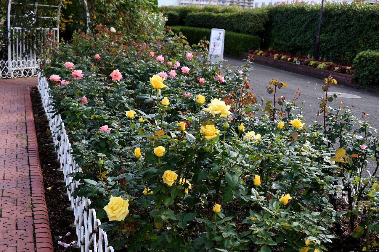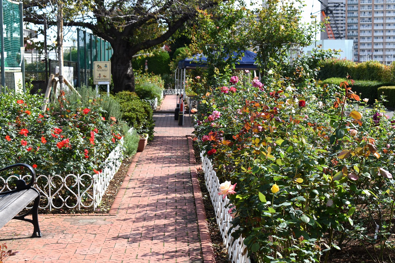 「一言」今日は芝浦中央公園にバラの花のお話を聞きに行きました。テーマはバラの育て方でしたが、バラの特徴などを 聞きたいと思って参加しました。印象に残ったのjは5月に咲くバラは一斉に咲くそうで華やかになるそうです。10月 に咲くバラは11月にかけて順々に咲くので長く楽しめるとの話でした。また、秋のバラは花が咲いている期間が長く、 長く咲く花では1ケ月も見られるとの話でした。行った序にバラの写真を撮ってきました。