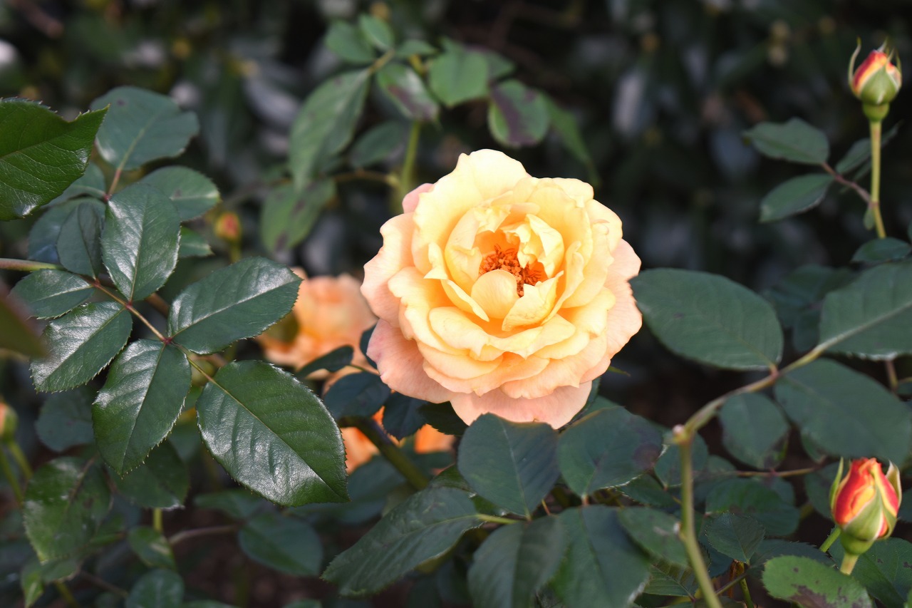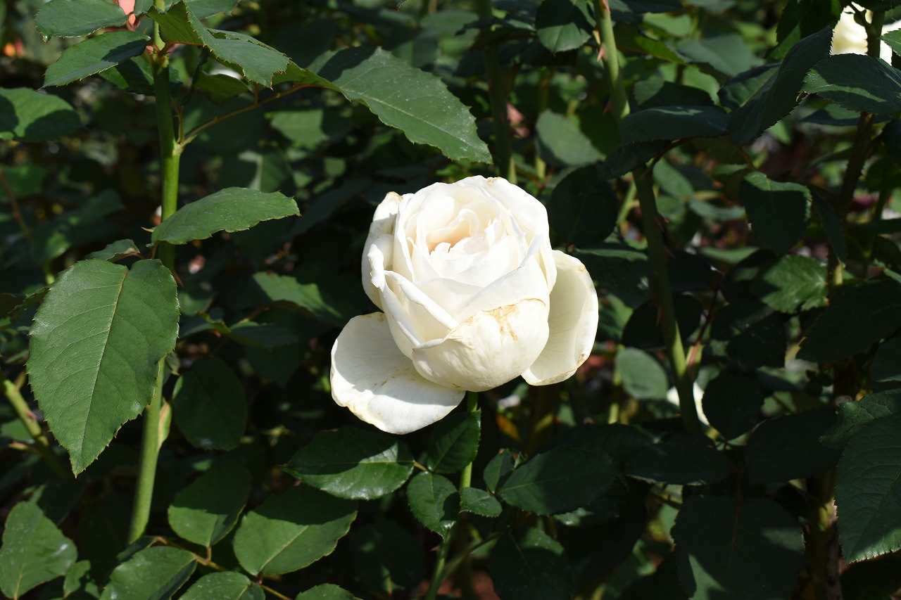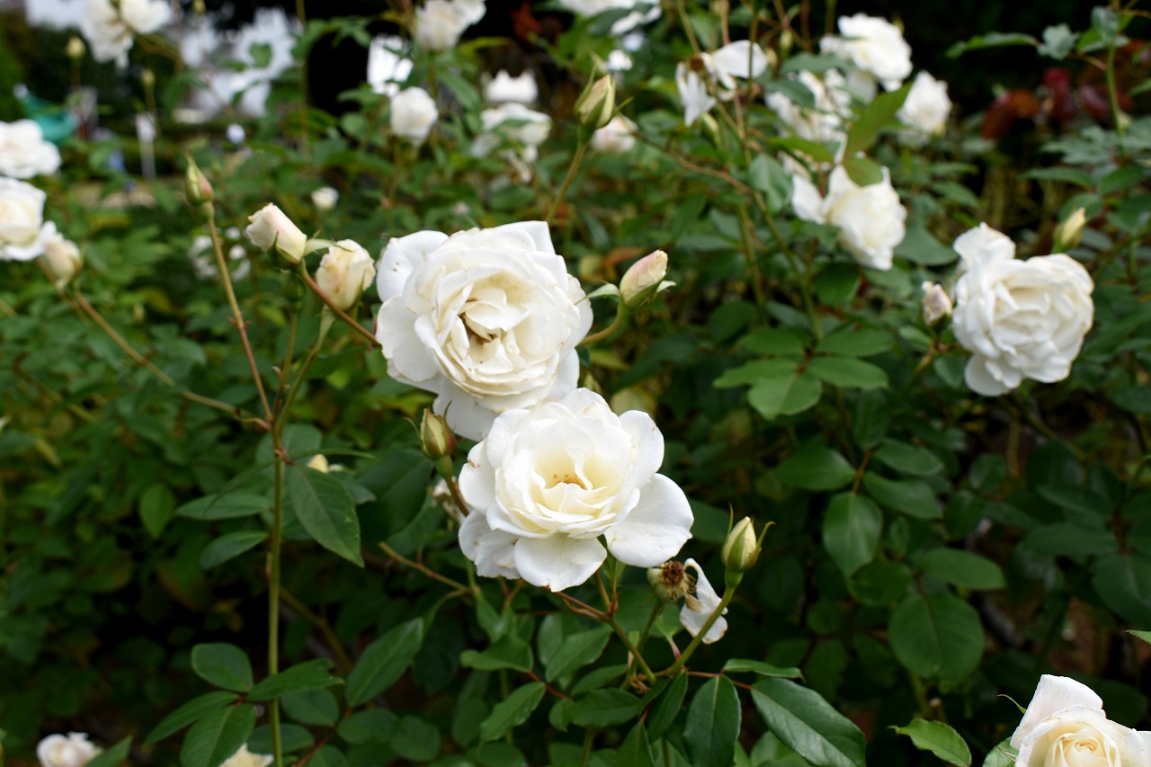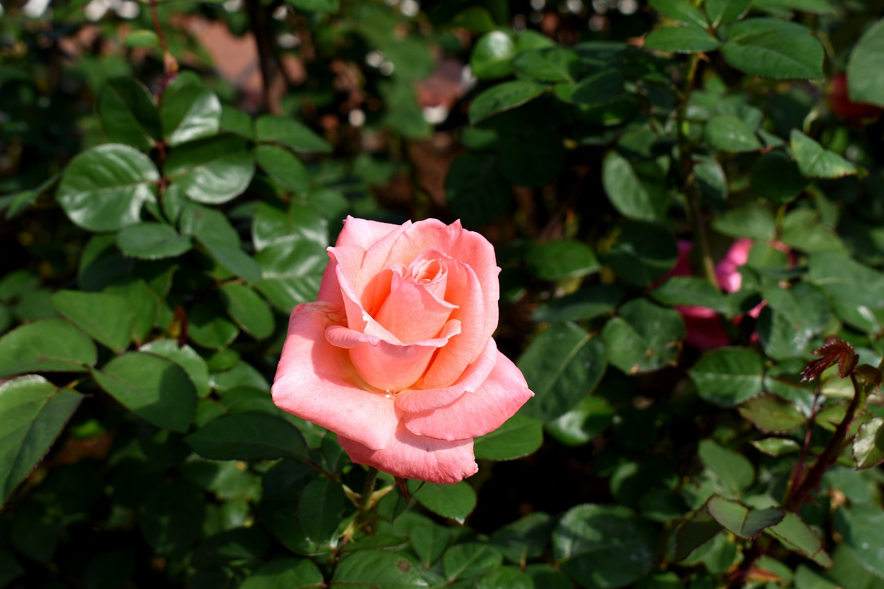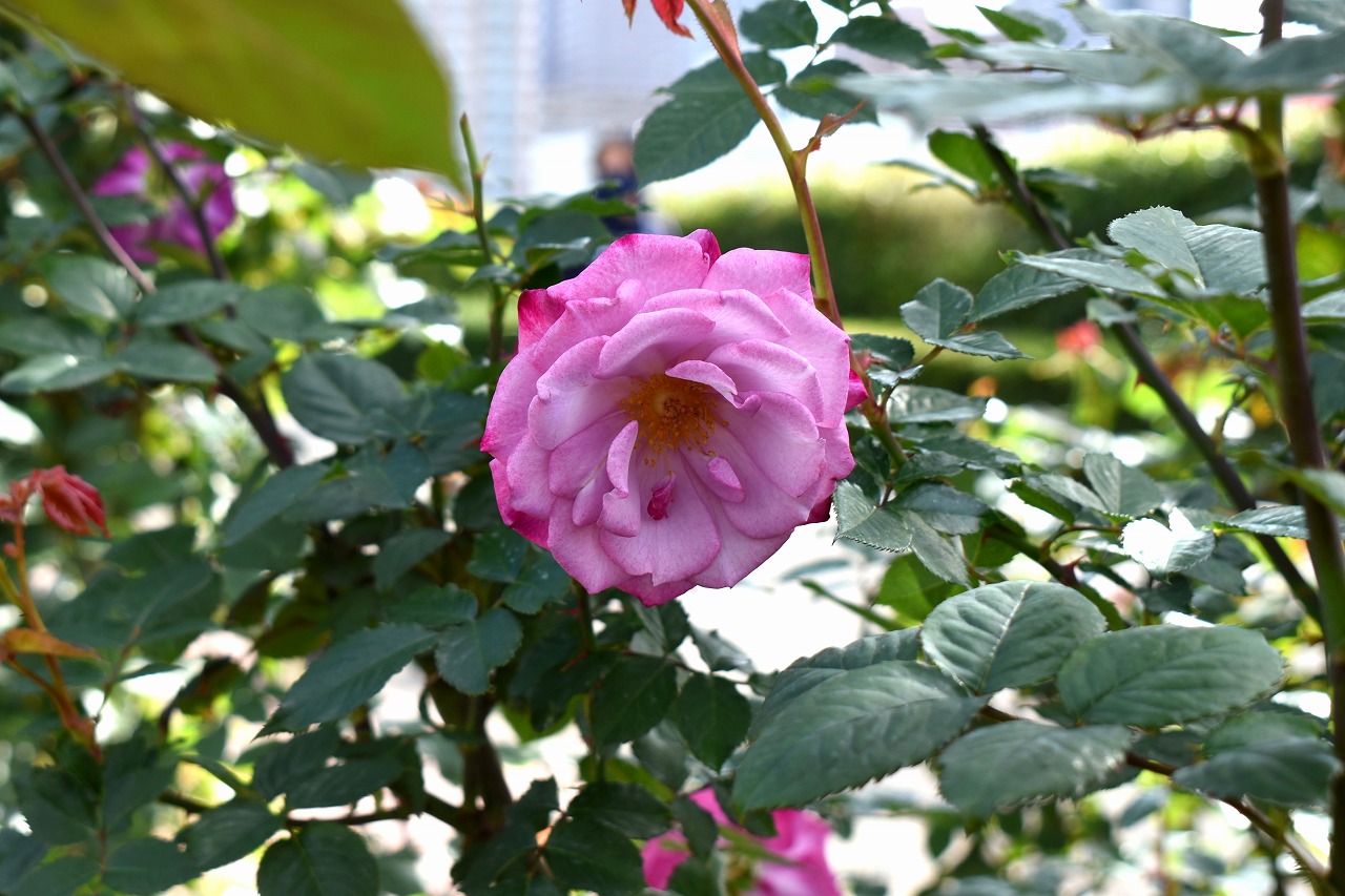 「一言」今日は芝浦中央公園にバラの花のお話を聞きに行きました。テーマはバラの育て方でしたが、バラの特徴などを 聞きたいと思って参加しました。印象に残ったのjは5月に咲くバラは一斉に咲くそうで華やかになるそうです。10月 に咲くバラは11月にかけて順々に咲くので長く楽しめるとの話でした。また、秋のバラは花が咲いている期間が長く、 長く咲く花では1ケ月も見られるとの話でした。行った序にバラの写真を撮ってきました。