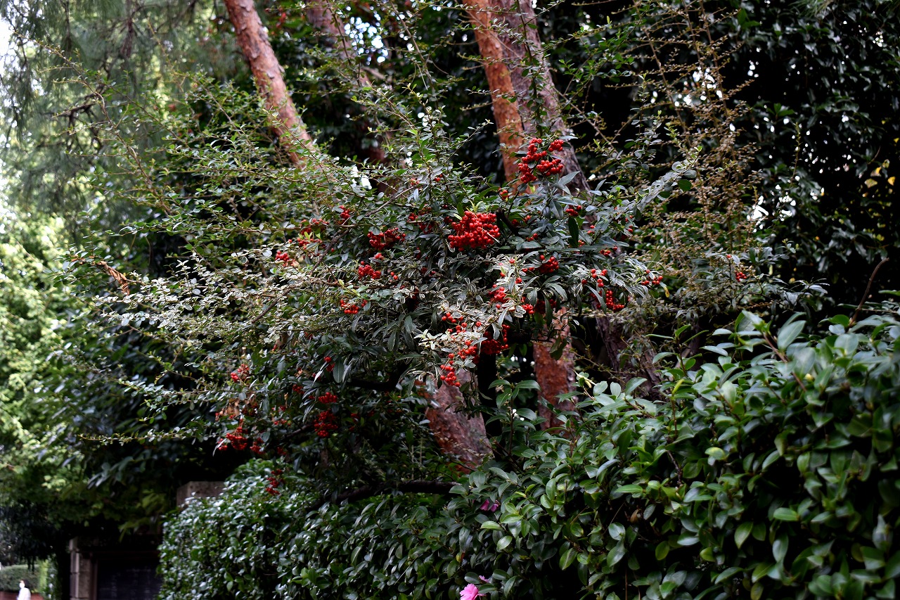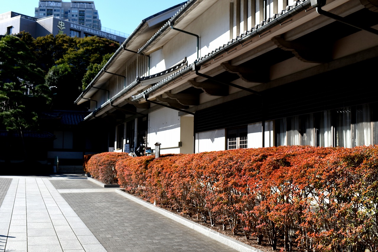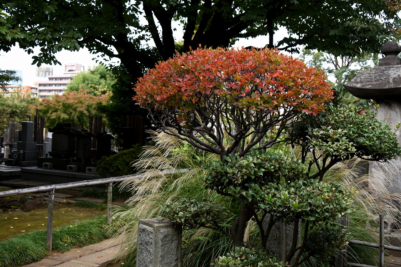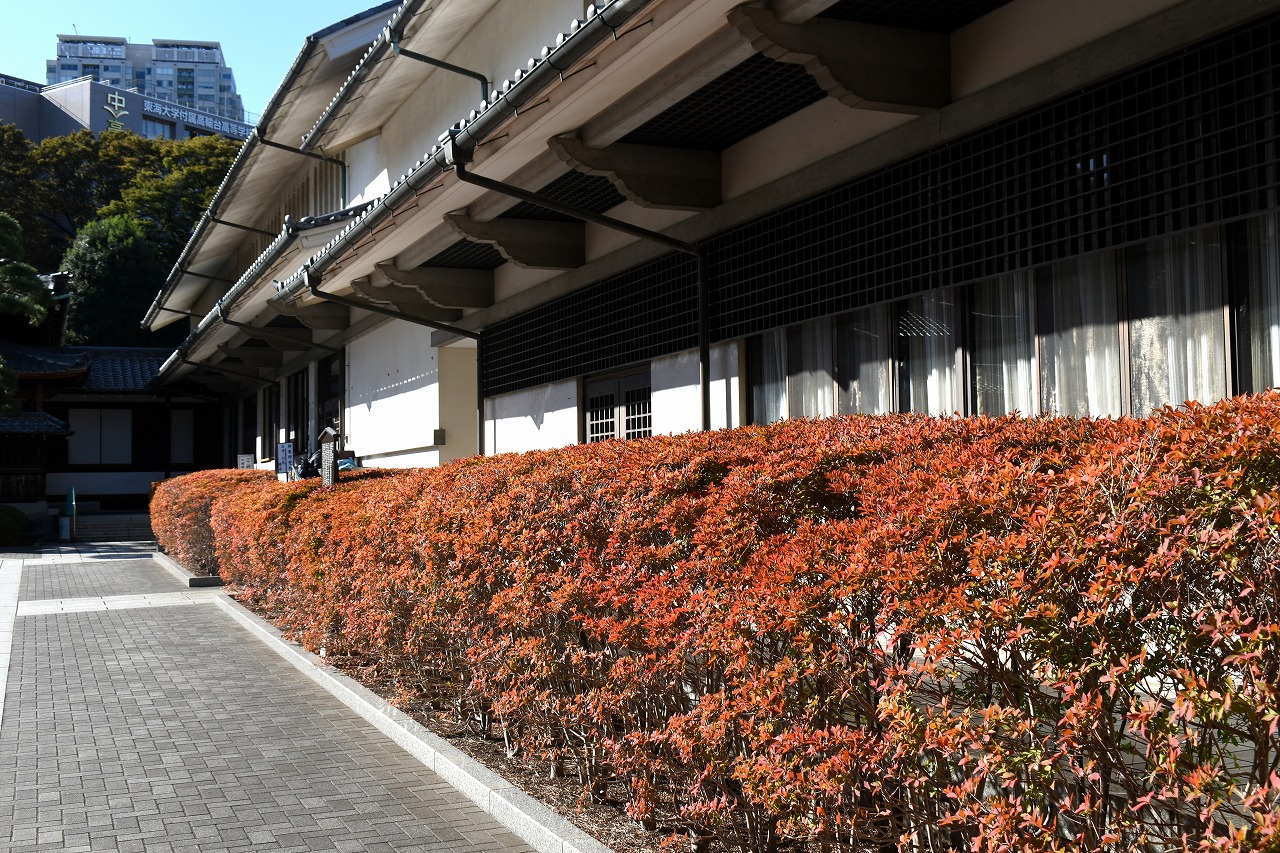「一言」泉岳寺のドウダンツツジが赤くなりつつあります。二本榎通りのハナミズキも紅葉が始まりました。皇族邸の前の プリンセスミチコのバラも花が咲いています。龍源寺や願海寺、明王院、実相寺、薬王寺の三田寺町にはホトトギス やサザンカ、小菊など色々な花が咲いています。亀塚公園や三田台遊園には柿がたくさん実っています。
