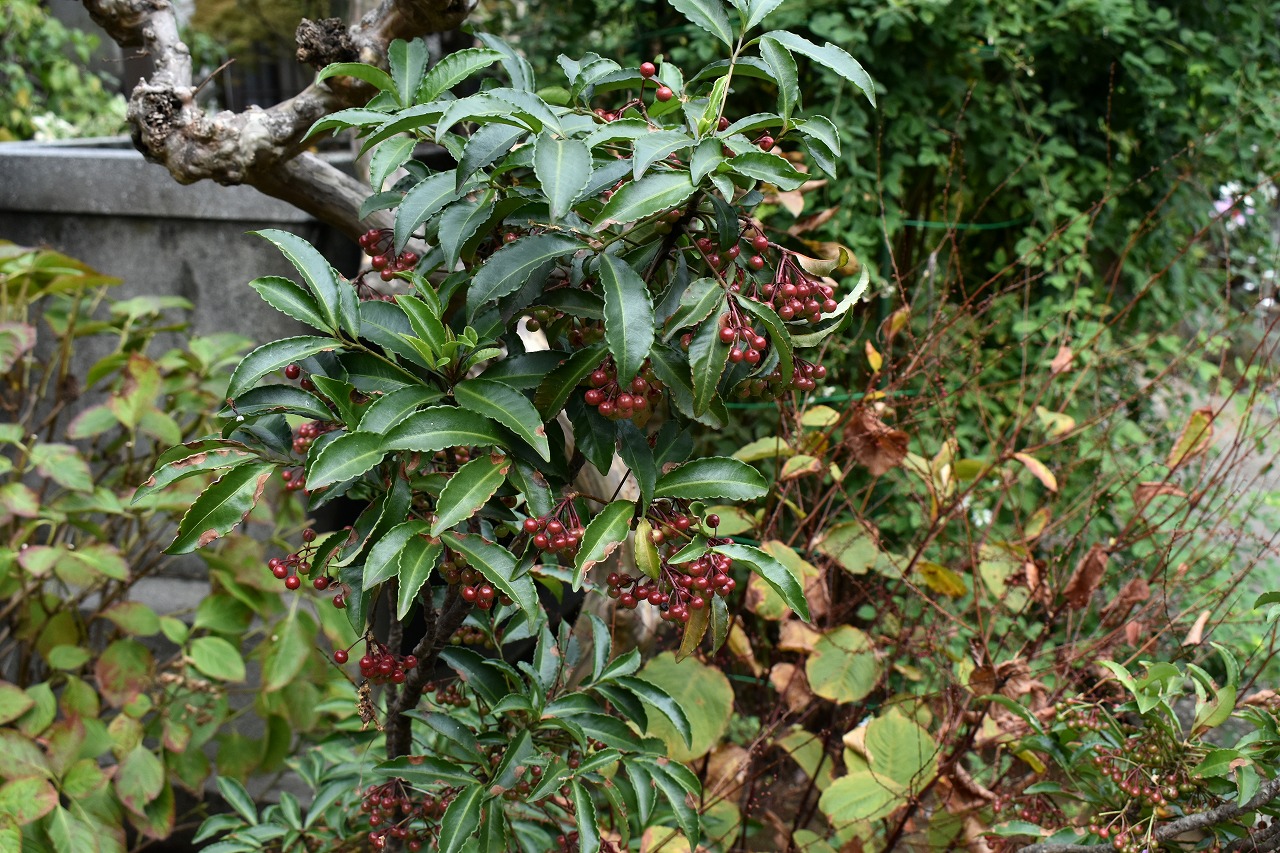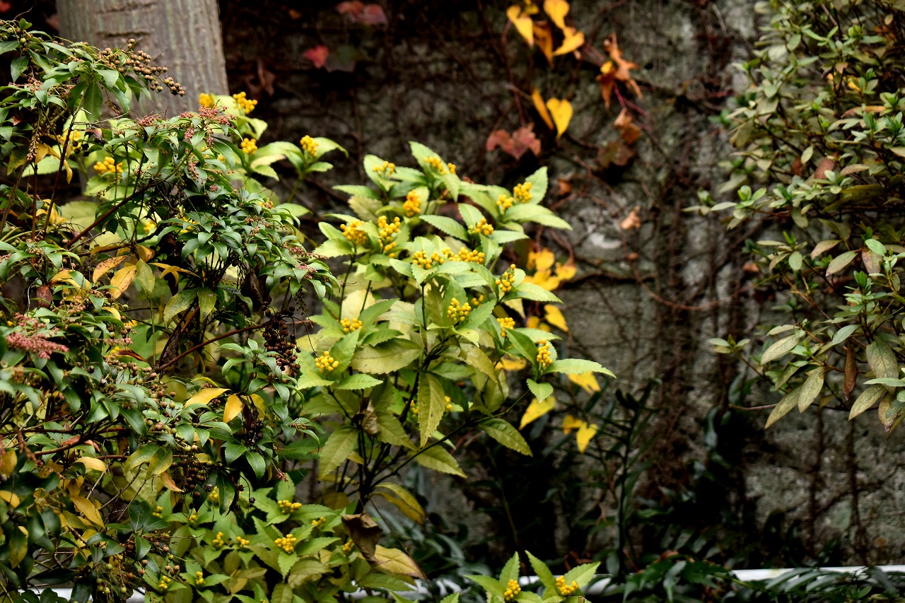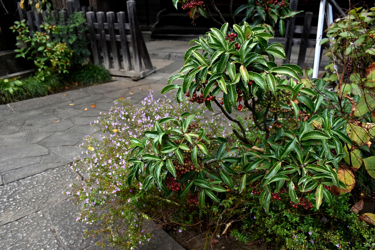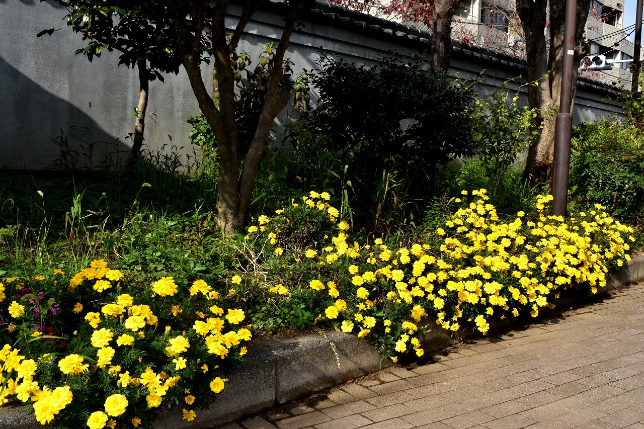 「一言」泉岳寺のドウダンツツジが赤くなりつつあります。二本榎通りのハナミズキも紅葉が始まりました。皇族邸の前の プリンセスミチコのバラも花が咲いています。龍源寺や願海寺、明王院、実相寺、薬王寺の三田寺町にはホトトギス やサザンカ、小菊など色々な花が咲いています。亀塚公園や三田台遊園には柿がたくさん実っています。