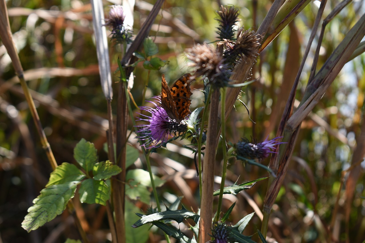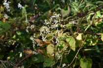「一言」自然教育園にはシロヨメナやアワコガネキク、シラヤマギクなど色々な種類の小菊が咲いていました。ちゃのきの花や タイアザミの花もまだ咲いていました。ムラサキシキブやムサシアブミの実も見られました。蝶々や鴨もいました。 どんぐり児童遊園にはイイギリが赤い実がたくさんつけていました。プラチナ通りや医科研のイチョウが黄葉し始めていました。