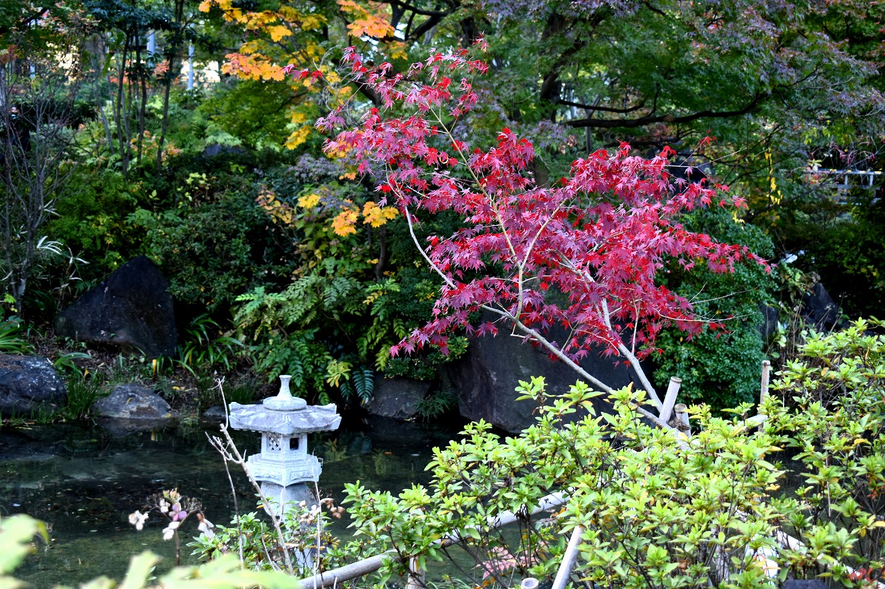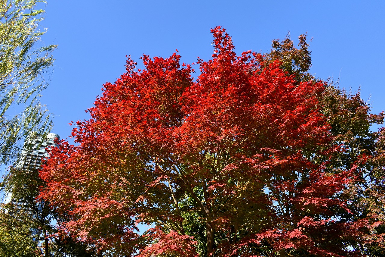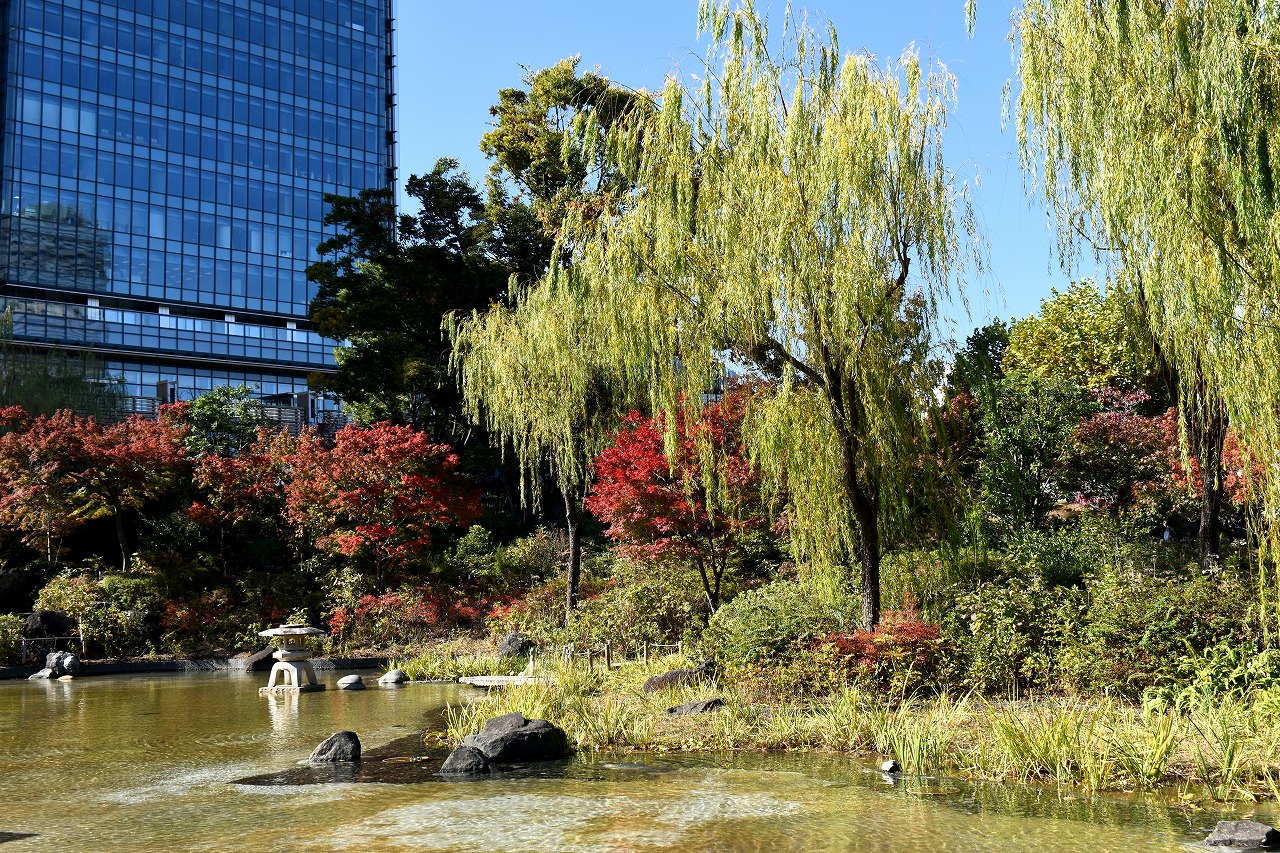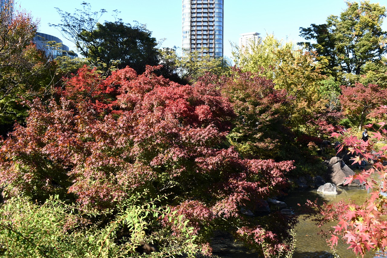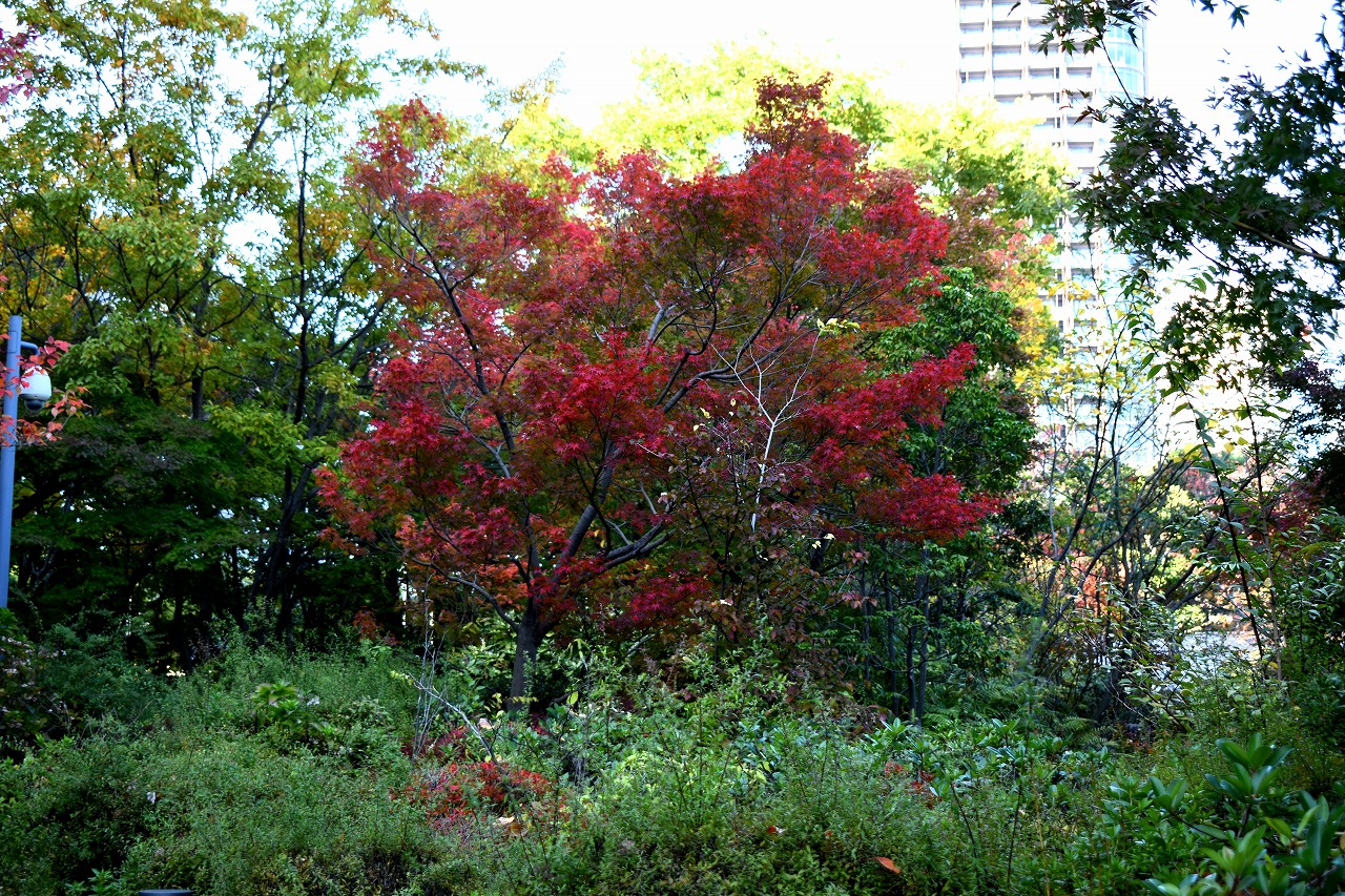 「一言」桧町公園の紅葉が始まりました。既に真っ赤になっている木もあります。池のまわりの紅葉の一部は東京ミッドタウンのビル の陰になって鮮やかな色が見えないところがありますので少し残念です。もう少しすると見頃になるとお思います。公園には キワブキやホトトギスの花がたくさん咲いています。毛利庭園のイチョウが見頃です。麻布十番では酉の市が行われていました。