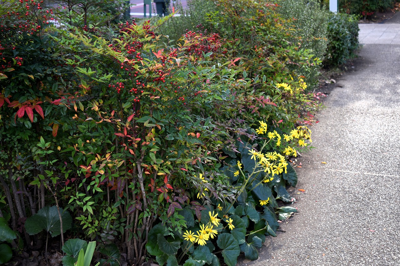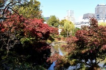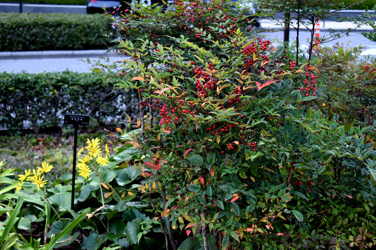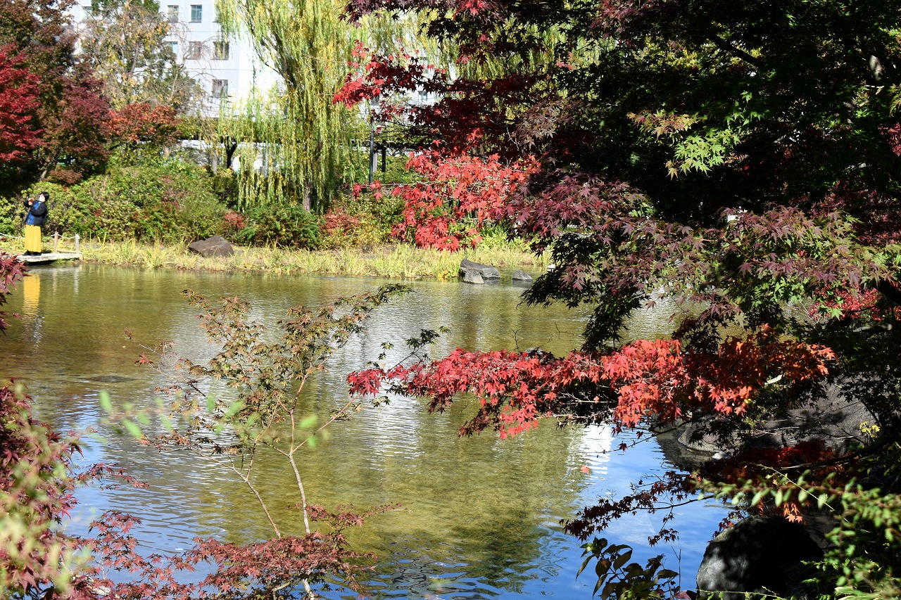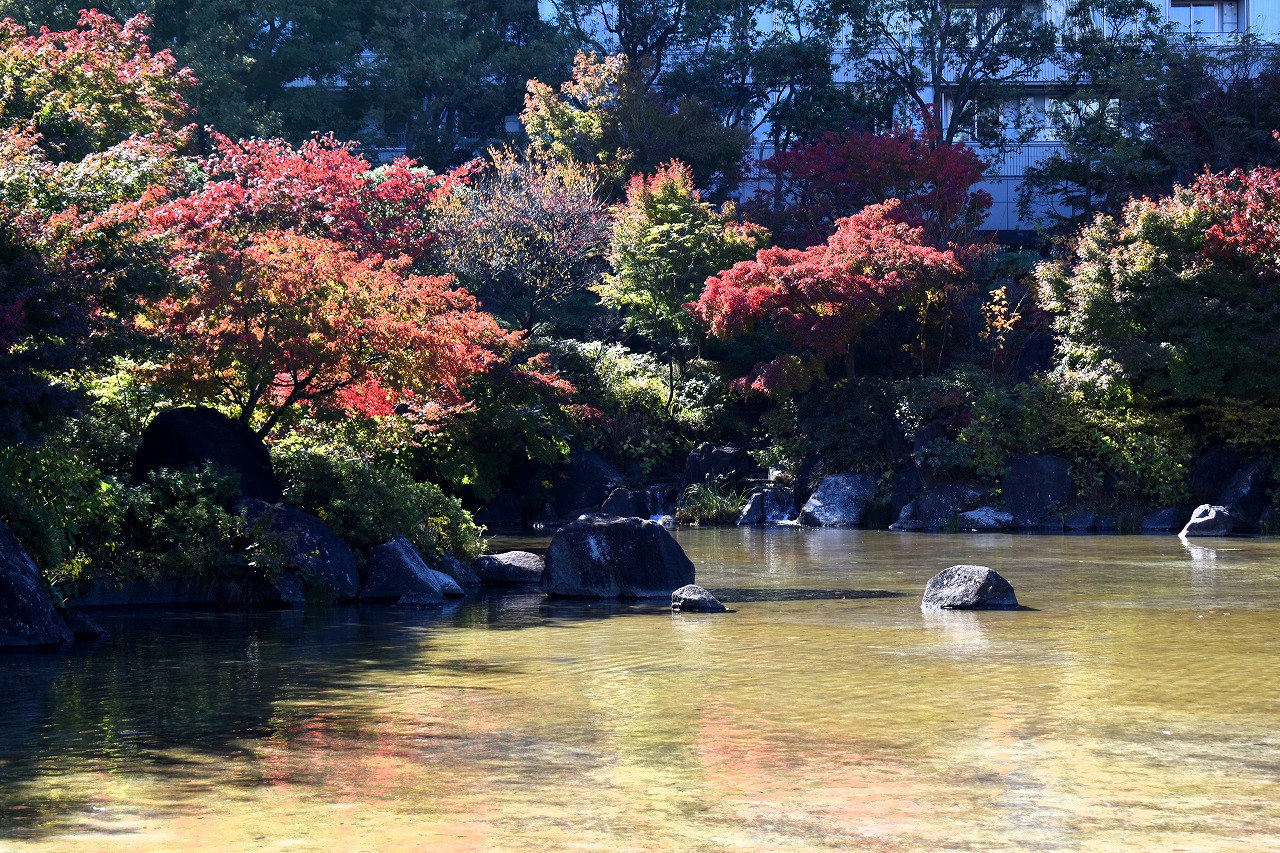 「一言」桧町公園の紅葉が始まりました。既に真っ赤になっている木もあります。池のまわりの紅葉の一部は東京ミッドタウンのビル の陰になって鮮やかな色が見えないところがありますので少し残念です。もう少しすると見頃になるとお思います。公園には キワブキやホトトギスの花がたくさん咲いています。毛利庭園のイチョウが見頃です。麻布十番では酉の市が行われていました。