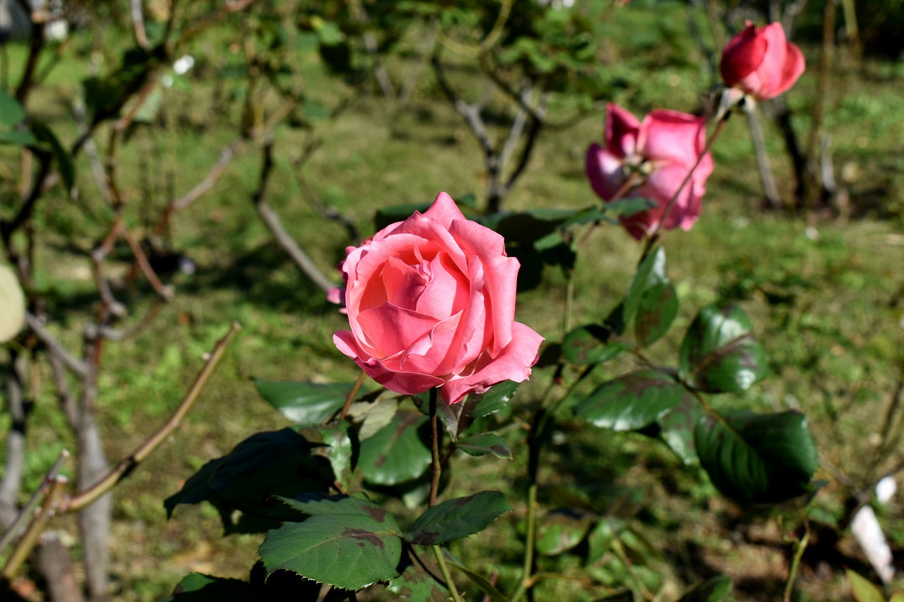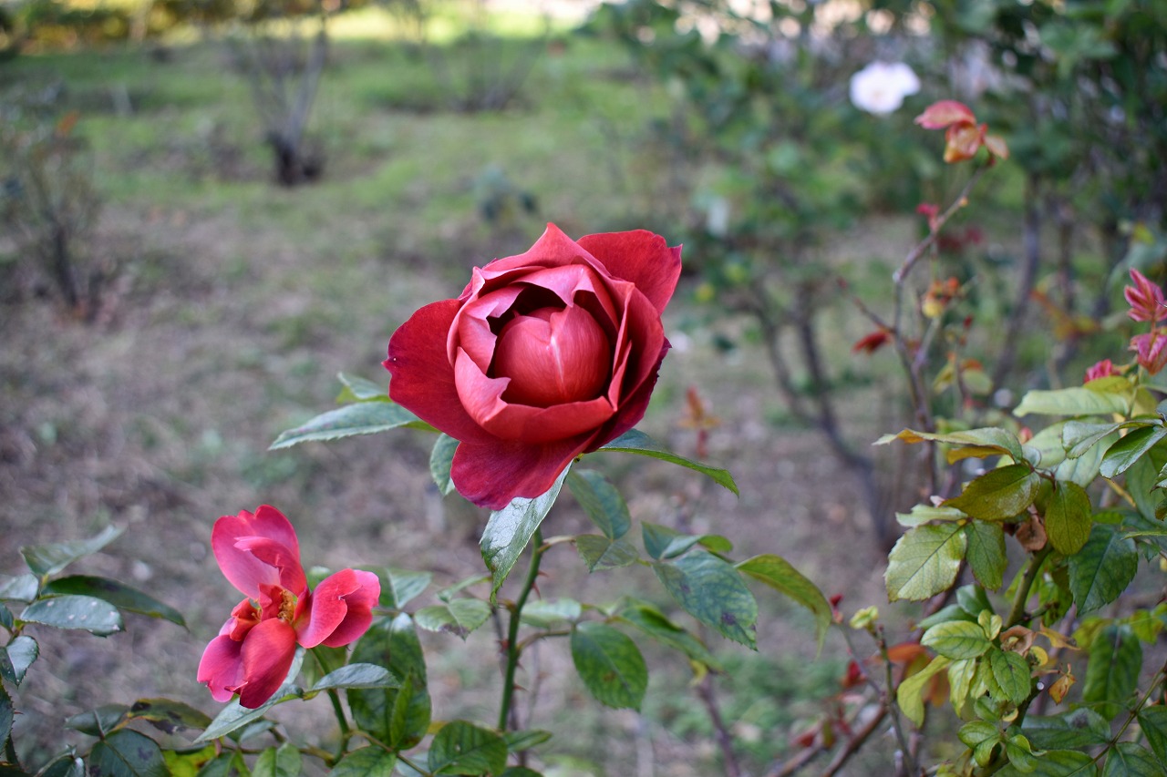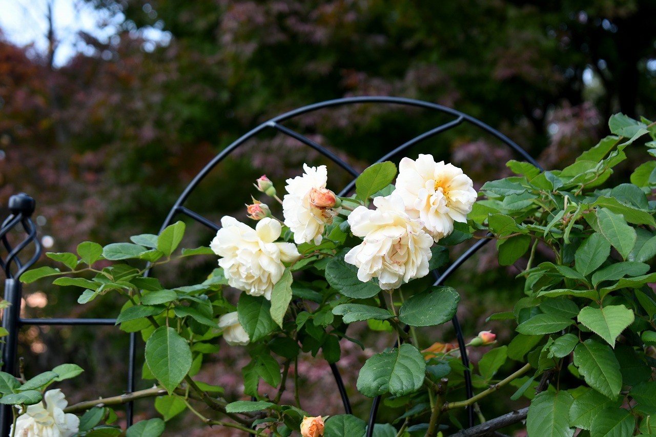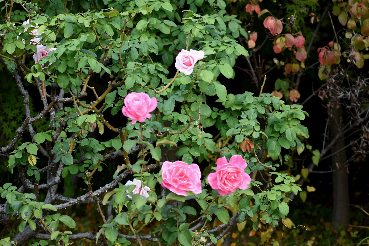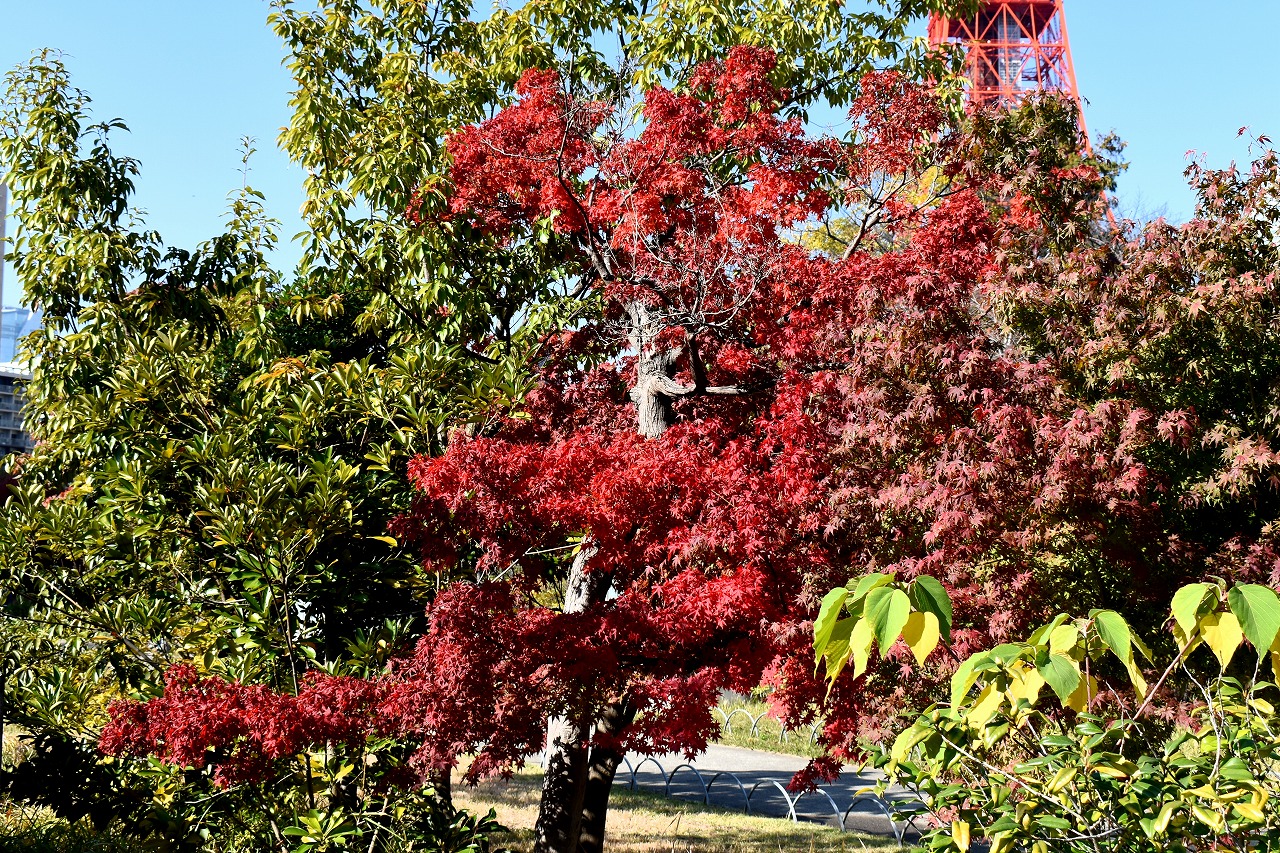 「一言」プリンス芝公園のバラの花が咲き出しました。例年に比べるとお花の咲くのが大幅に遅れています。また、お花の数も少ない感じですが 綺麗な花が咲いています。全体に白色とか色の薄い花が多く、太陽が直接当たると影が出来たり色の境目がぼやけたりして上手く写真 が写りません。公園の中の紅葉が始まっています。芝公園のハナミズキも鮮やかな赤ではありませんが、色が濃くなっています。