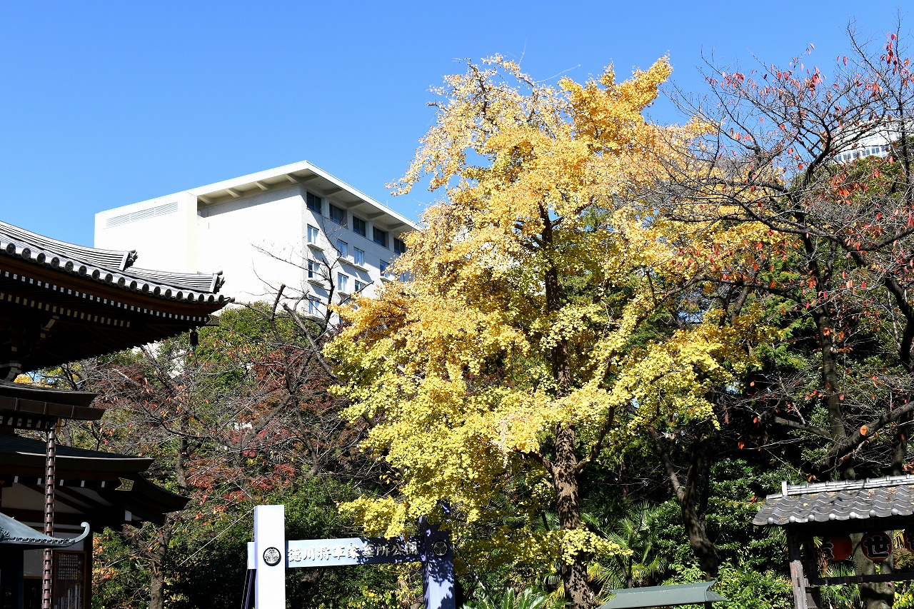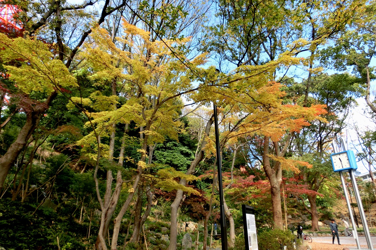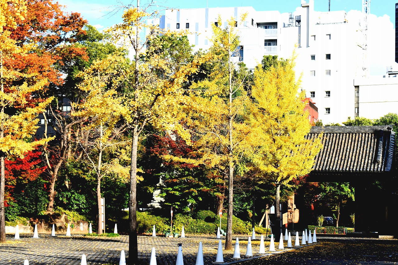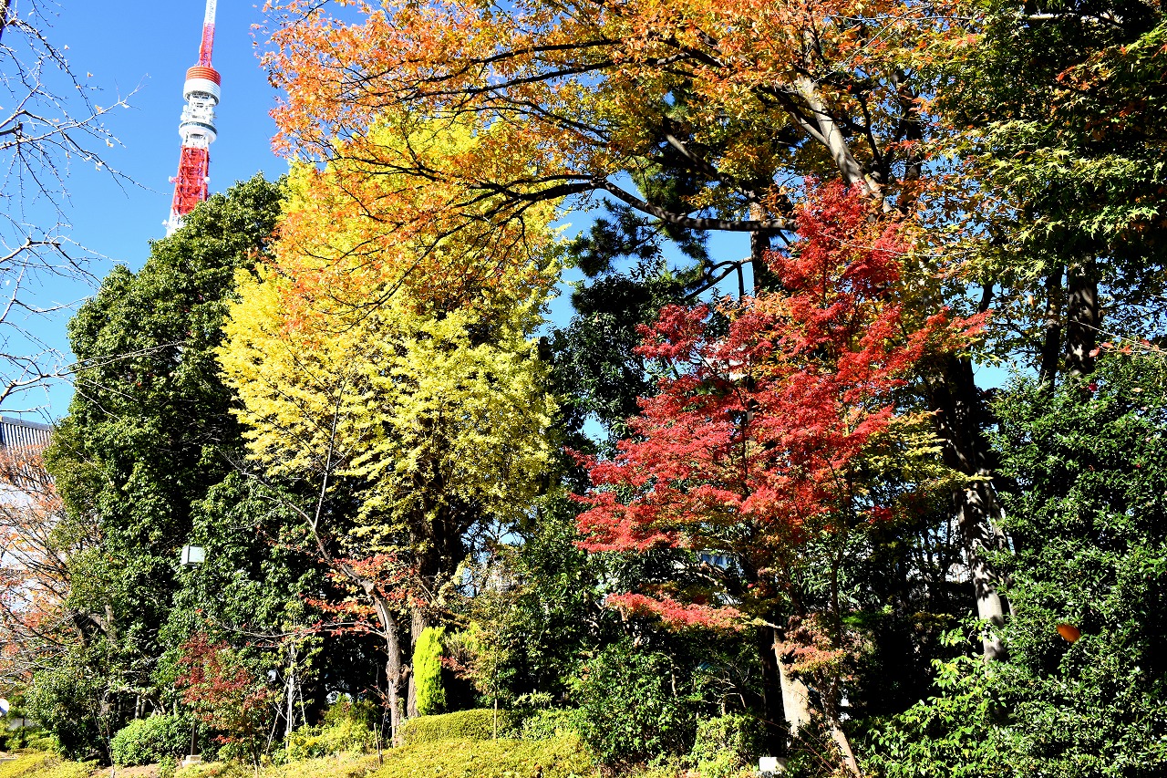 「一言」増上寺のイチョウが黄葉して綺麗になりました。21日に行くと早く黄葉したイチョウの葉は前日の風で散って黄葉した葉は少なくなっていました。 芝公園には楓が紅葉していました。ススキやサザンカ、コスモス、トランペットフラワーが咲いていました。桧町公園は池の周りが紅葉していて 華やかです。真っ赤に紅葉した大きな木があり非常に綺麗です。