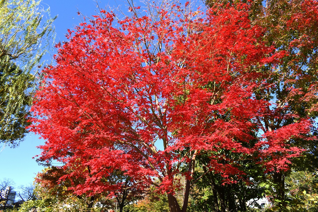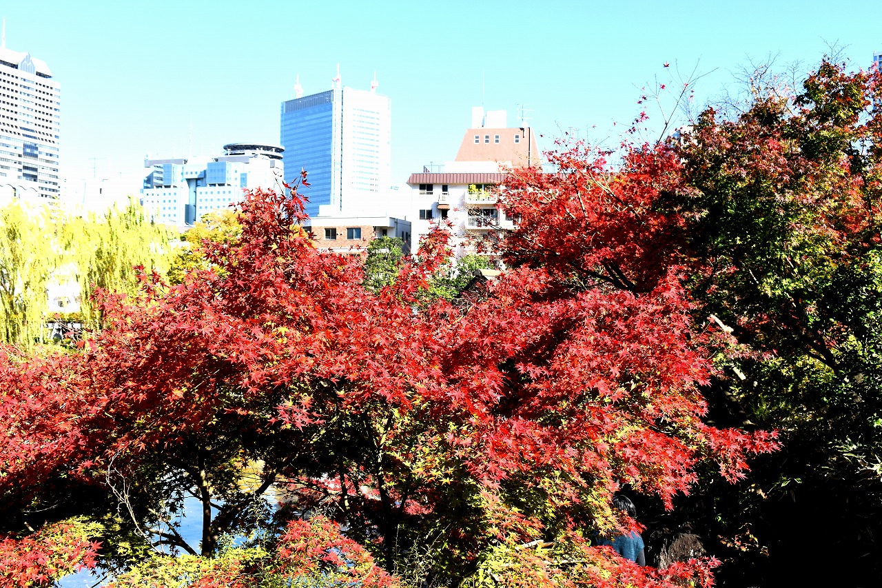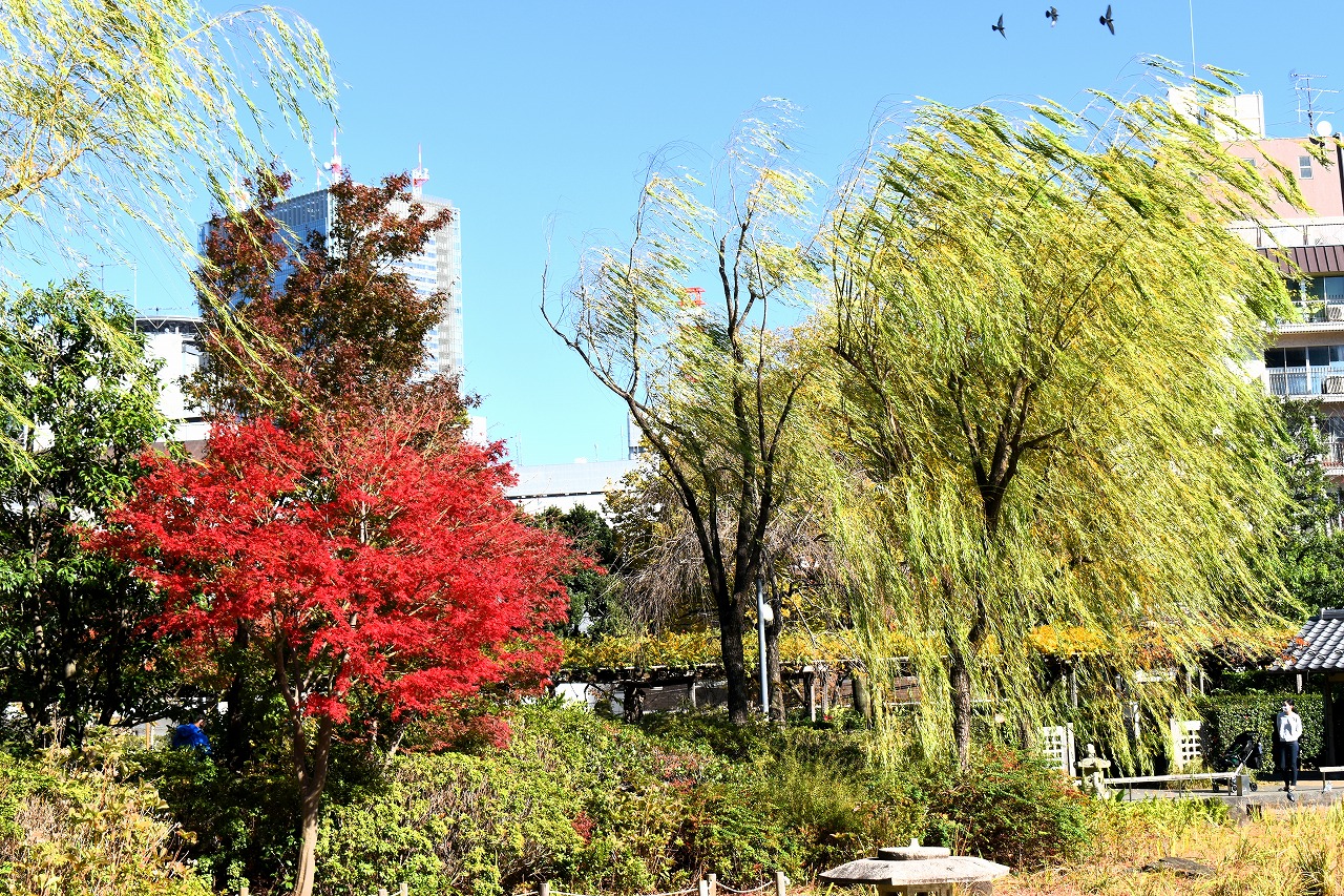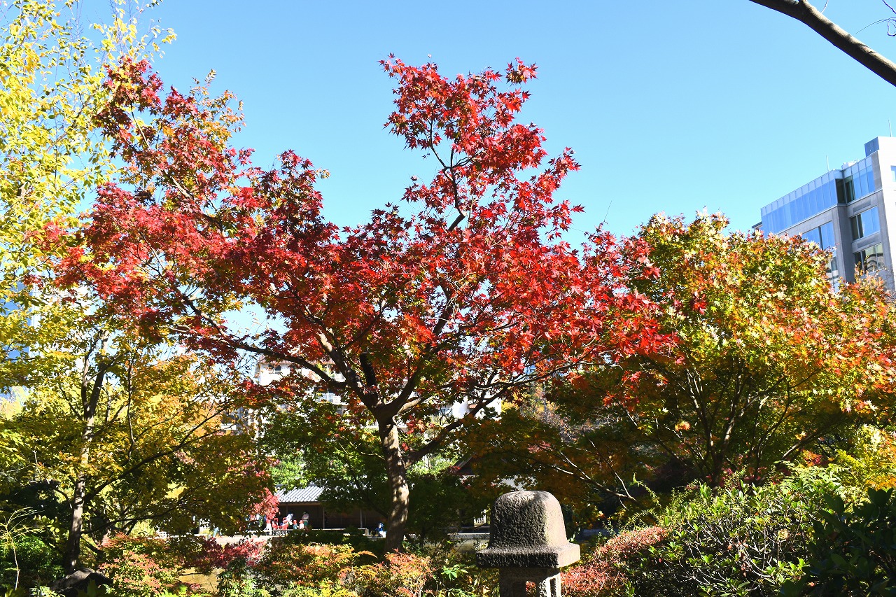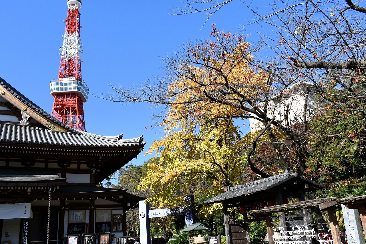 「一言」増上寺のイチョウが黄葉して綺麗になりました。21日に行くと早く黄葉したイチョウの葉は前日の風で散って黄葉した葉は少なくなっていました。 芝公園には楓が紅葉していました。ススキやサザンカ、コスモス、トランペットフラワーが咲いていました。桧町公園は池の周りが紅葉していて 華やかです。真っ赤に紅葉した大きな木があり非常に綺麗です。