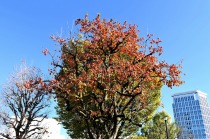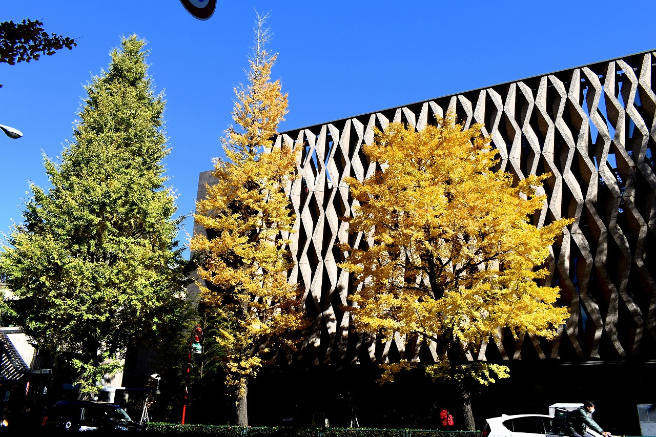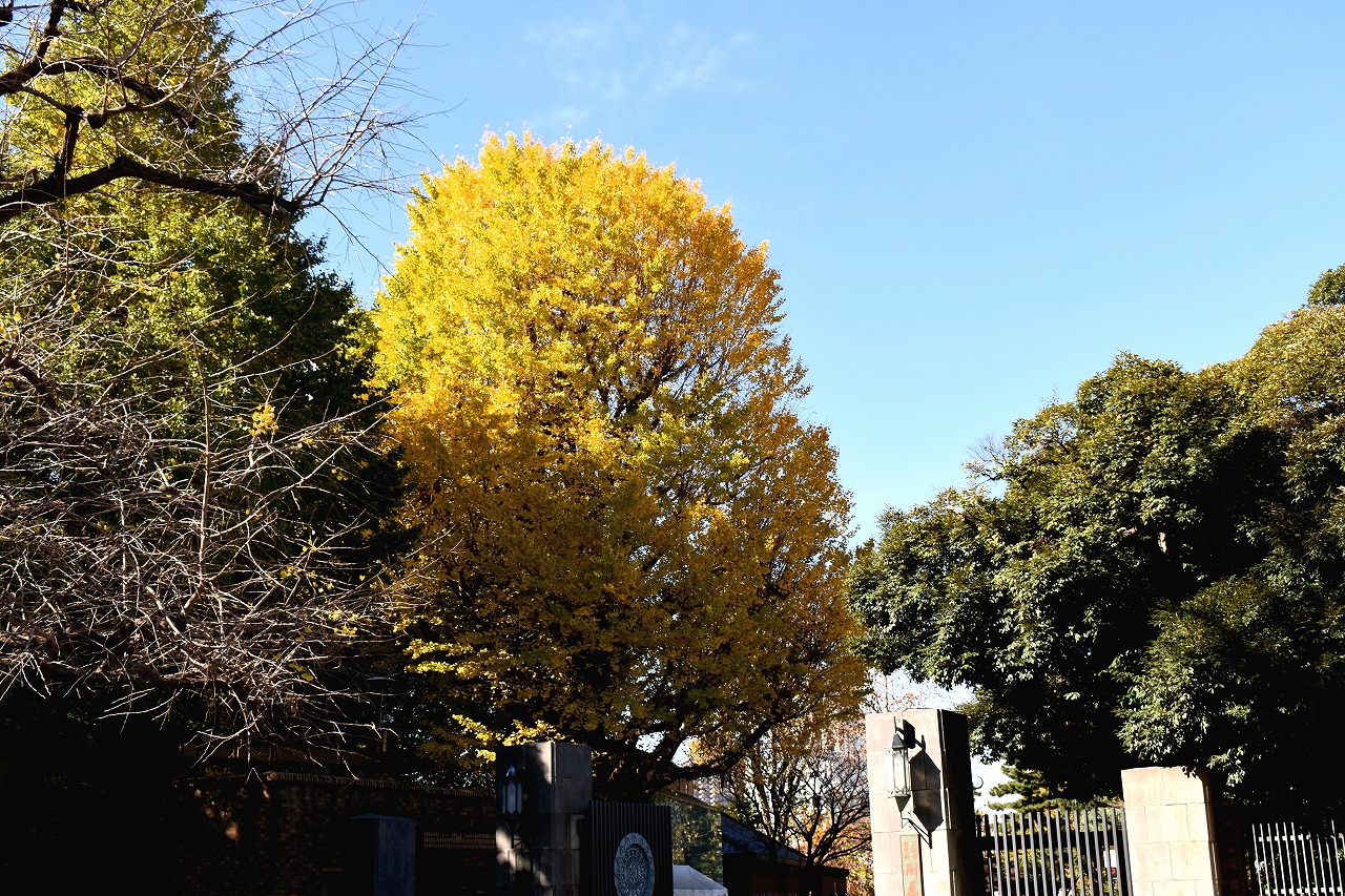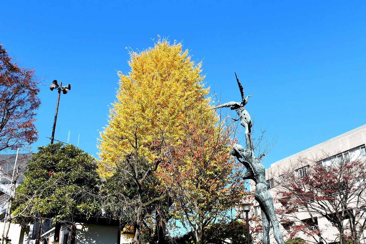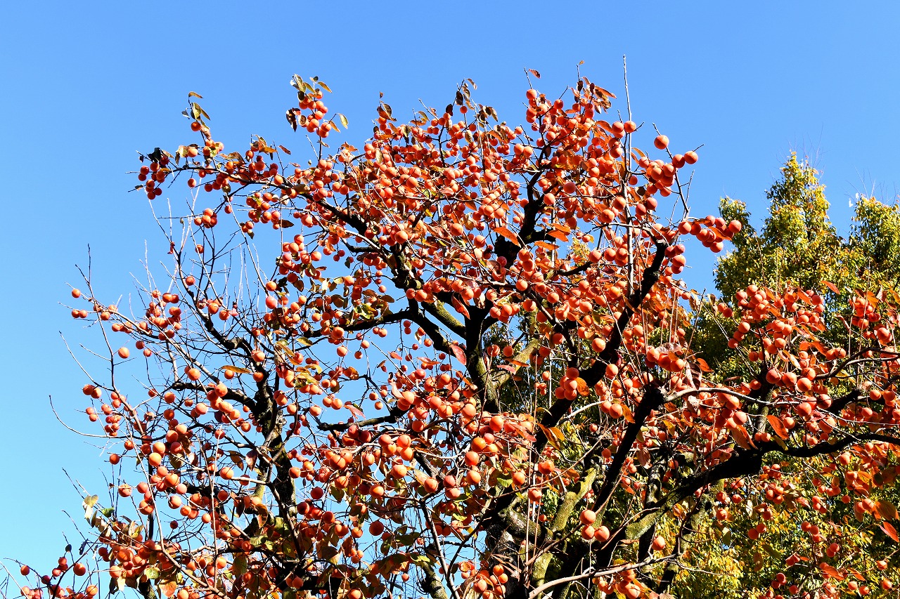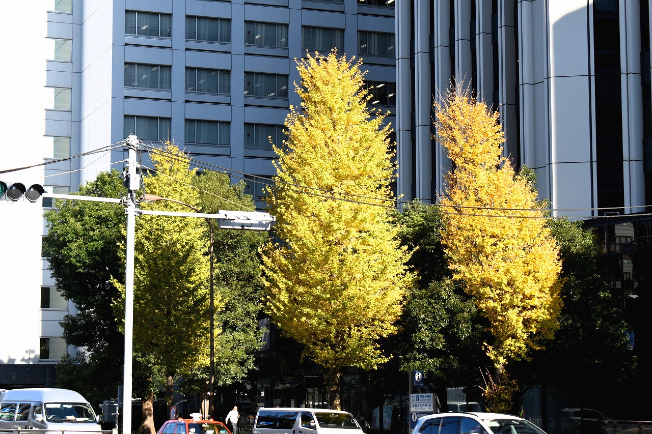 「一言」三田台児童遊園の柿の木にたくさんの柿が実っています。遠くから見ると柿の木が紅葉している感じがします。亀塚公園には夏みかん や柿の実がなっています。高輪公園の大きなイチョウの木が黄葉しました。品川バス停のイチョウは散り始め透きとおった黄色になって います。第一京浜沿いのイチョウも黄葉し始めました。プラチナ通りや麻布通りのイチョウも黄葉しています。