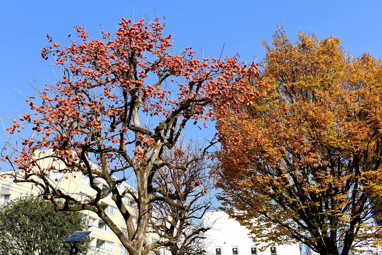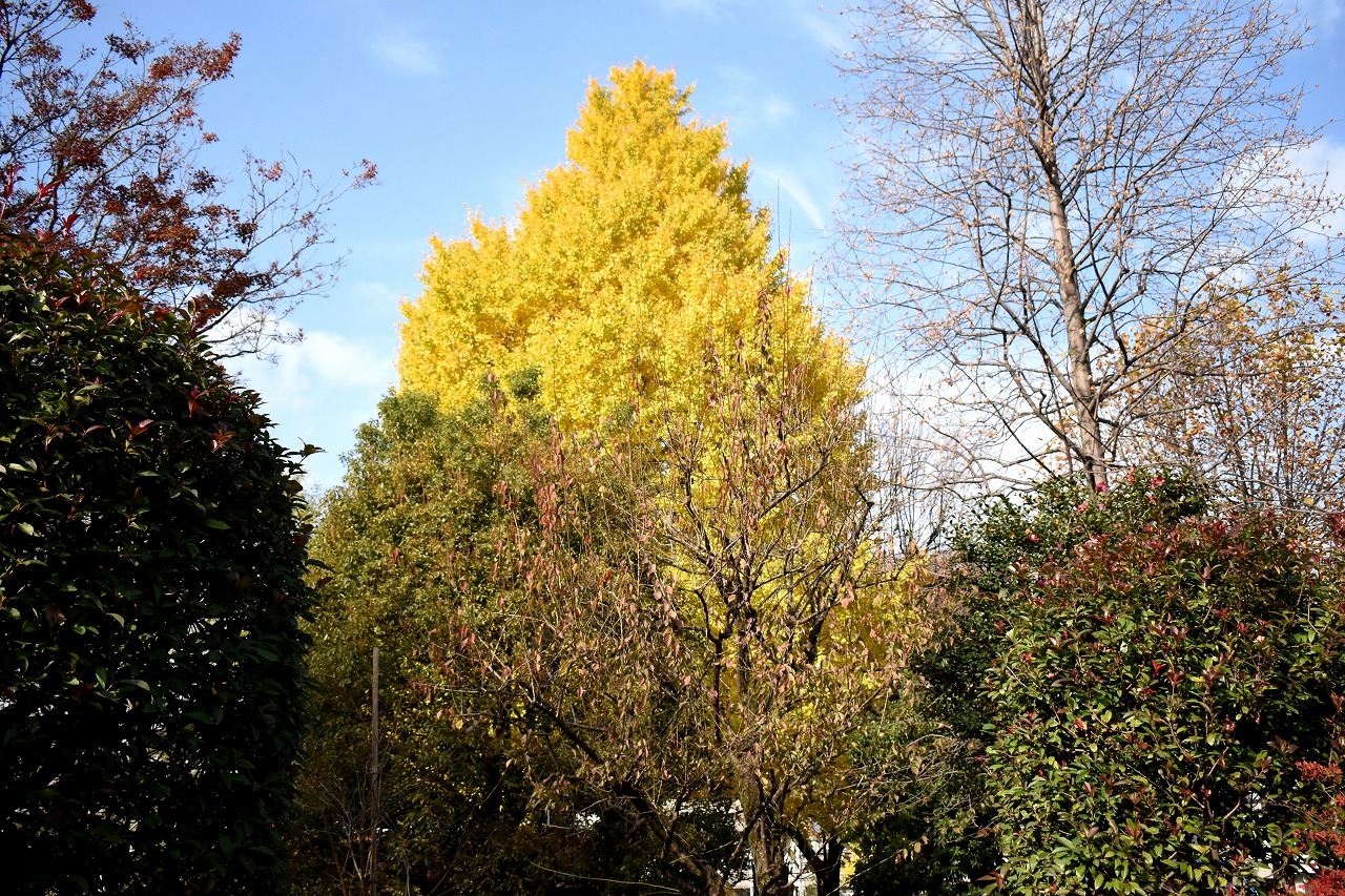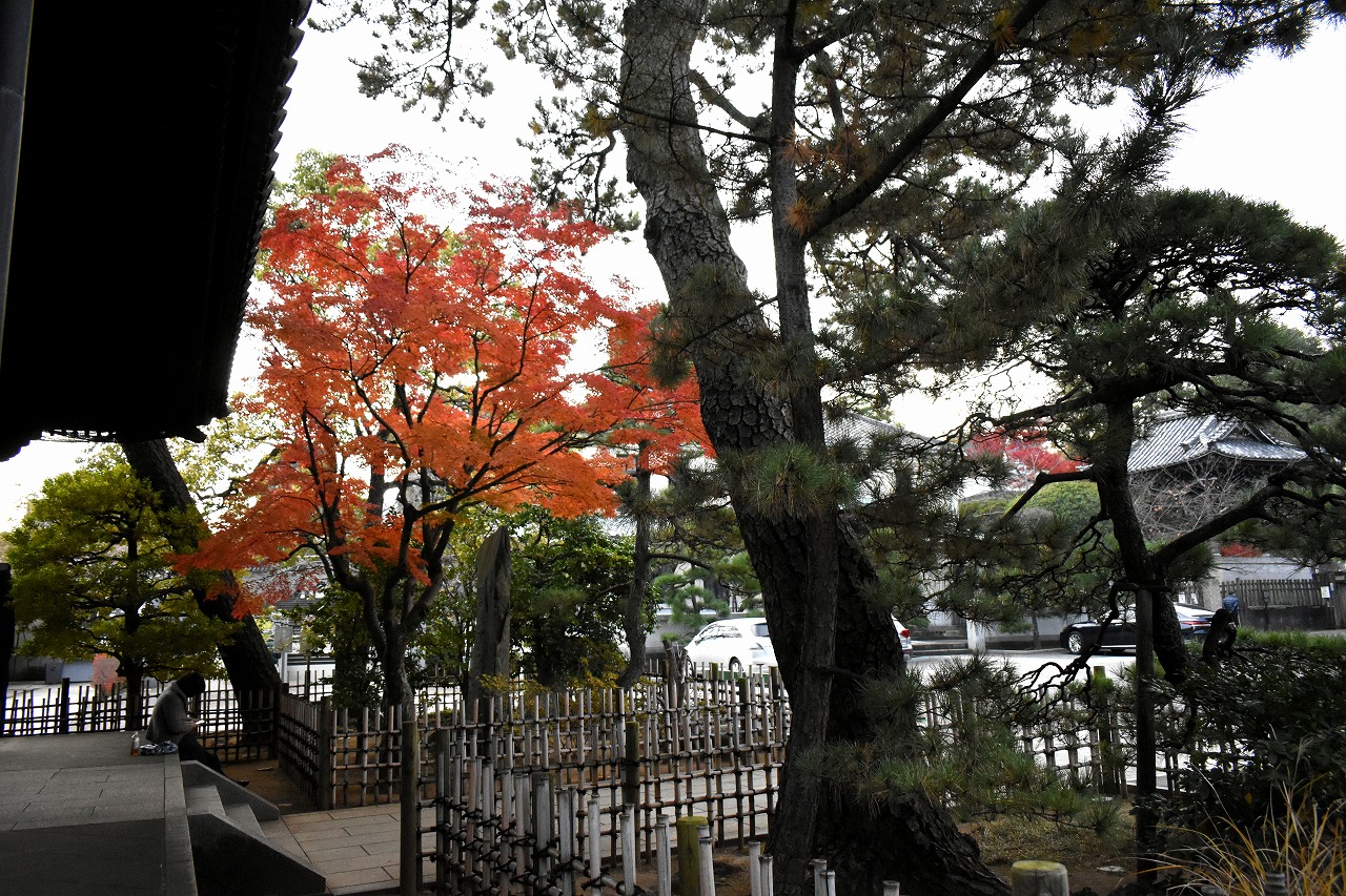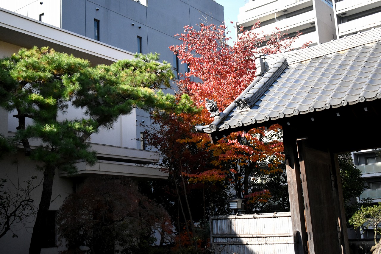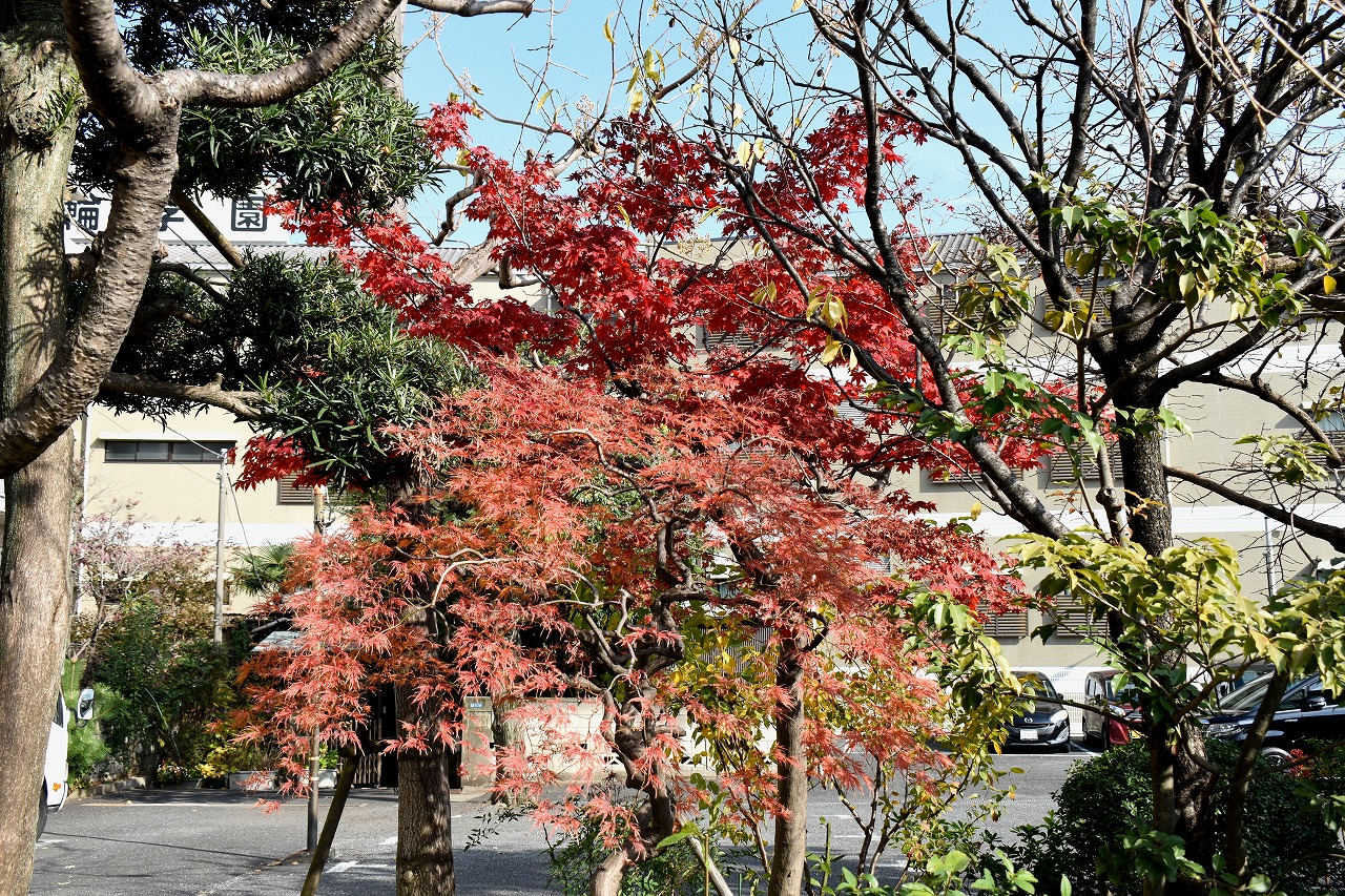 「一言」亀塚公園には大きな木がたくさんありますが、どれも黄葉して見事です。三田台児童遊園の大きな木も黄葉しています。今年は柿の実がたくさんなりました。 泉岳寺のもみじも紅葉して綺麗です。門を背景にしたもみじは風情があります。三田寺町にはあちらこちらのお寺に紅葉や黄葉が見られ風情があります。