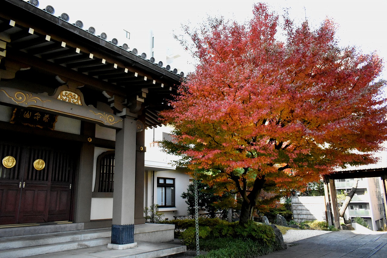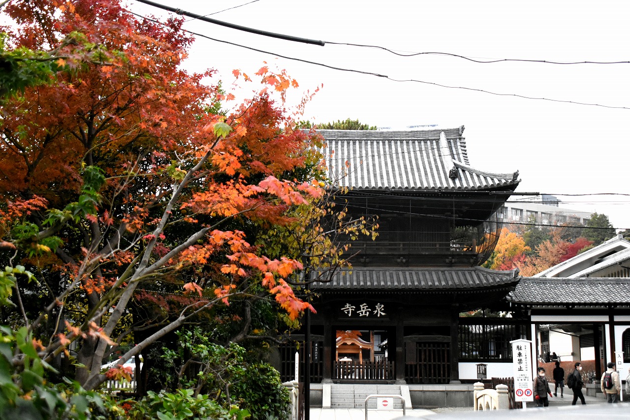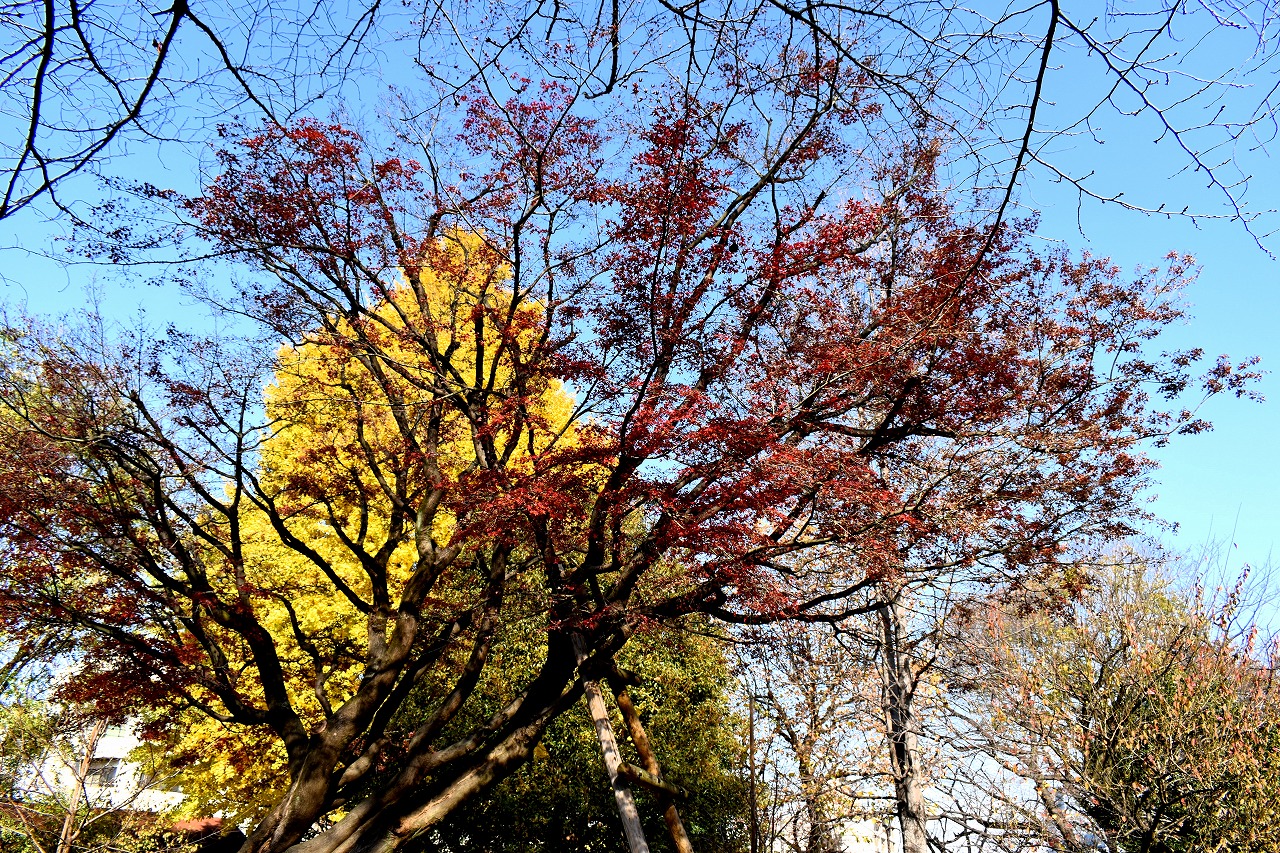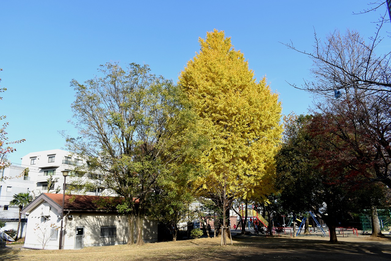 「一言」亀塚公園には大きな木がたくさんありますが、どれも黄葉して見事です。三田台児童遊園の大きな木も黄葉しています。今年は柿の実がたくさんなりました。 泉岳寺のもみじも紅葉して綺麗です。門を背景にしたもみじは風情があります。三田寺町にはあちらこちらのお寺に紅葉や黄葉が見られ風情があります。