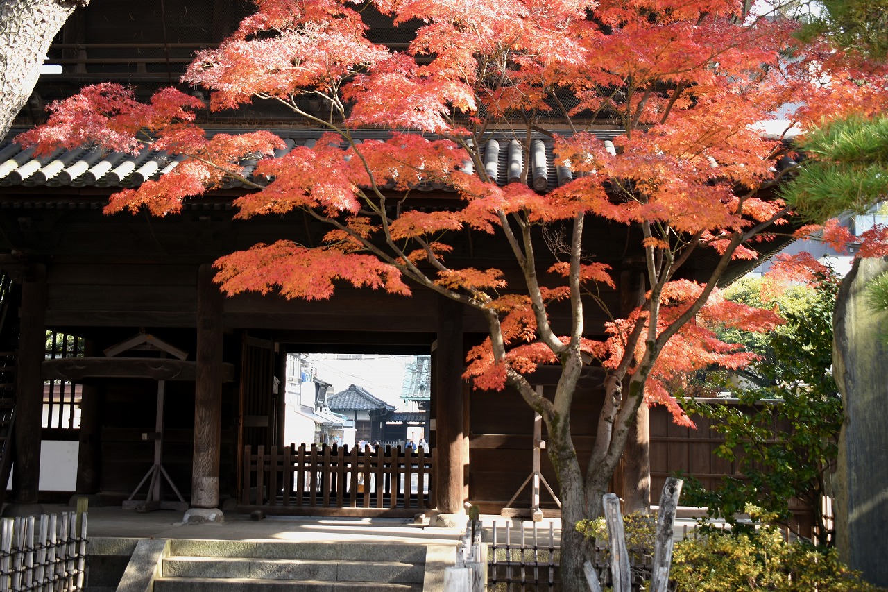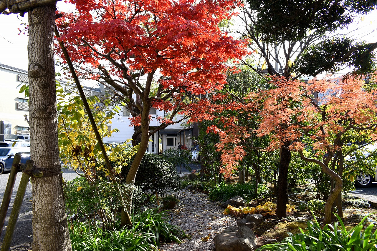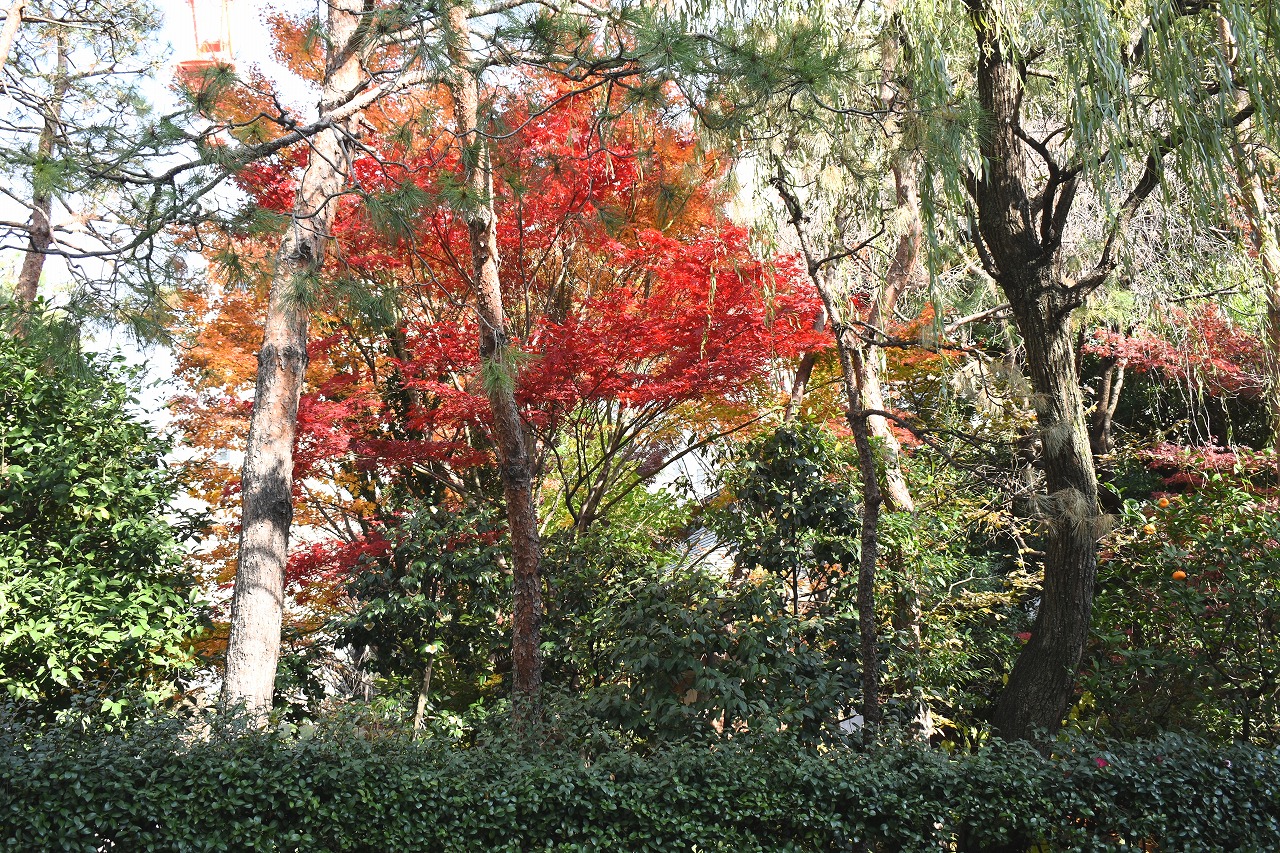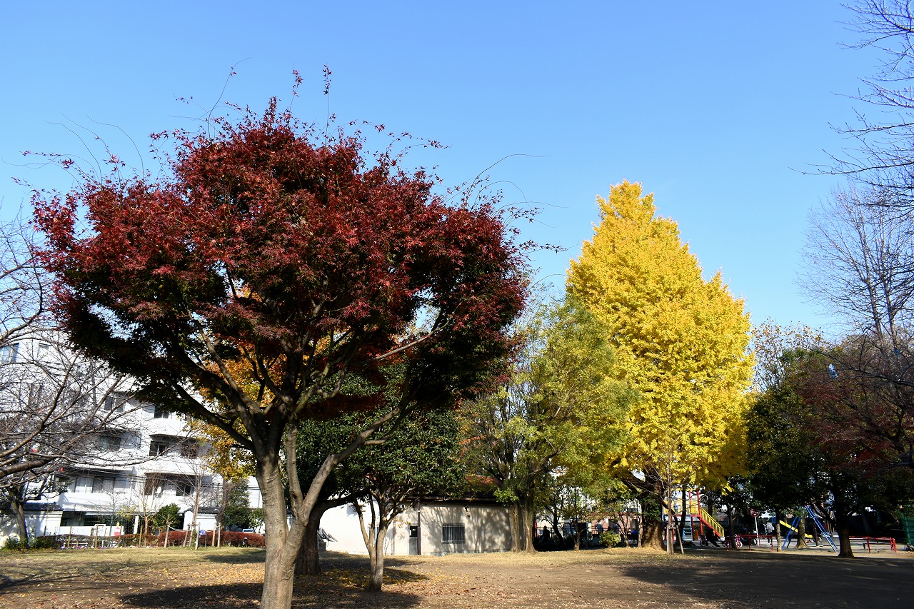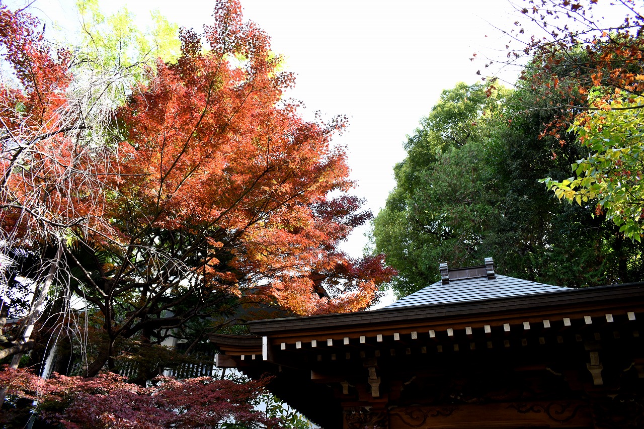 「一言」亀塚公園には大きな木がたくさんありますが、どれも黄葉して見事です。三田台児童遊園の大きな木も黄葉しています。今年は柿の実がたくさんなりました。 泉岳寺のもみじも紅葉して綺麗です。門を背景にしたもみじは風情があります。三田寺町にはあちらこちらのお寺に紅葉や黄葉が見られ風情があります。
