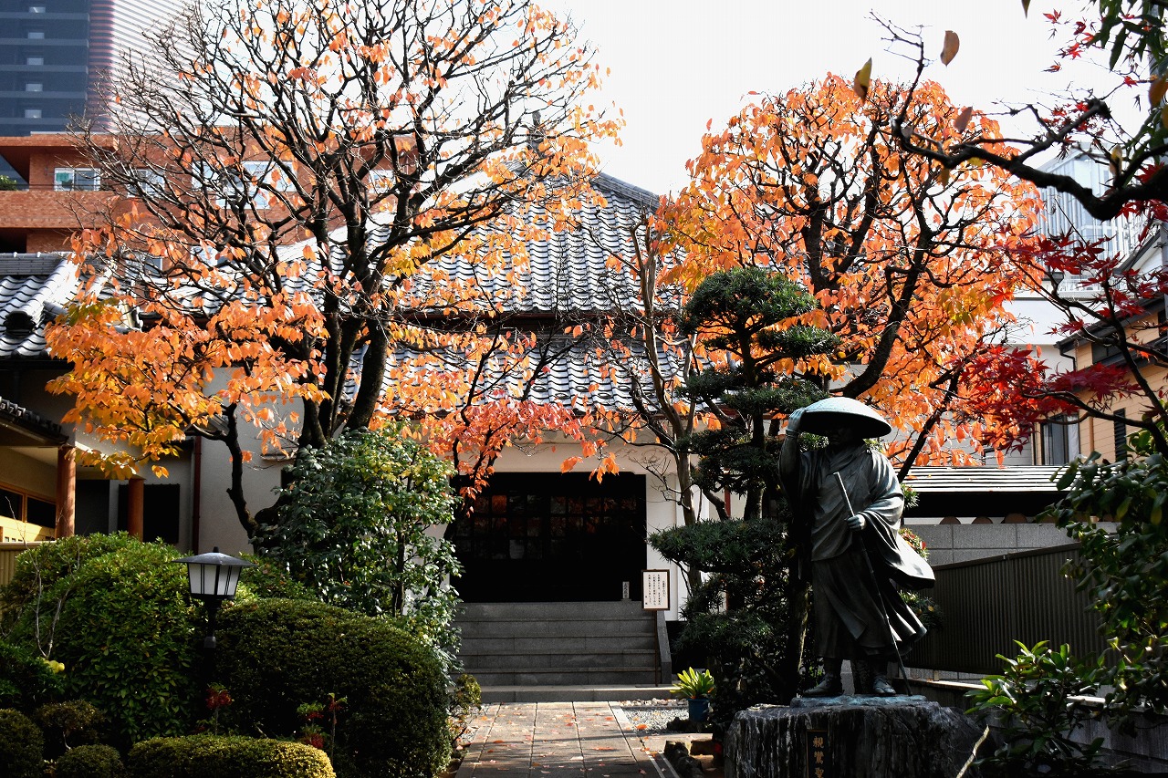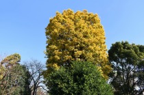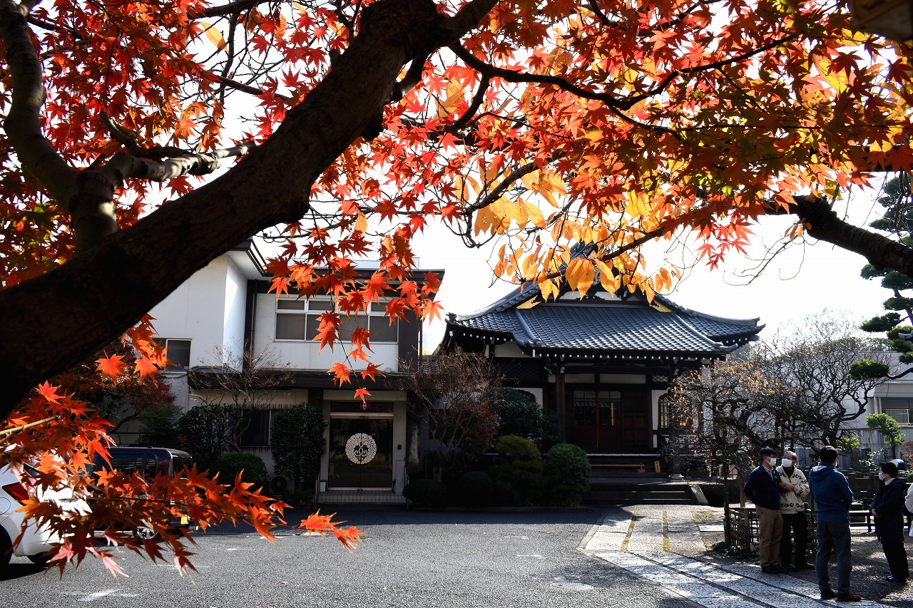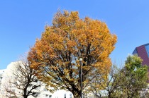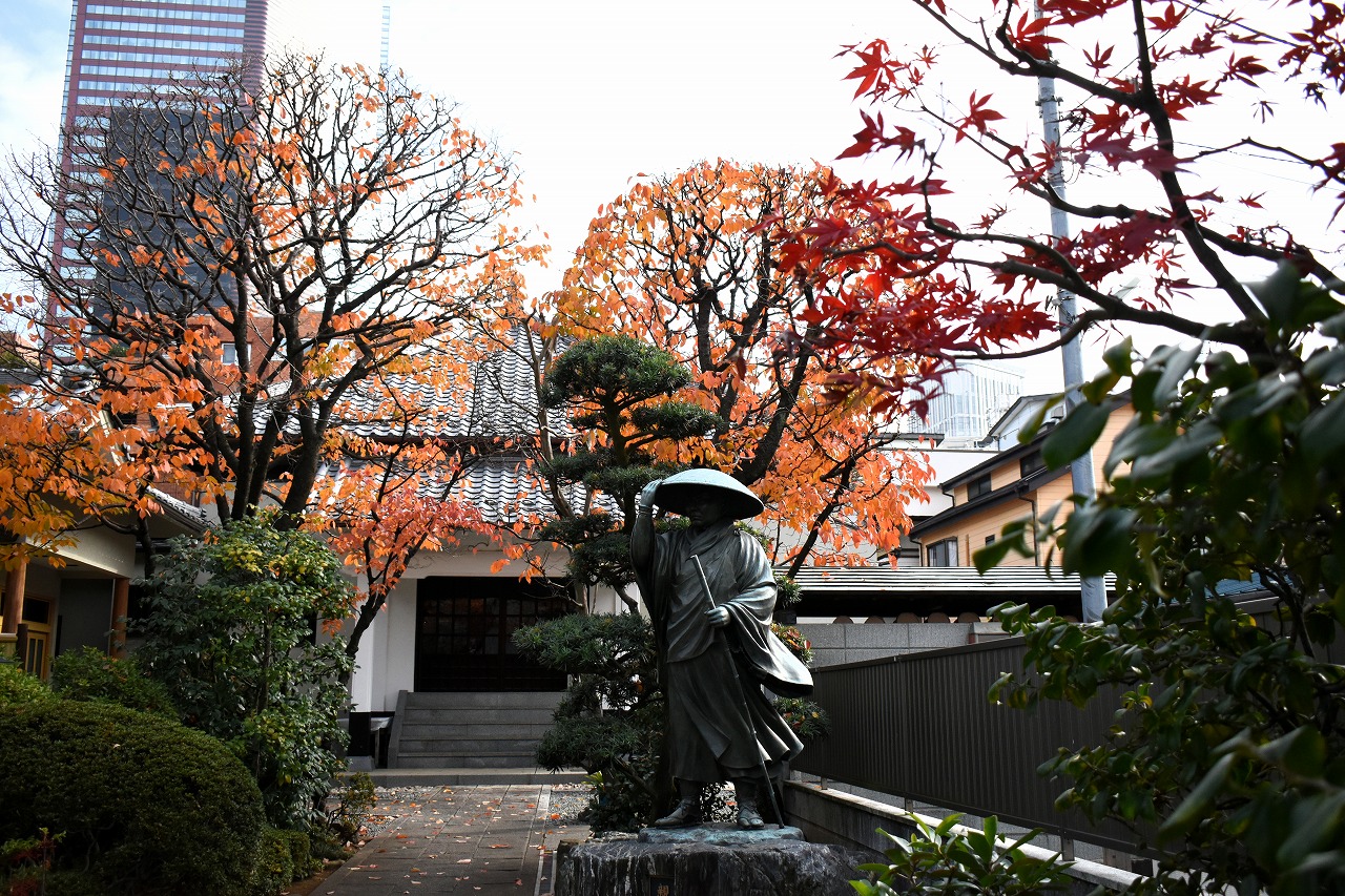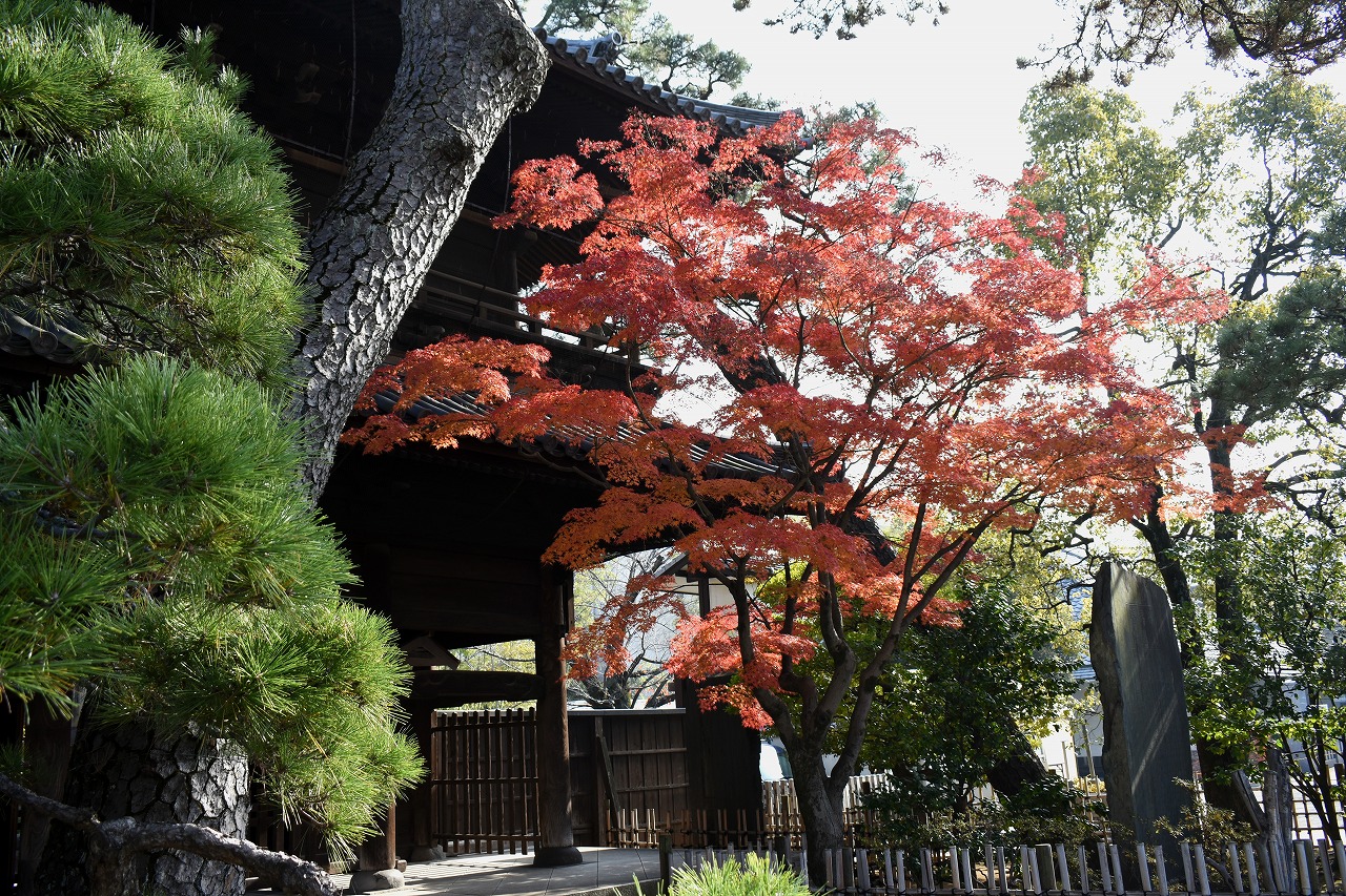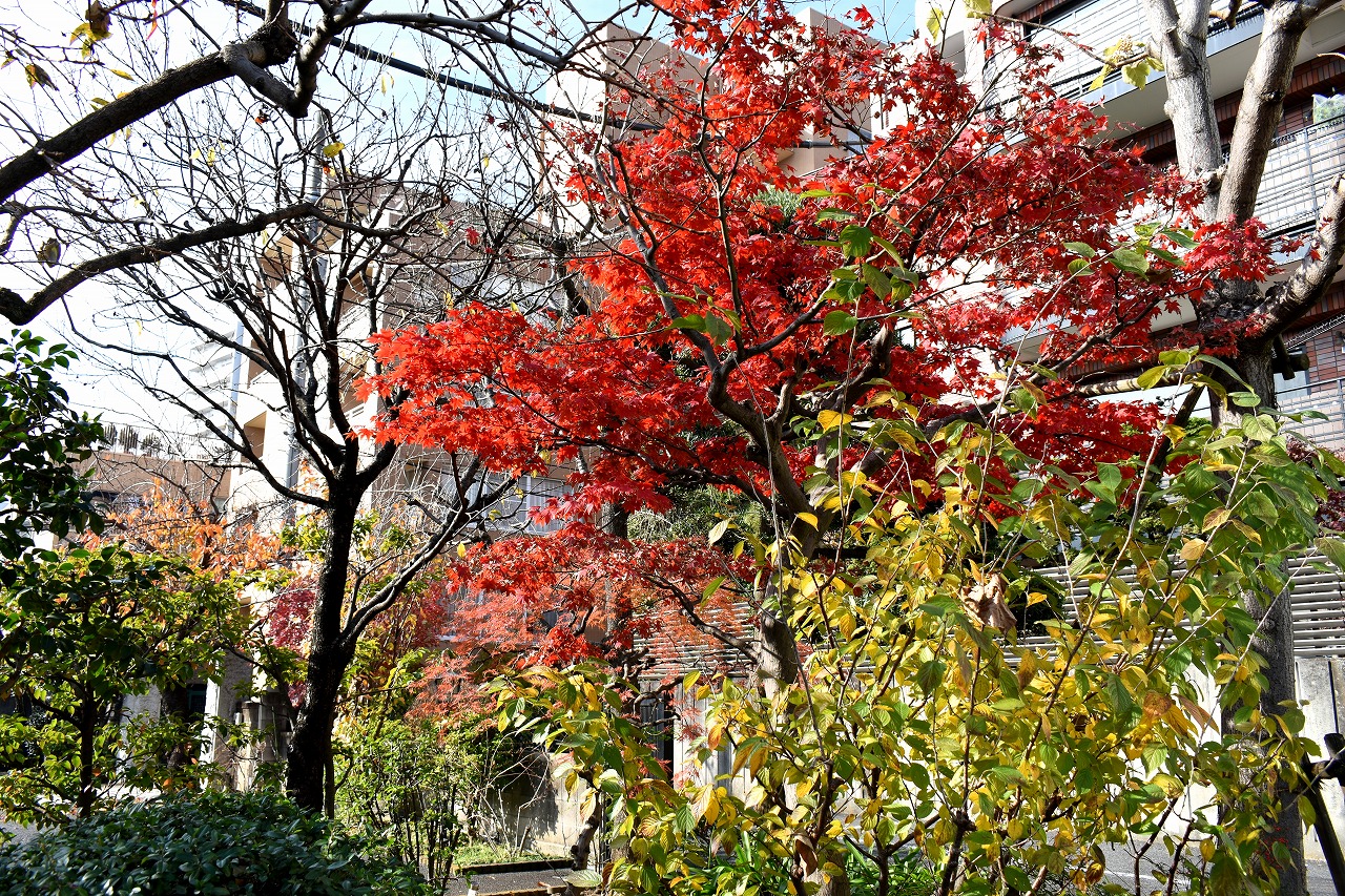 「一言」亀塚公園には大きな木がたくさんありますが、どれも黄葉して見事です。三田台児童遊園の大きな木も黄葉しています。今年は柿の実がたくさんなりました。 泉岳寺のもみじも紅葉して綺麗です。門を背景にしたもみじは風情があります。三田寺町にはあちらこちらのお寺に紅葉や黄葉が見られ風情があります。