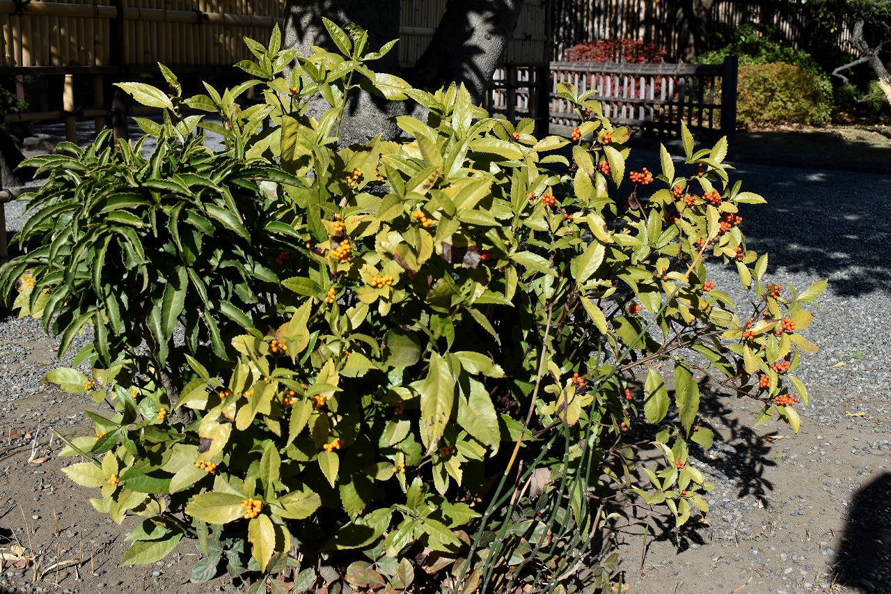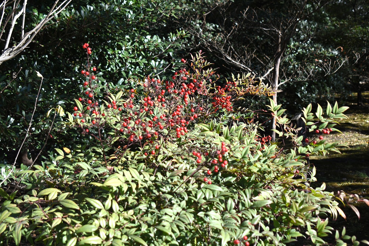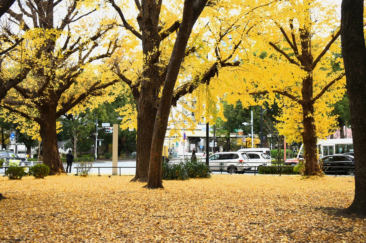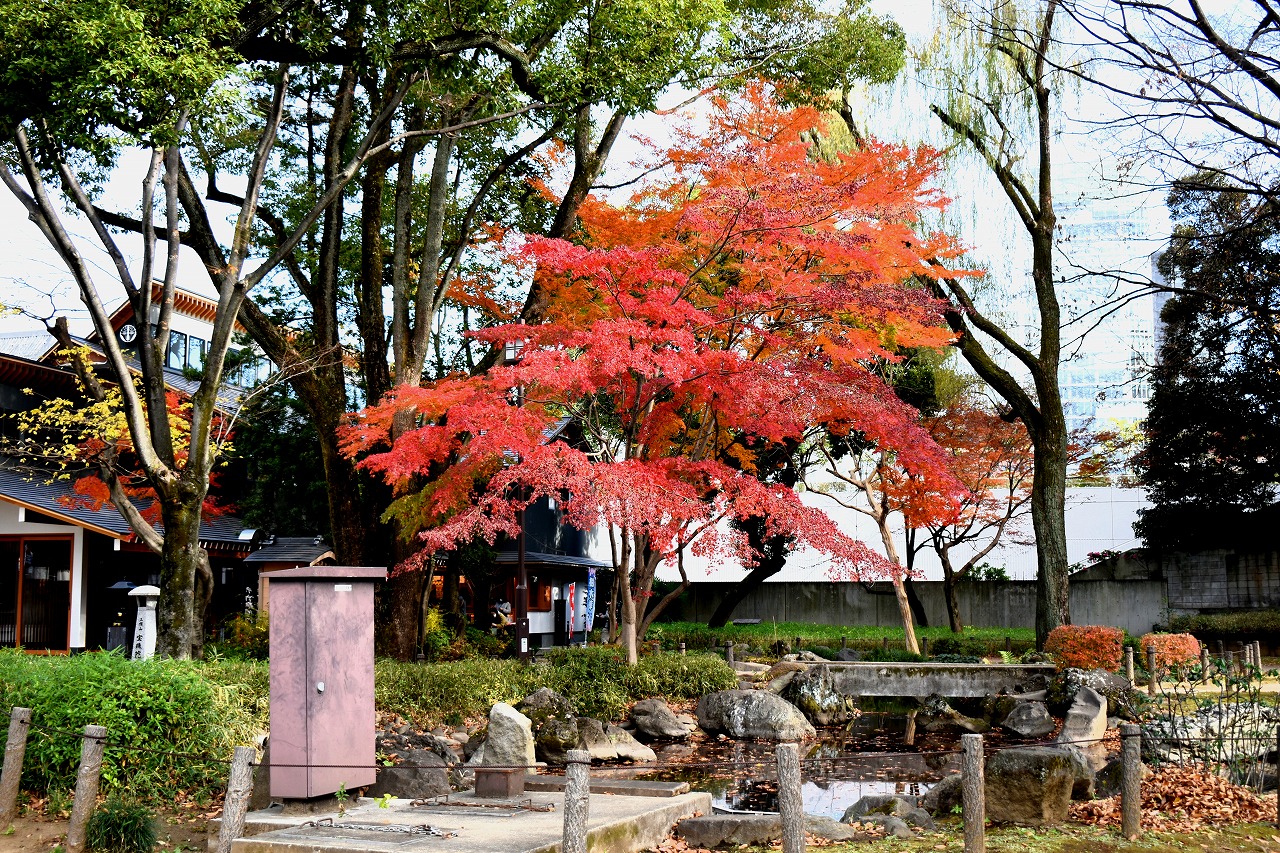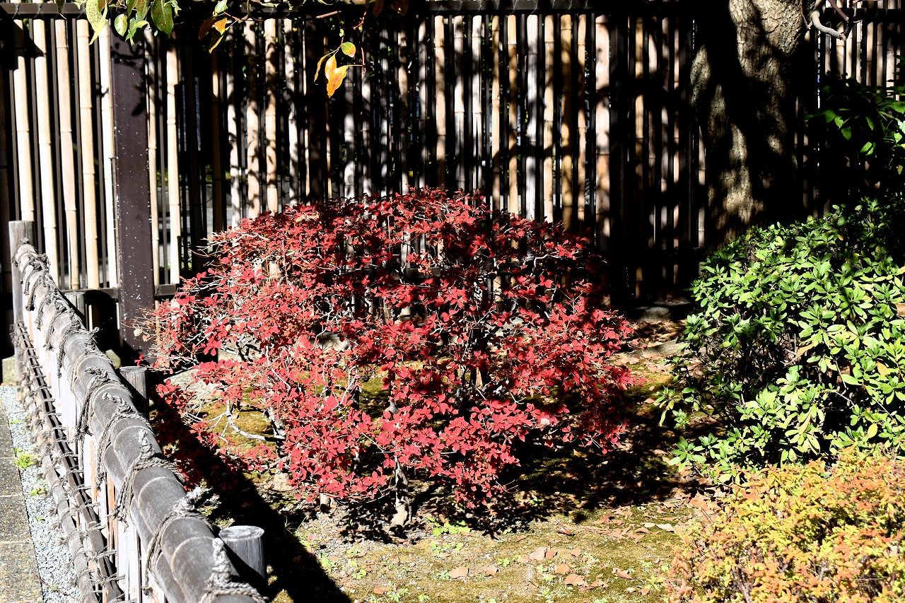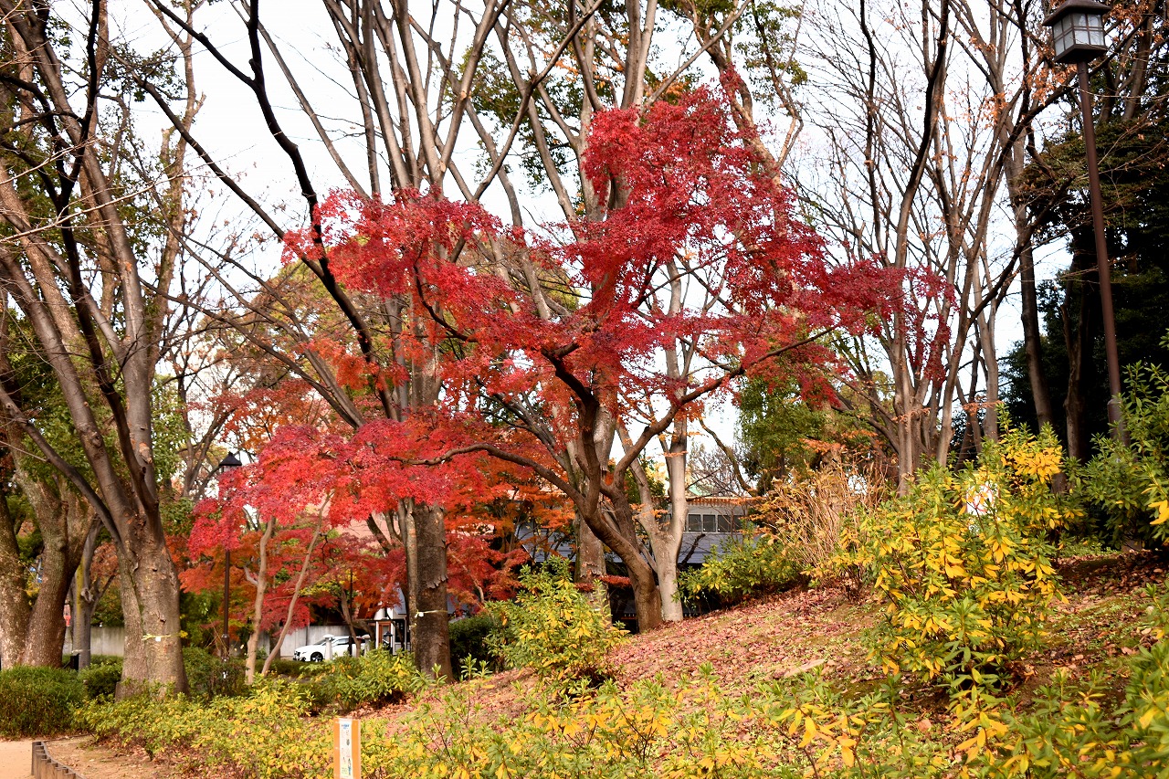 「一言」旧芝離宮の紅葉は峠を越えた感じですが、まだ綺麗です。南天や千両、万両が実をつけています。 芝公園にある宝珠院のまわりにももみじがあり紅葉して見頃になっています。芝公園の東照宮の大きなイチョウ の木も黄葉して迫力があります。梅林には木瓜の花が咲いています。広場にはバラの花が咲いています。 芝公園の前の日比谷通りや第一京浜の道路沿いのイチョウの並木も黄葉して綺麗です。