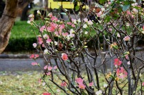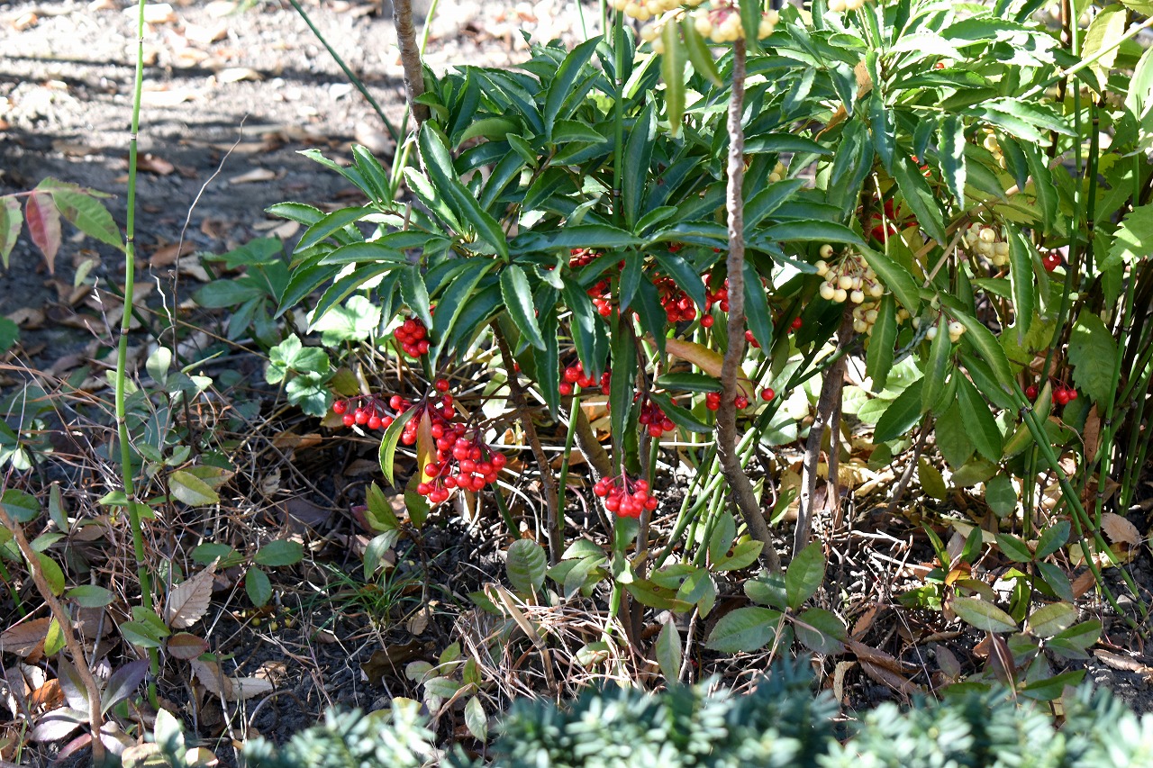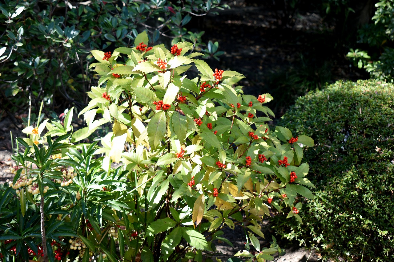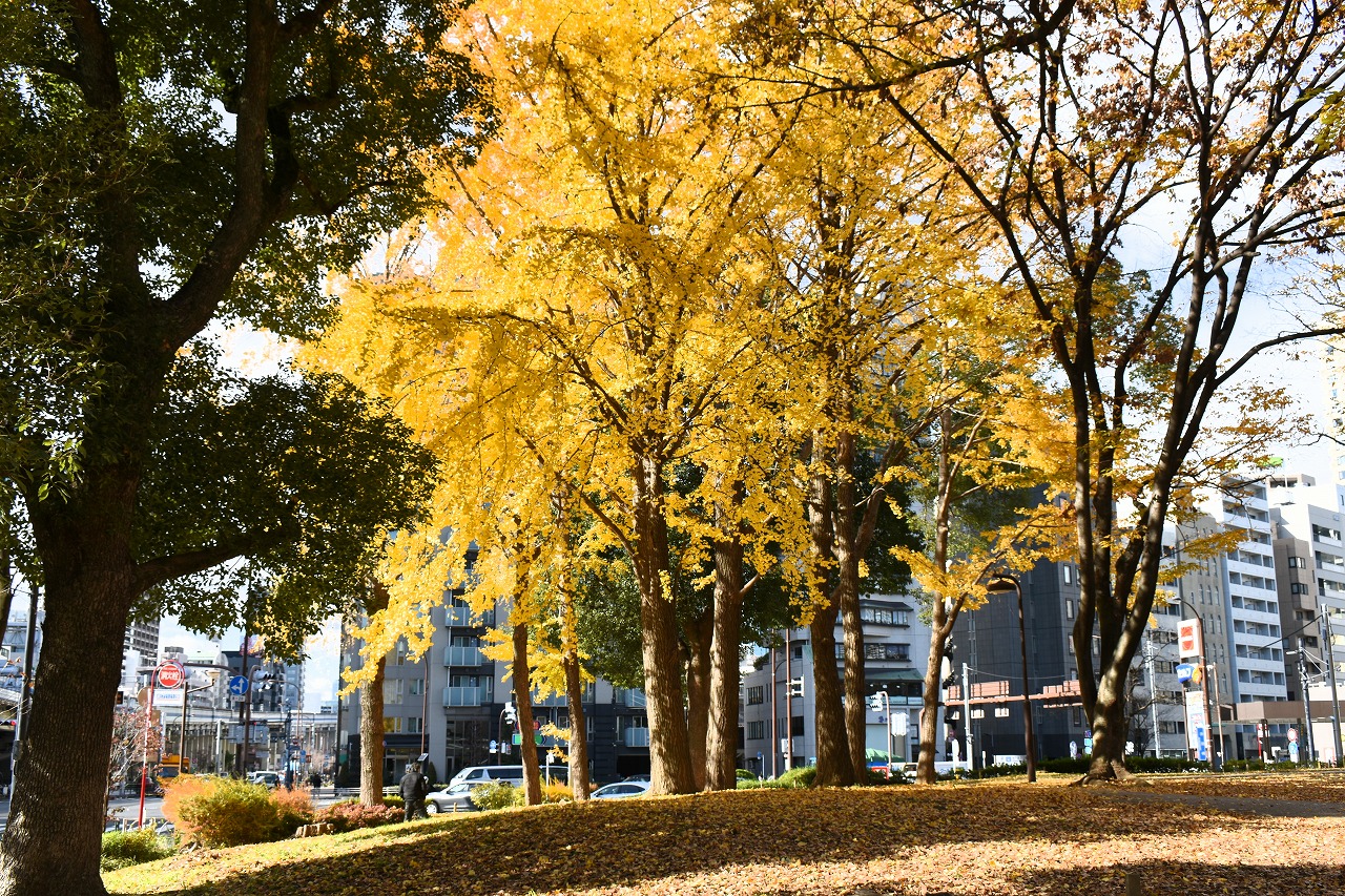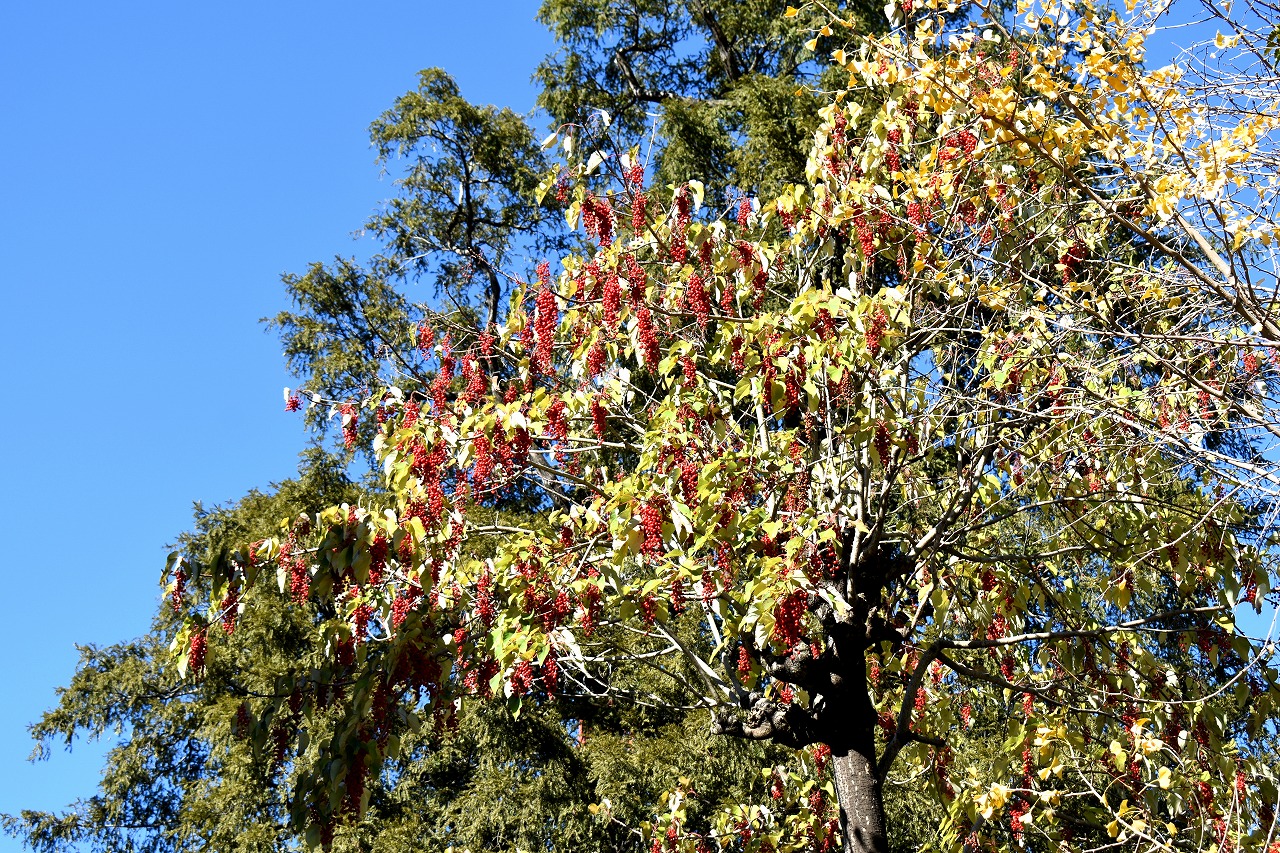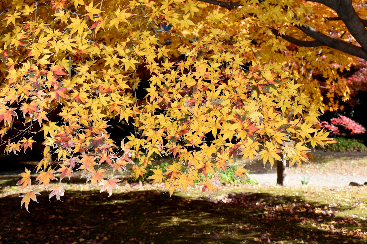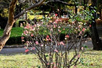 「一言」旧芝離宮の紅葉は峠を越えた感じですが、まだ綺麗です。南天や千両、万両が実をつけています。 芝公園にある宝珠院のまわりにももみじがあり紅葉して見頃になっています。芝公園の東照宮の大きなイチョウ の木も黄葉して迫力があります。梅林には木瓜の花が咲いています。広場にはバラの花が咲いています。 芝公園の前の日比谷通りや第一京浜の道路沿いのイチョウの並木も黄葉して綺麗です。