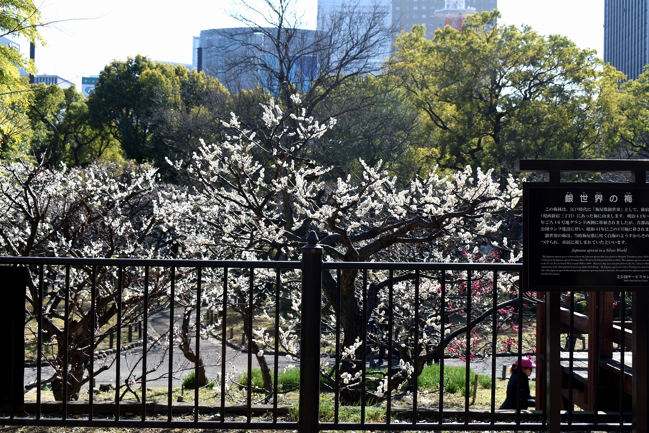 「一言」三田台児童遊園では色々な梅の花が咲いて綺麗です。三田寺町のお寺の梅の花も咲き出しました。高輪のグランドプリンスでは 白梅が満開です。河津桜も咲き出しました。プリンスパークタワーの入口横の白梅は一斉に咲いて綺麗です。芝公園の梅林でも 花が咲き銀世界になっています。増上寺も白梅や紅梅が咲いています。東京タワーの下の河津桜は徐々に花が増えています。