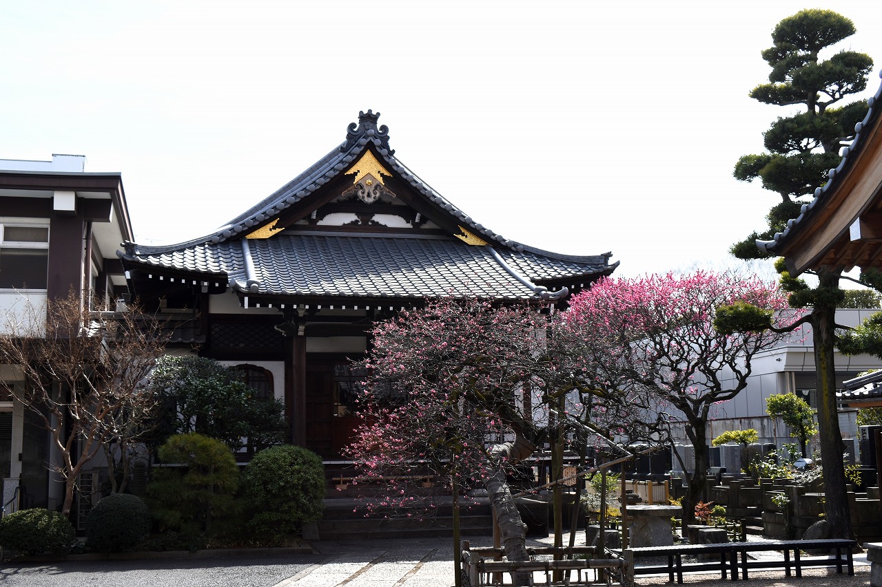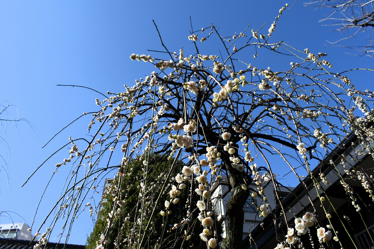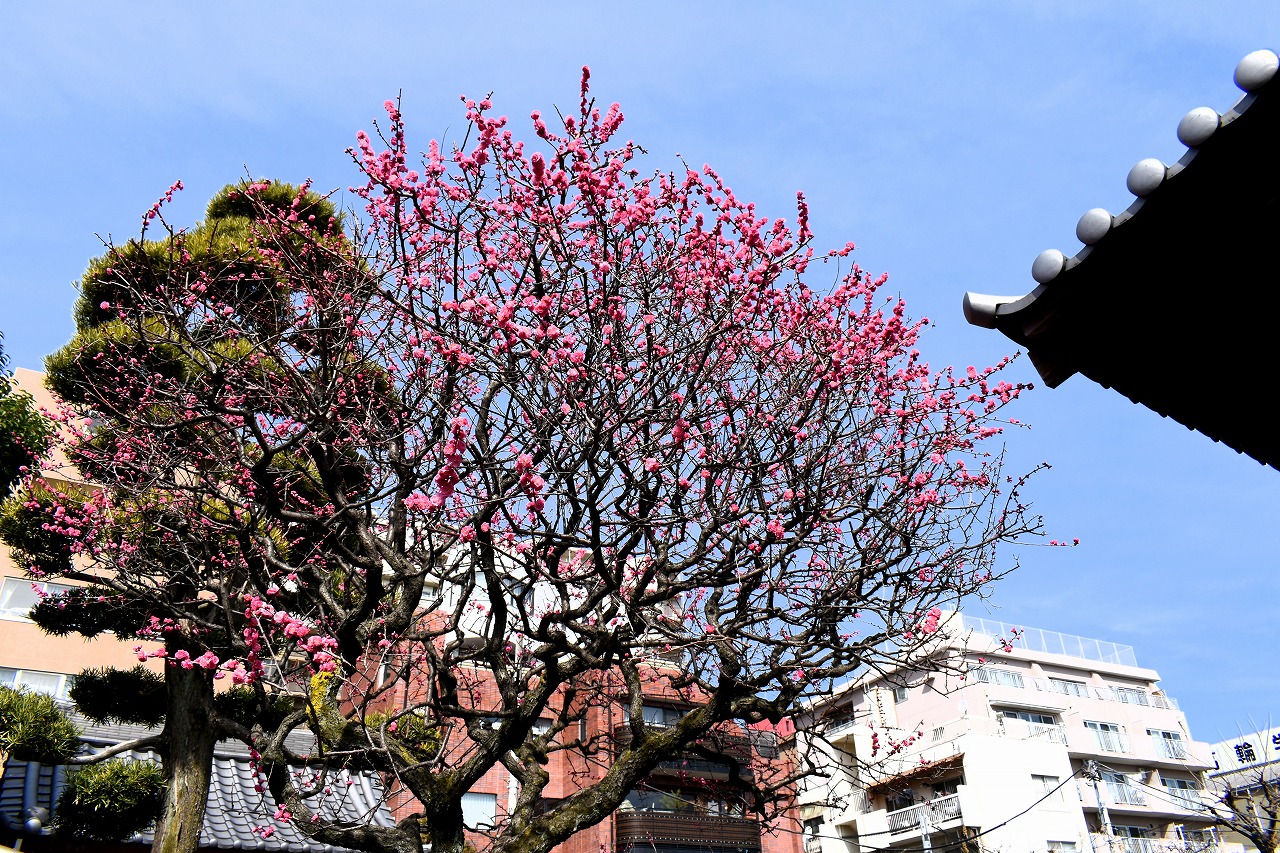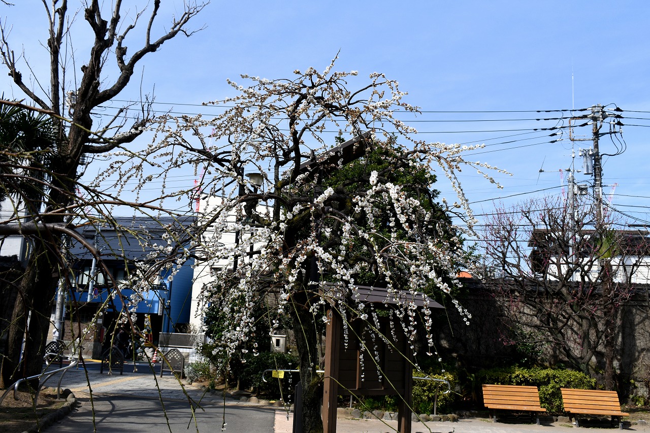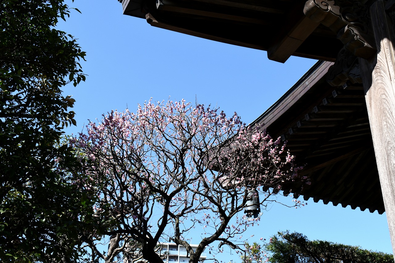 明王院のしだれの梅は白梅から紅梅になっています。二本榎通りにはユキヤナギが咲いていました。證誠寺には本堂の横の紅梅が見頃です。