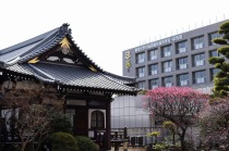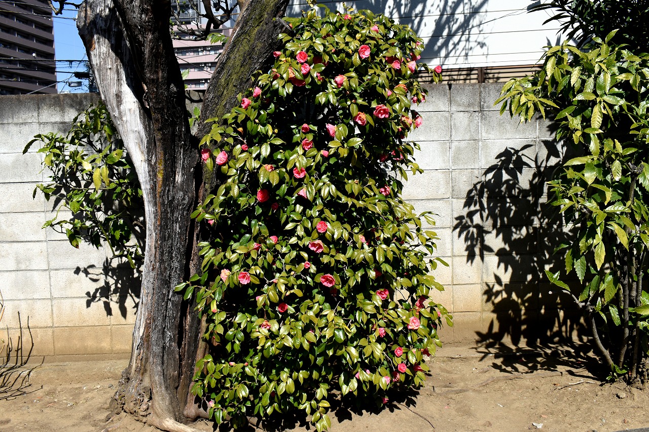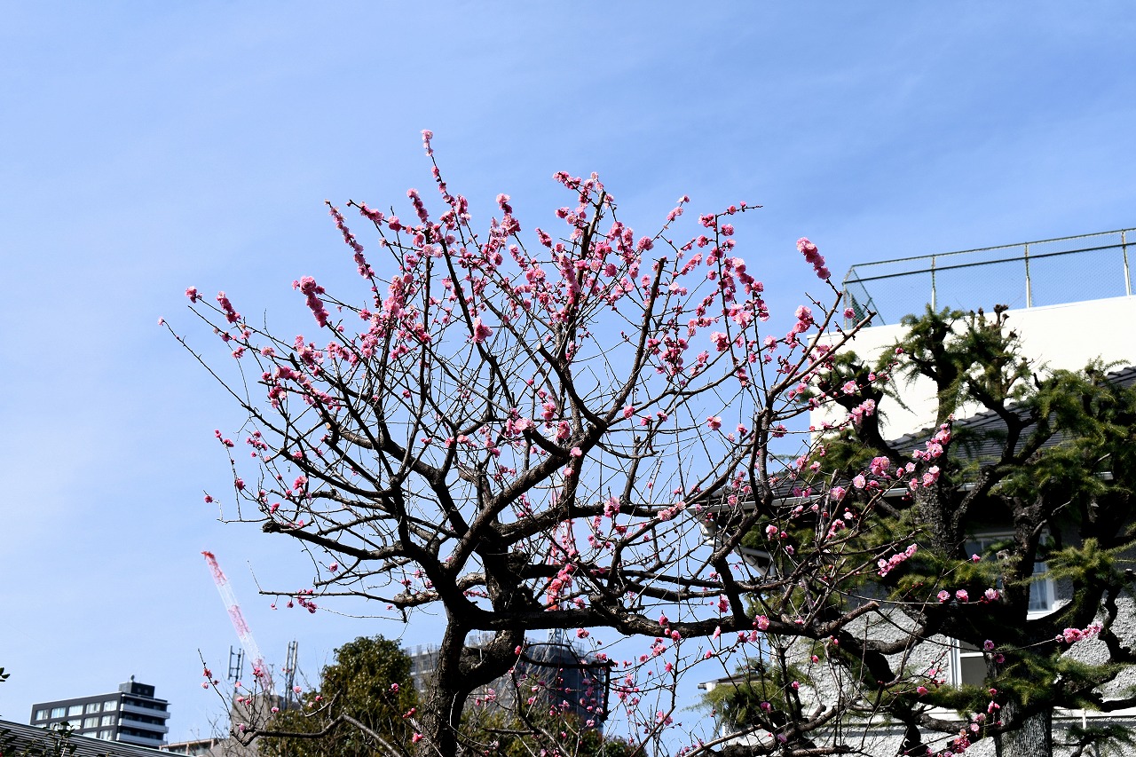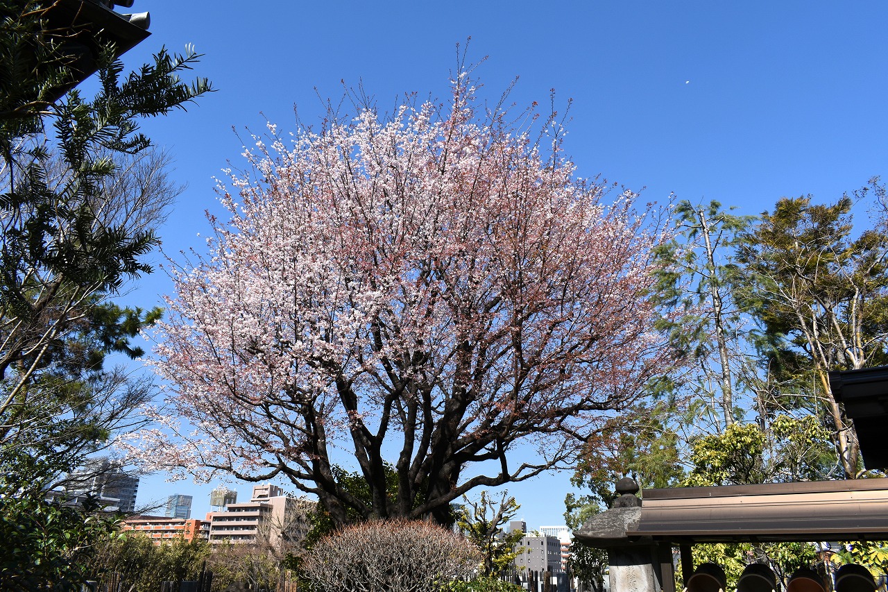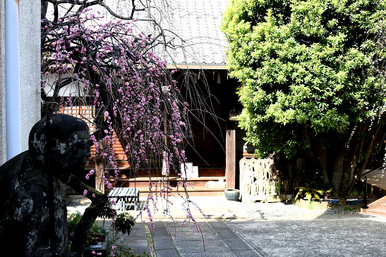 明王院のしだれの梅は白梅から紅梅になっています。二本榎通りにはユキヤナギが咲いていました。證誠寺には本堂の横の紅梅が見頃です。