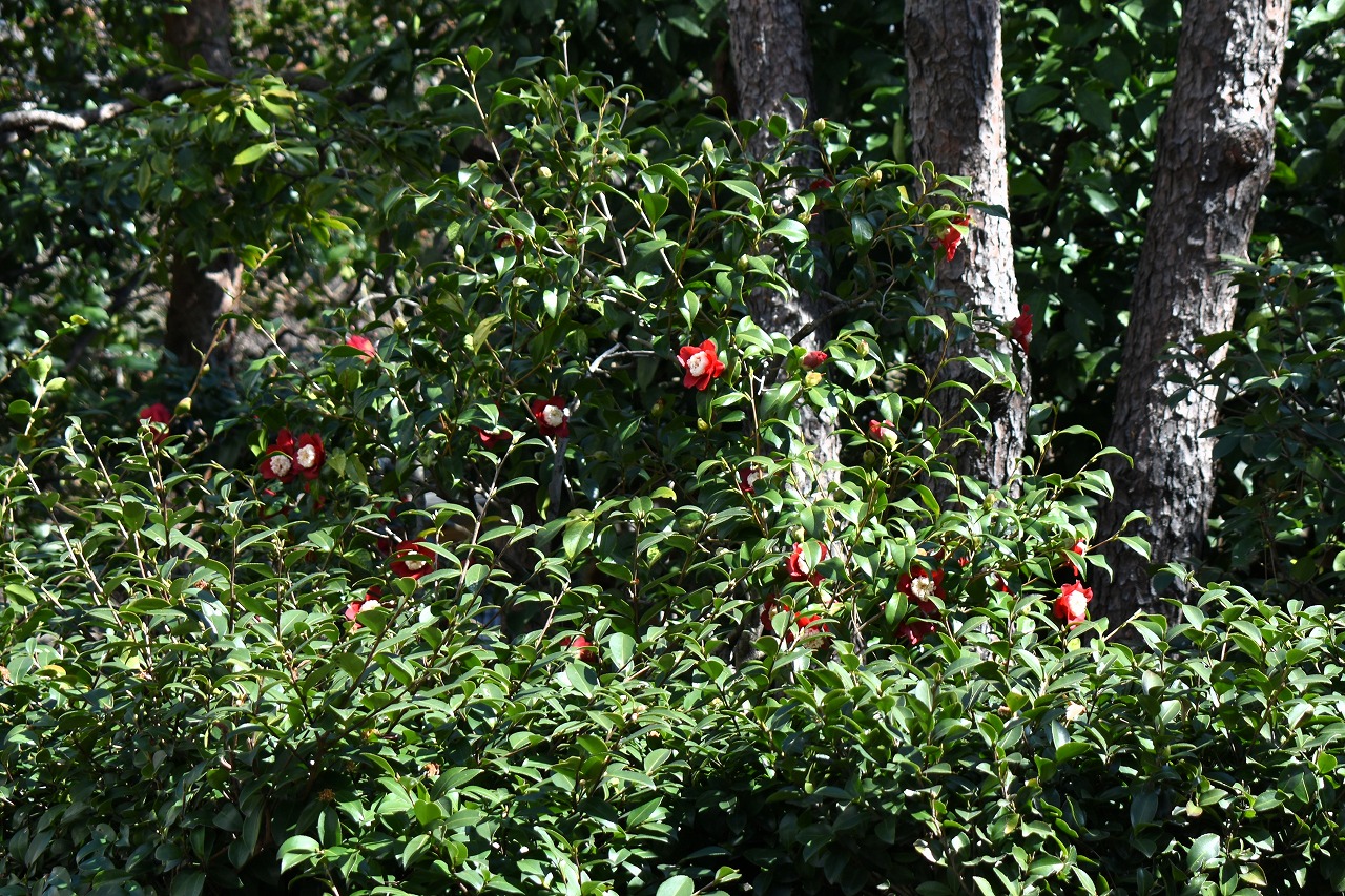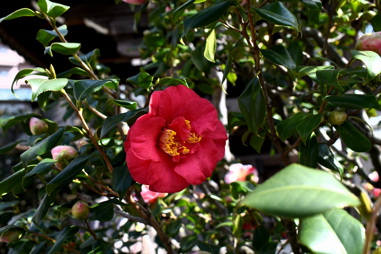 「一言」三田寺町には椿や梅、水仙、サンシュユなど色々な花が咲いています。慈眼寺や正山寺には色々な色の花が咲く椿の木に花が咲いていました。