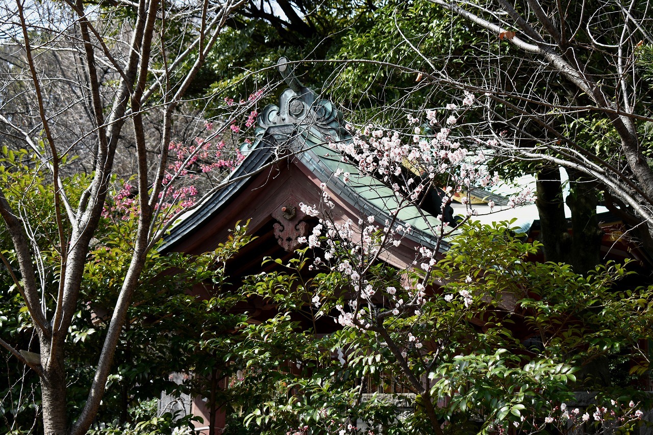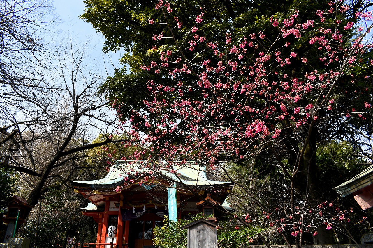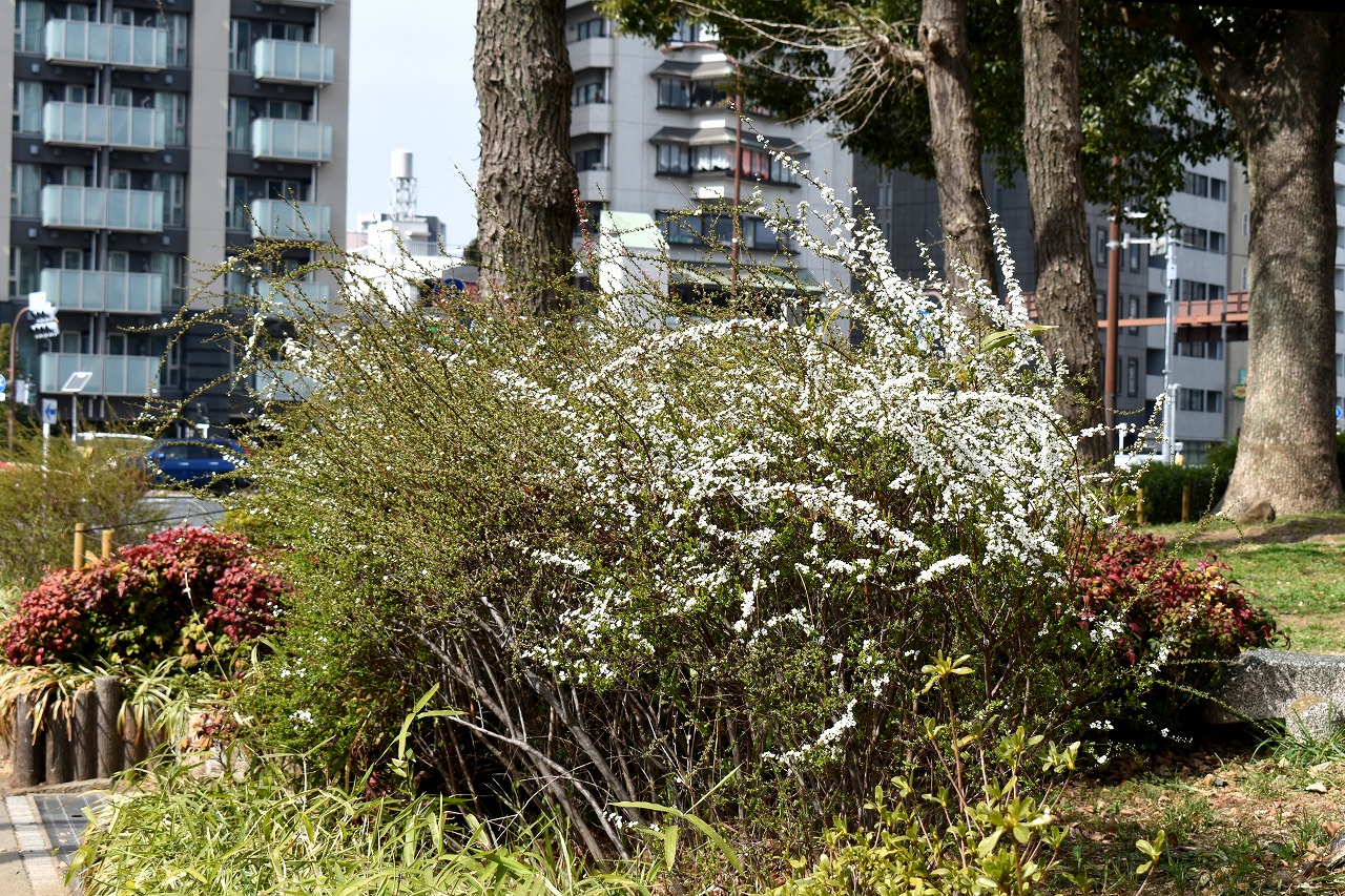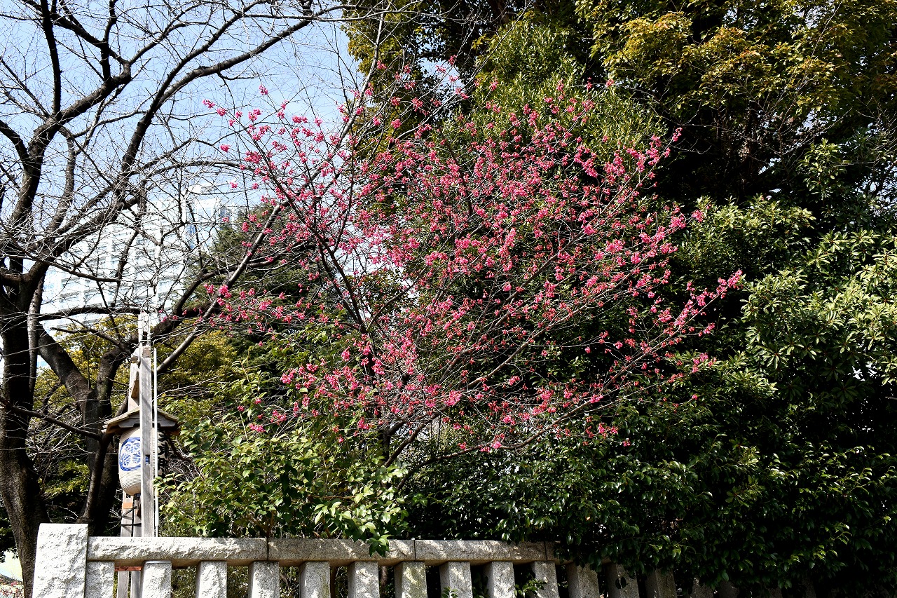 入口近くにはユキヤナギが咲き出しました。芝公園の広場の寒桜も満開です。芝東照宮の巻緋桜が咲き出しました。大きな鳥が来て