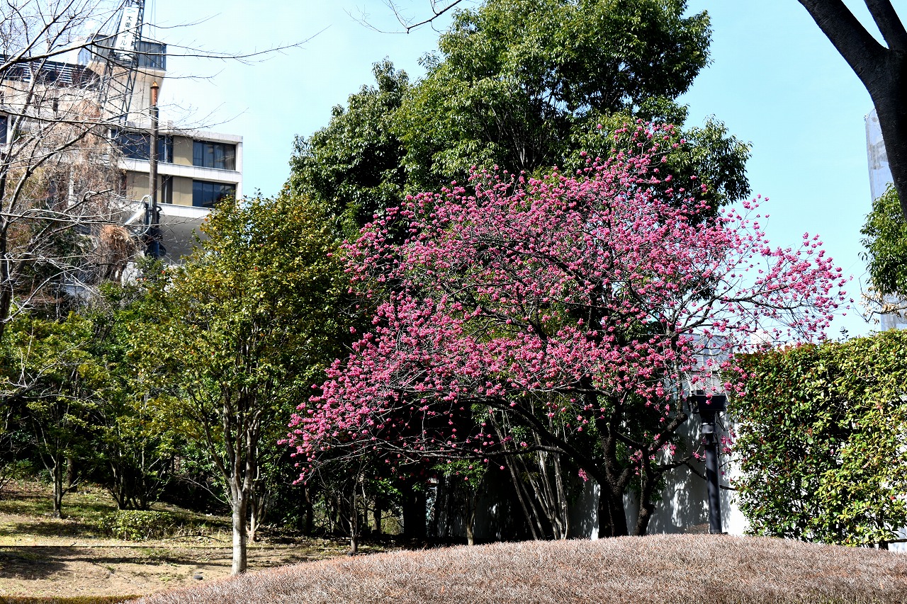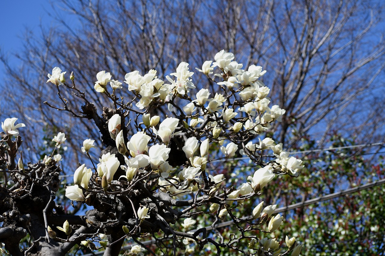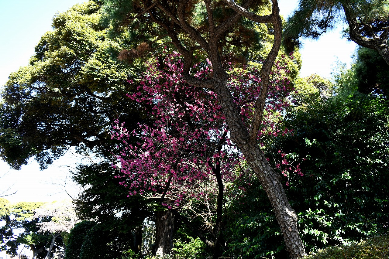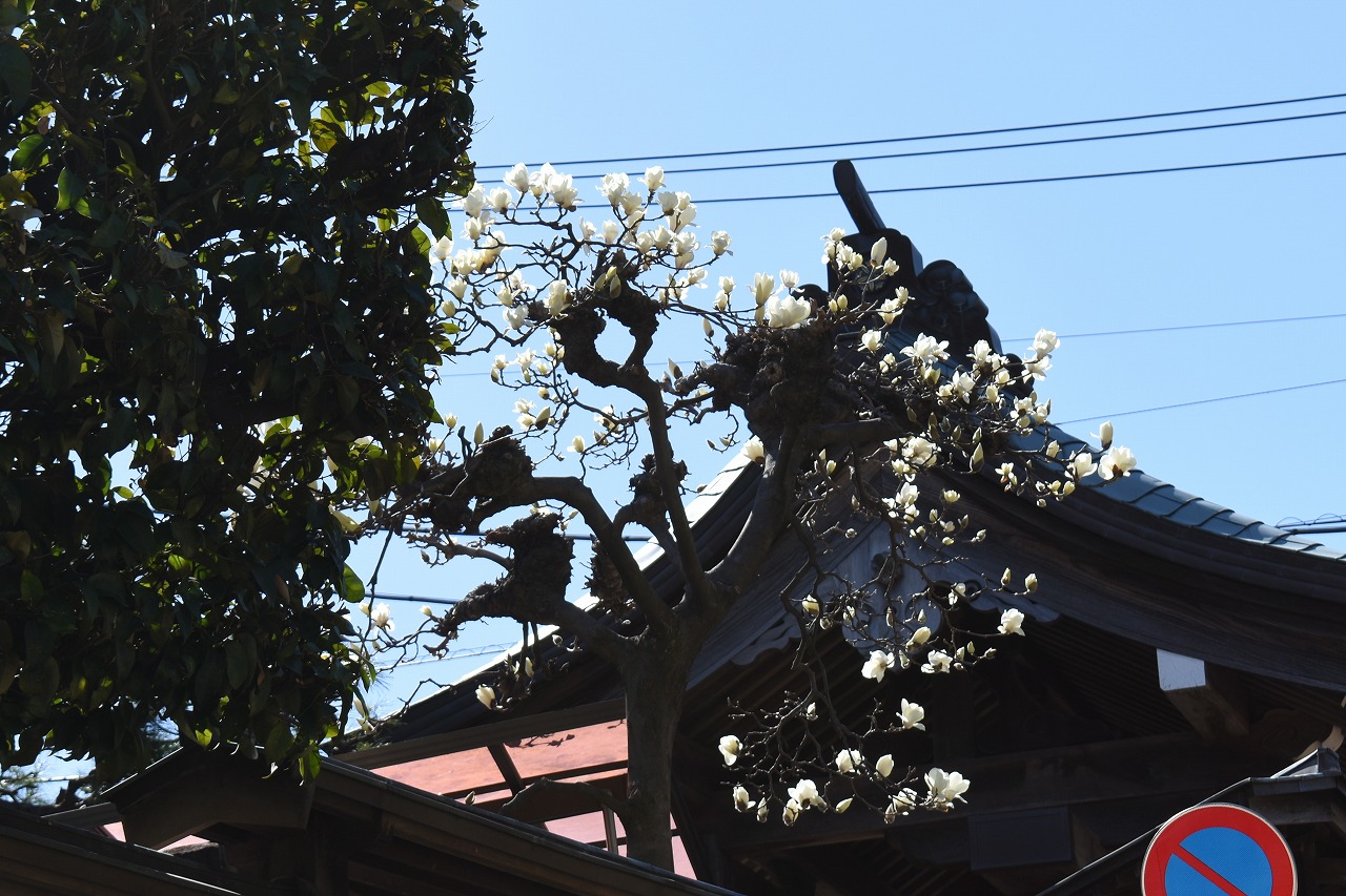 のところにも寒緋桜が咲いています。常林寺のモクレンも咲き出しました。三田寺町には色々な花が咲いています。