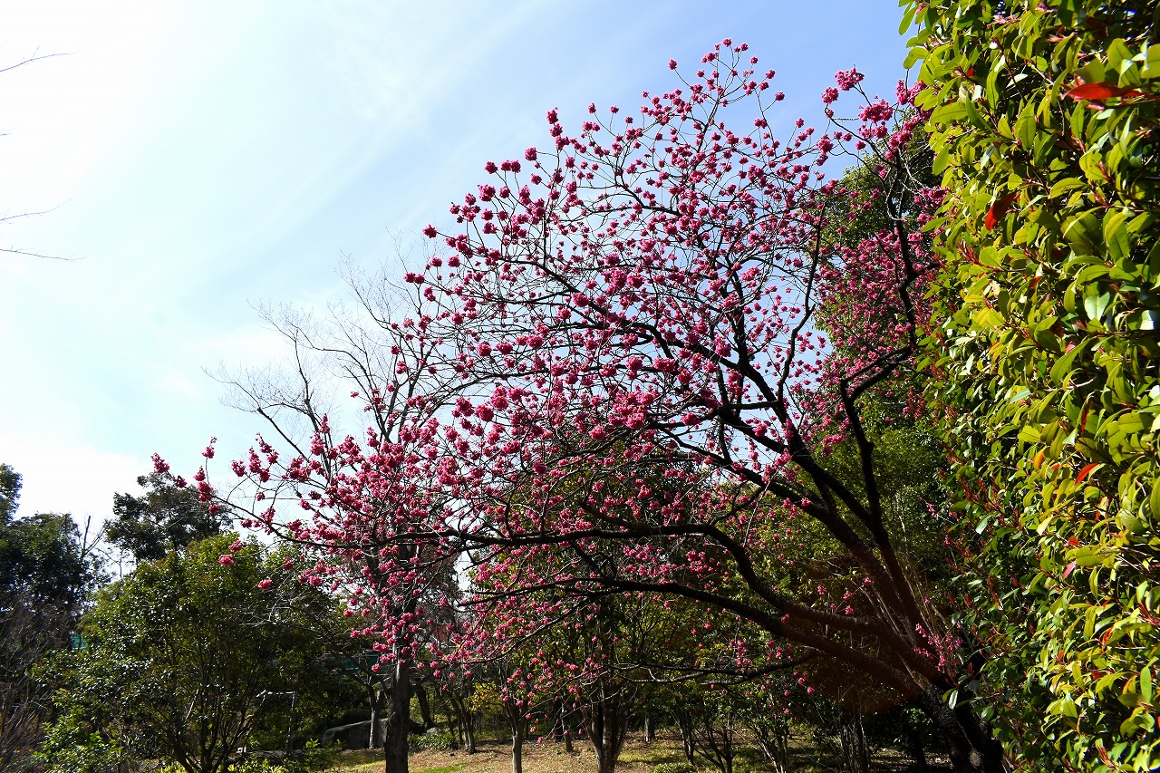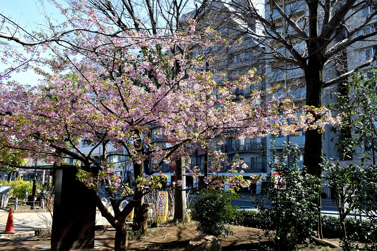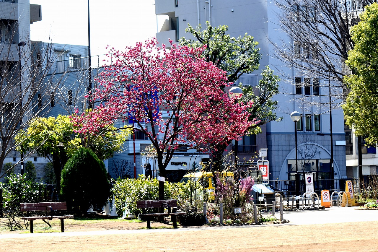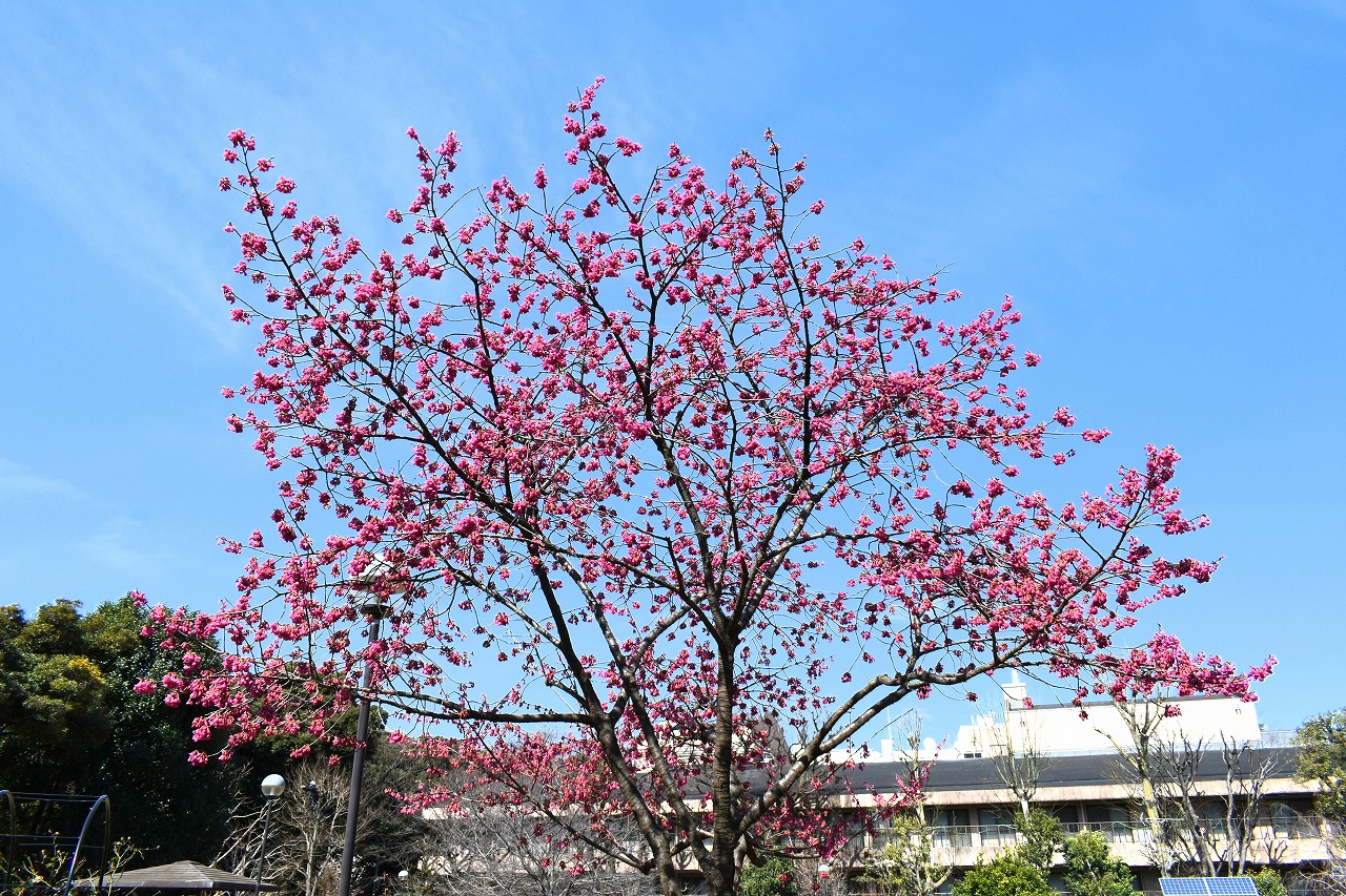 のところにも寒緋桜が咲いています。常林寺のモクレンも咲き出しました。三田寺町には色々な花が咲いています。