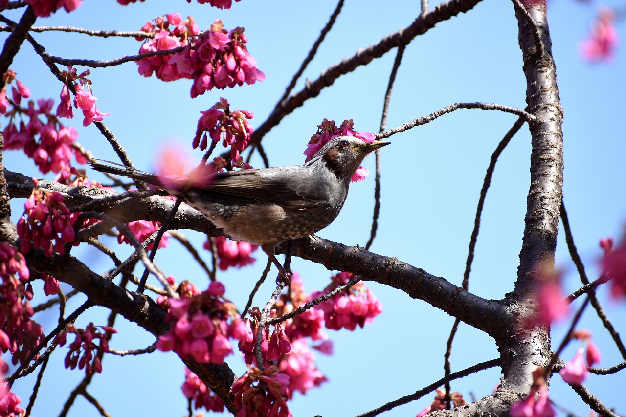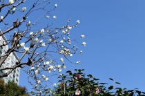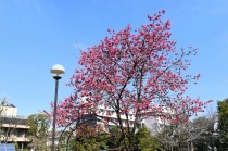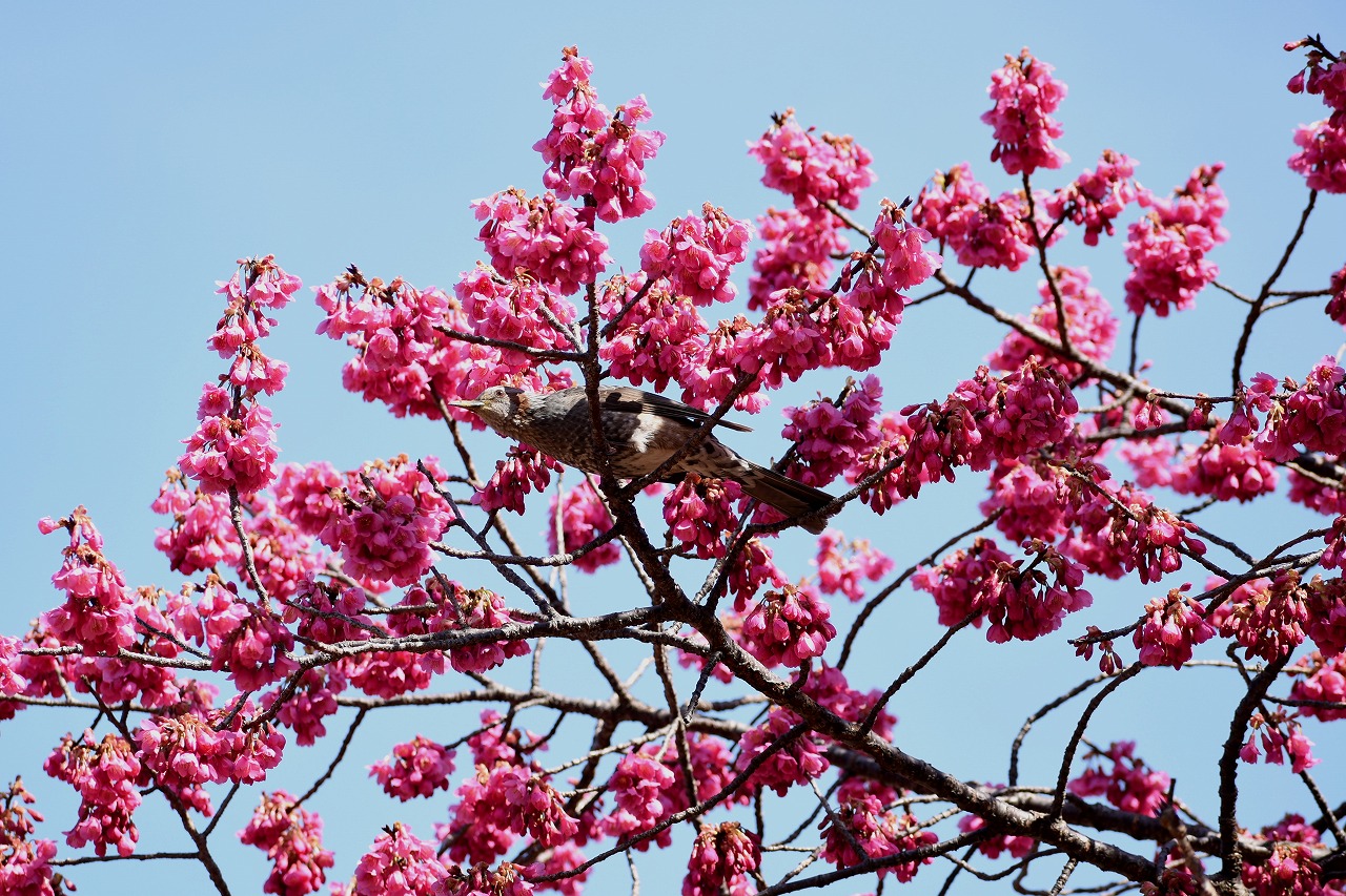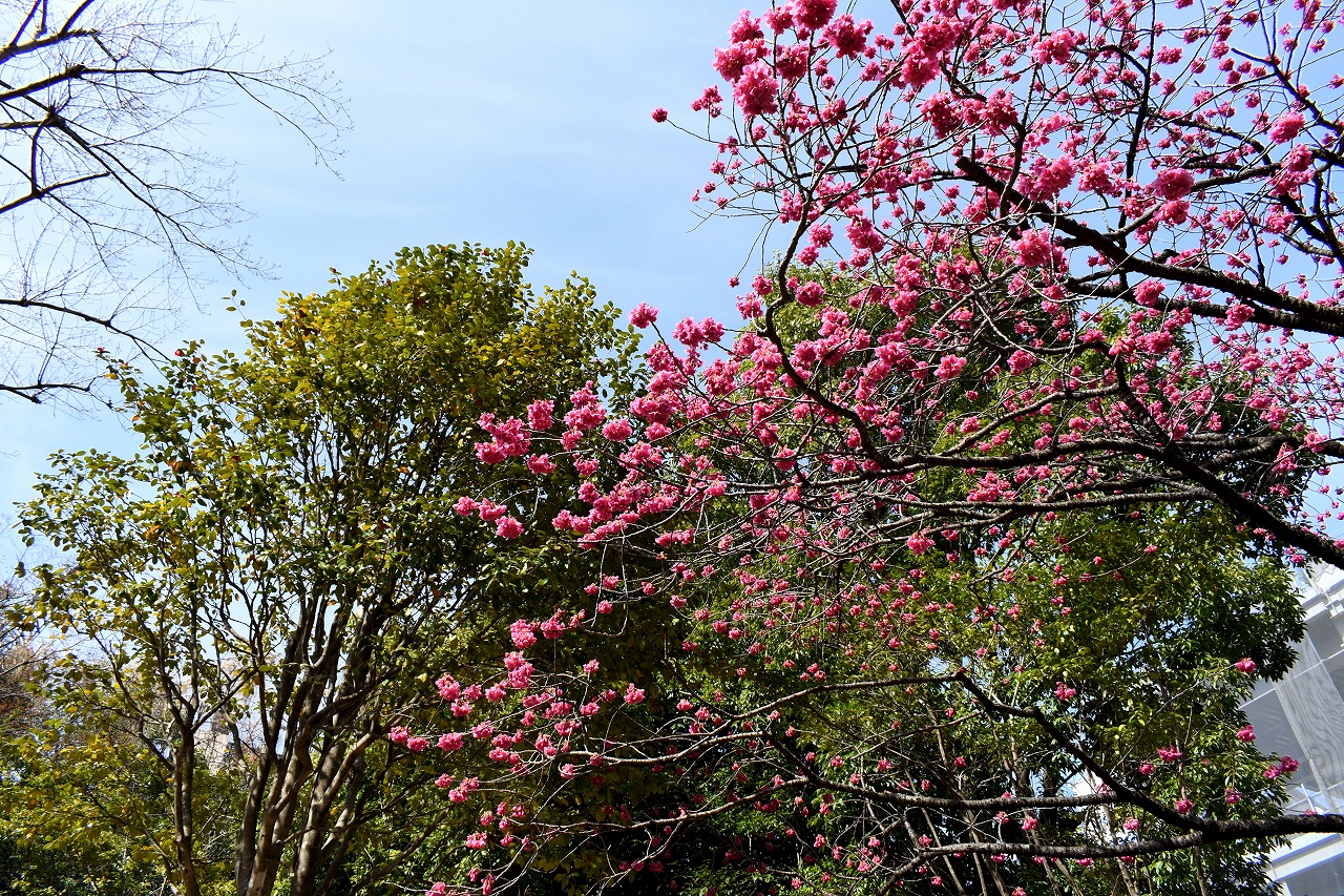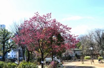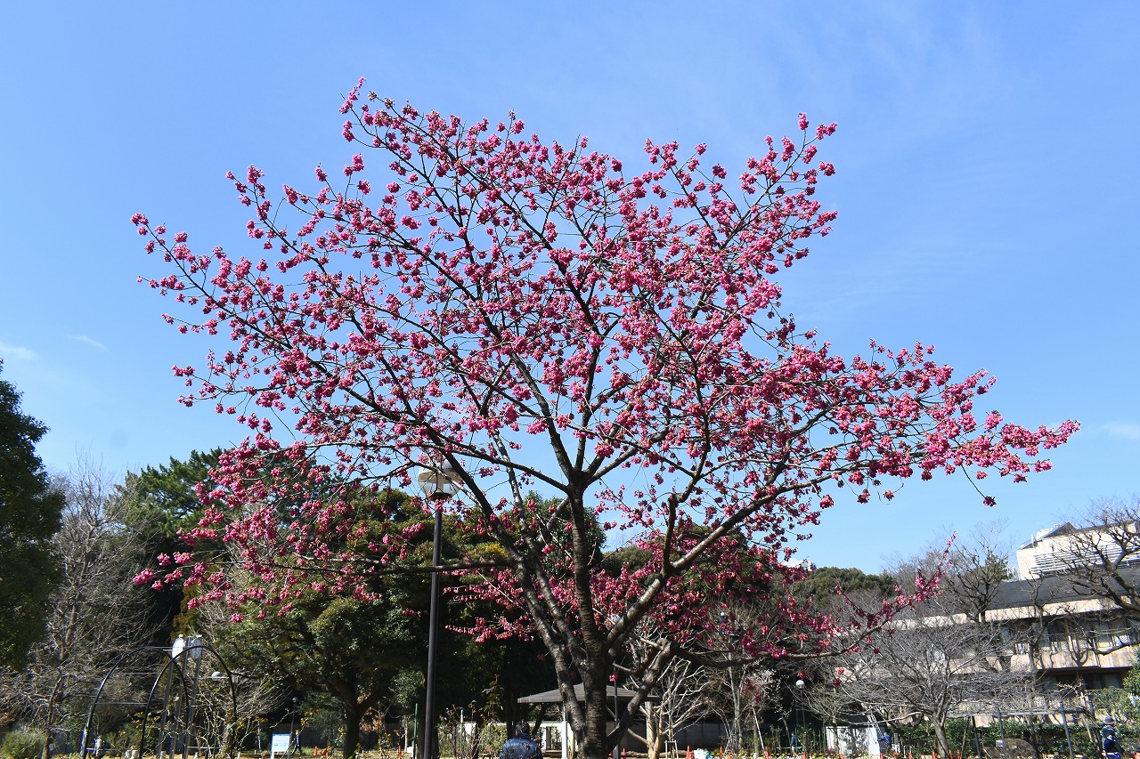 のところにも寒緋桜が咲いています。常林寺のモクレンも咲き出しました。三田寺町には色々な花が咲いています。