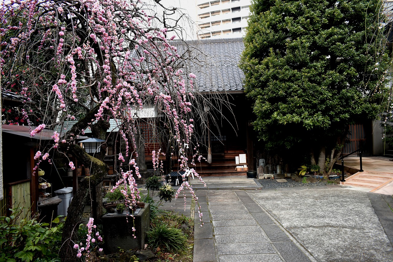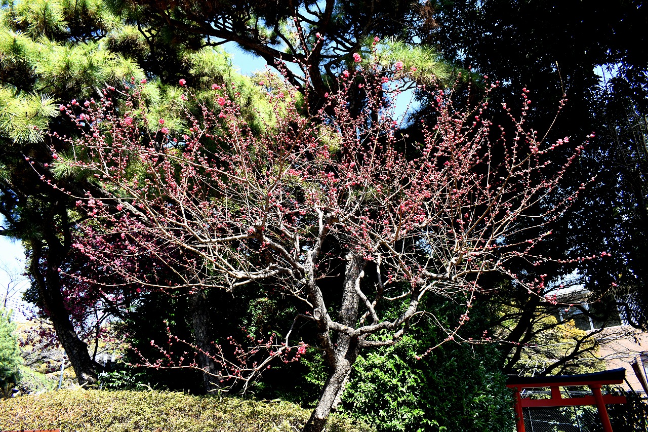 明王院のしだれの紅梅も見頃になりました。普連土学園や龍源寺にサンシュユの黄色い花が咲いています。三田三丁目四丁目の再開発