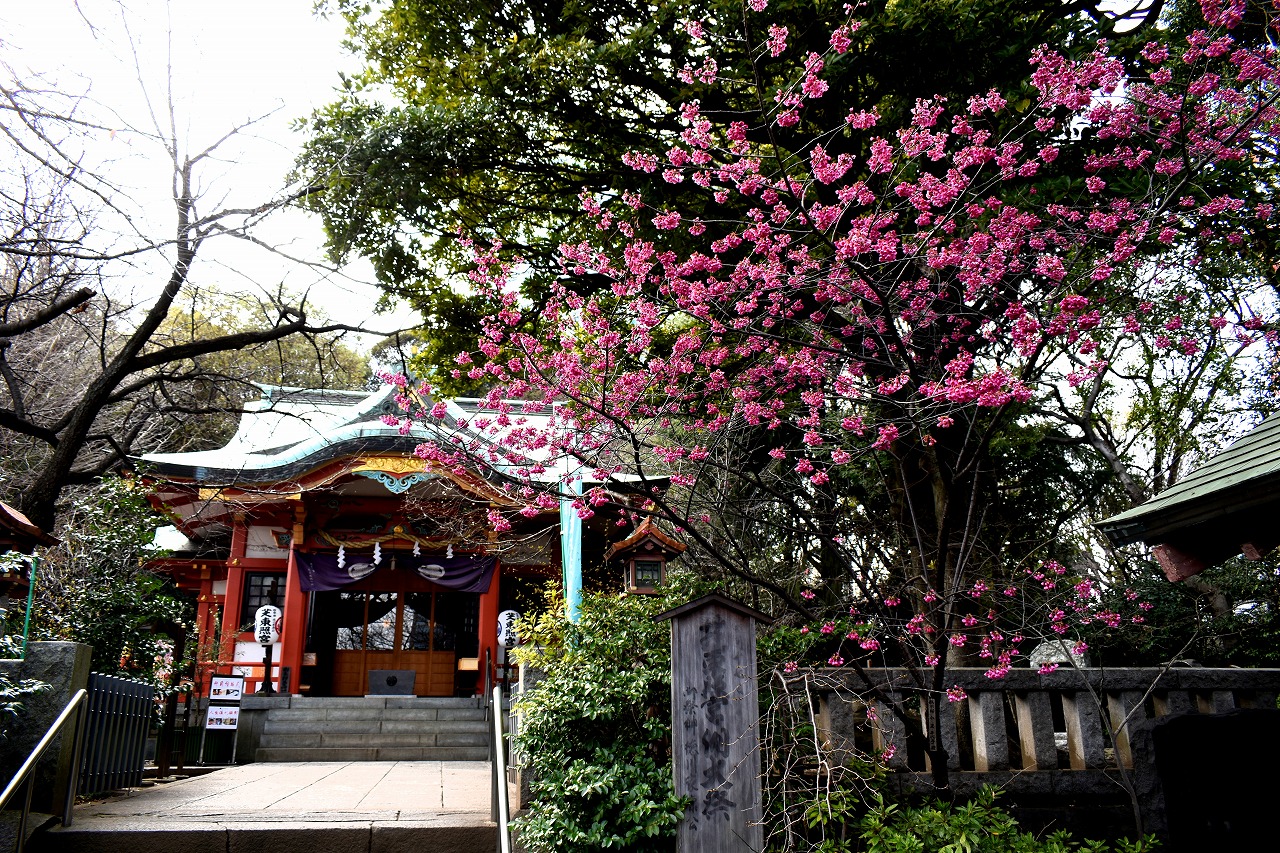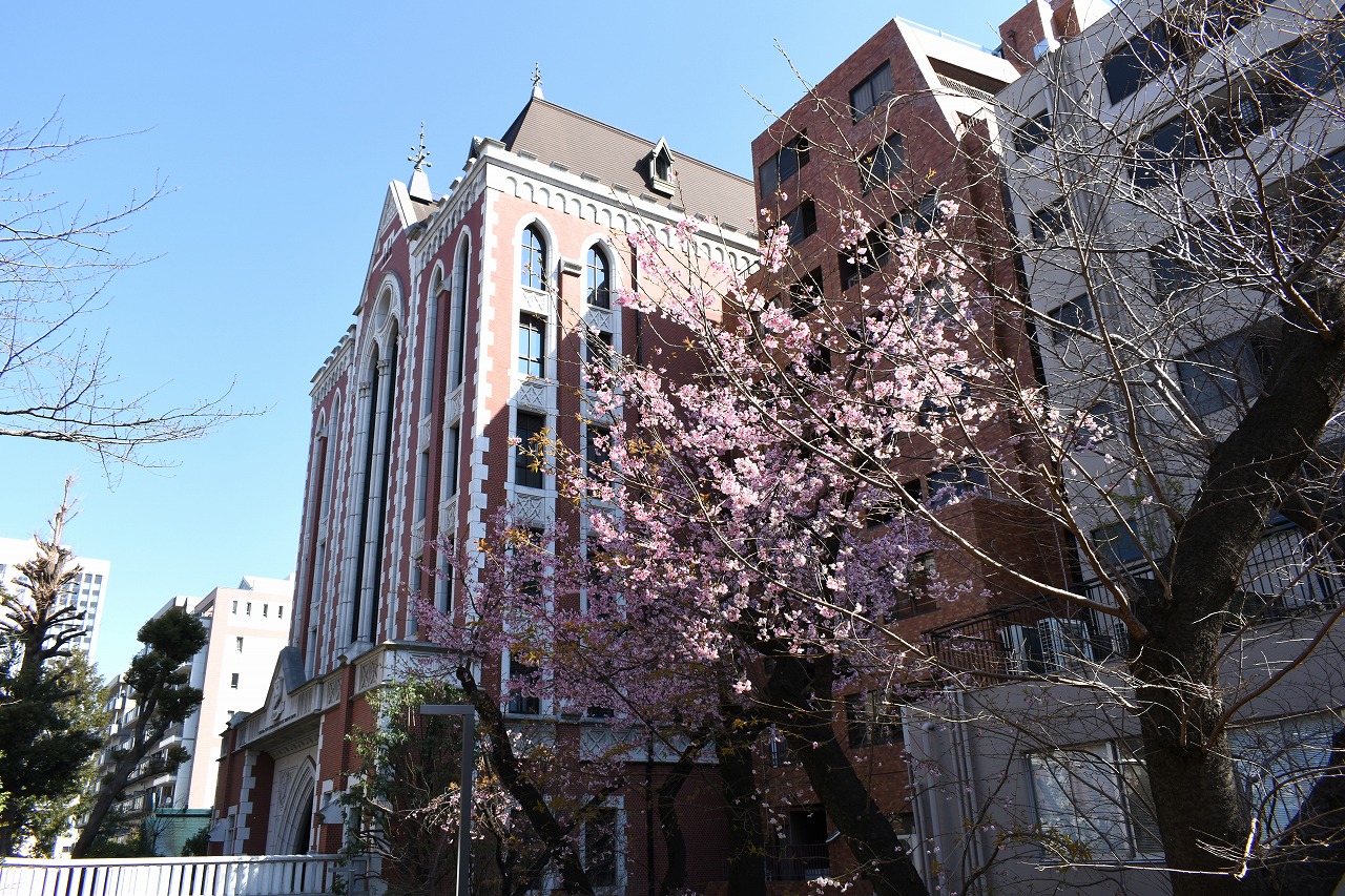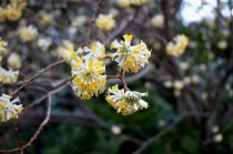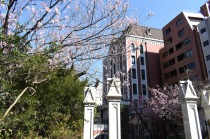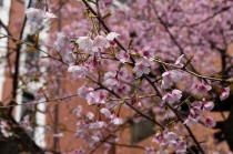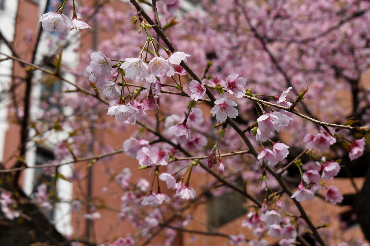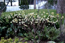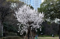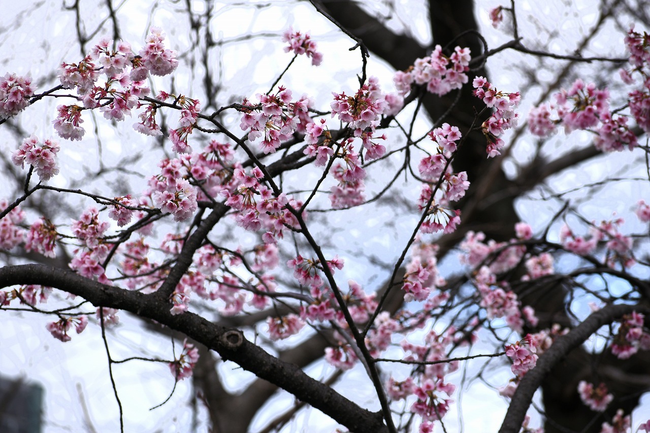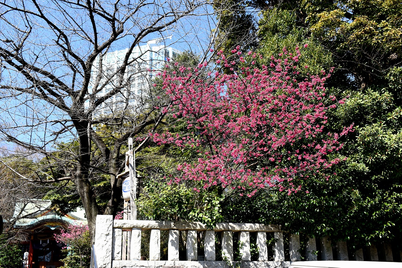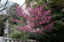 2種類のスモモの木に白い花が満開です。マンサクやサンシュユの黄色い花も見頃です。東京プリンスホテルにはエドヒガンサクラ