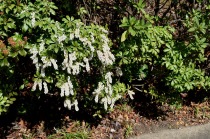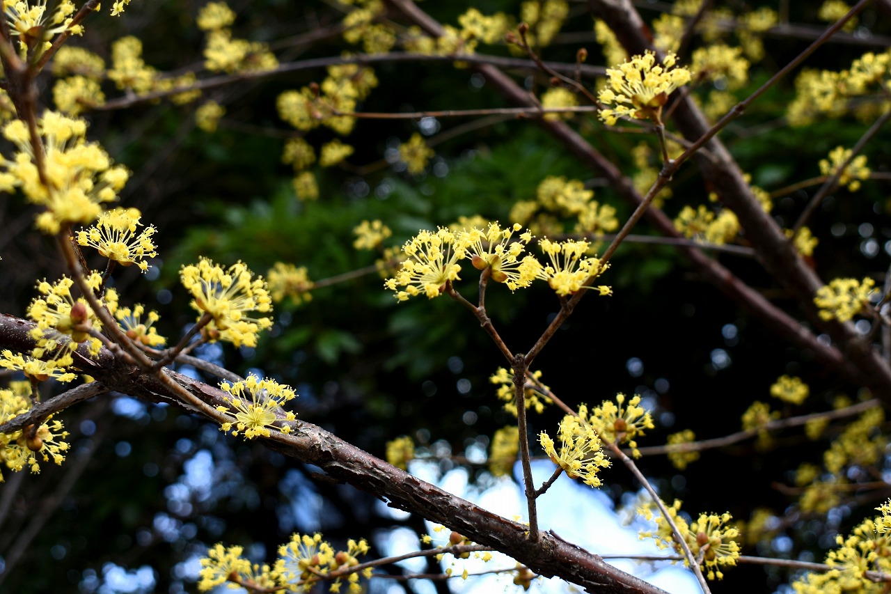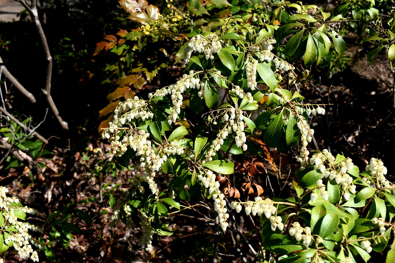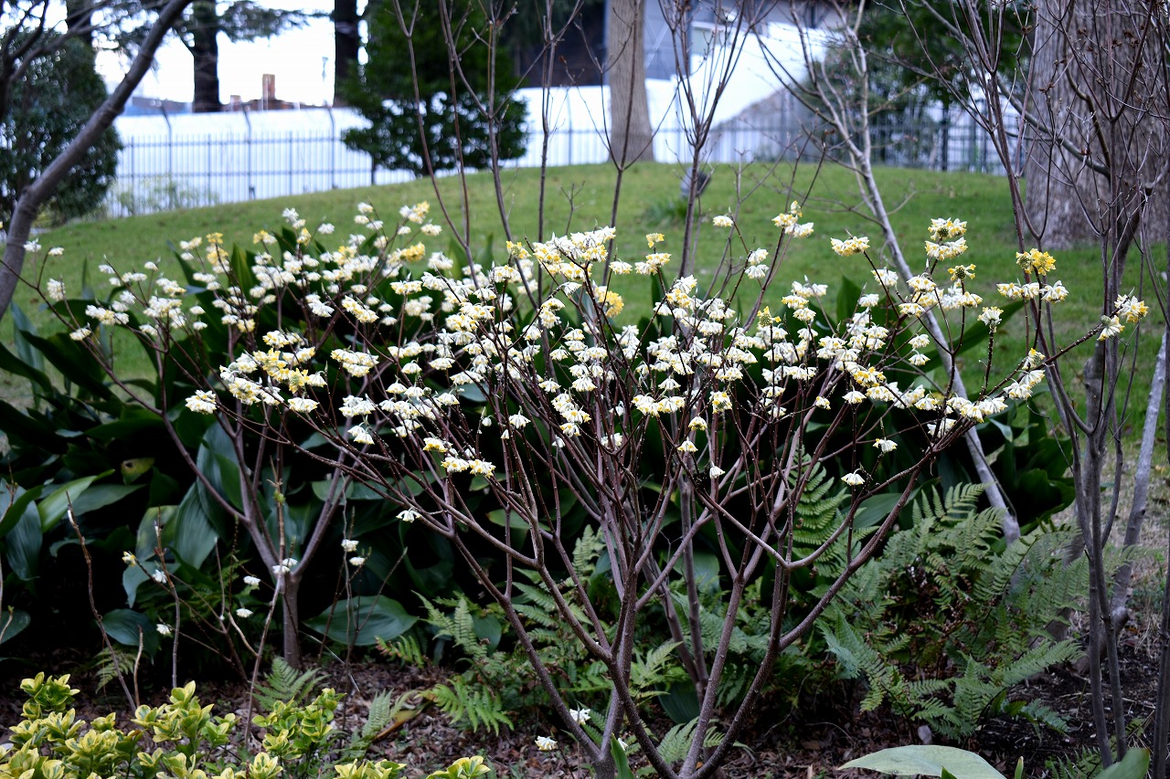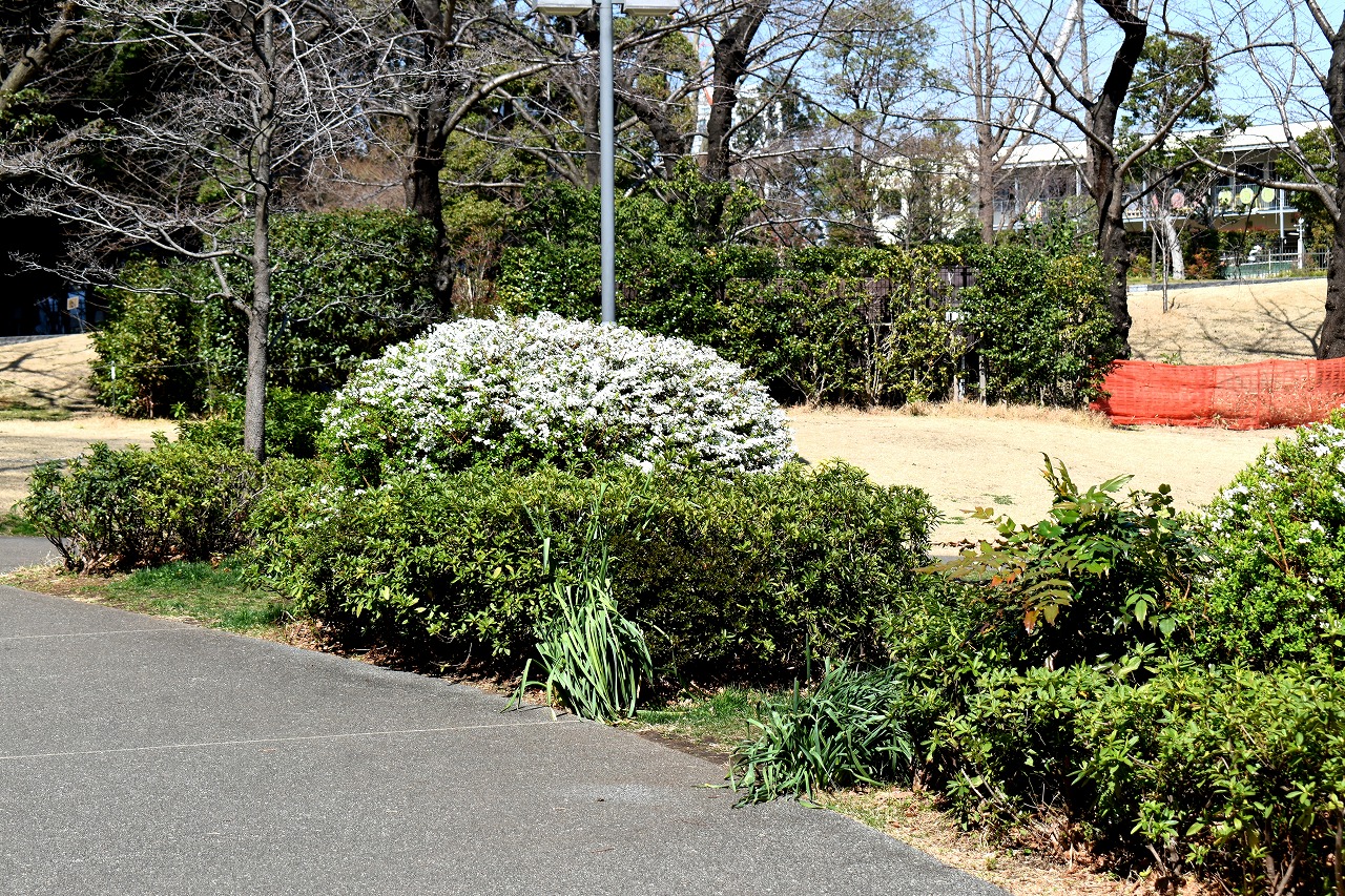 の花が咲いています。桧町公園にはアセビやヒュウガミズキがたくさん咲いています。ユキヤナギも咲き出しました。大きな柳の枝