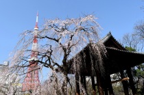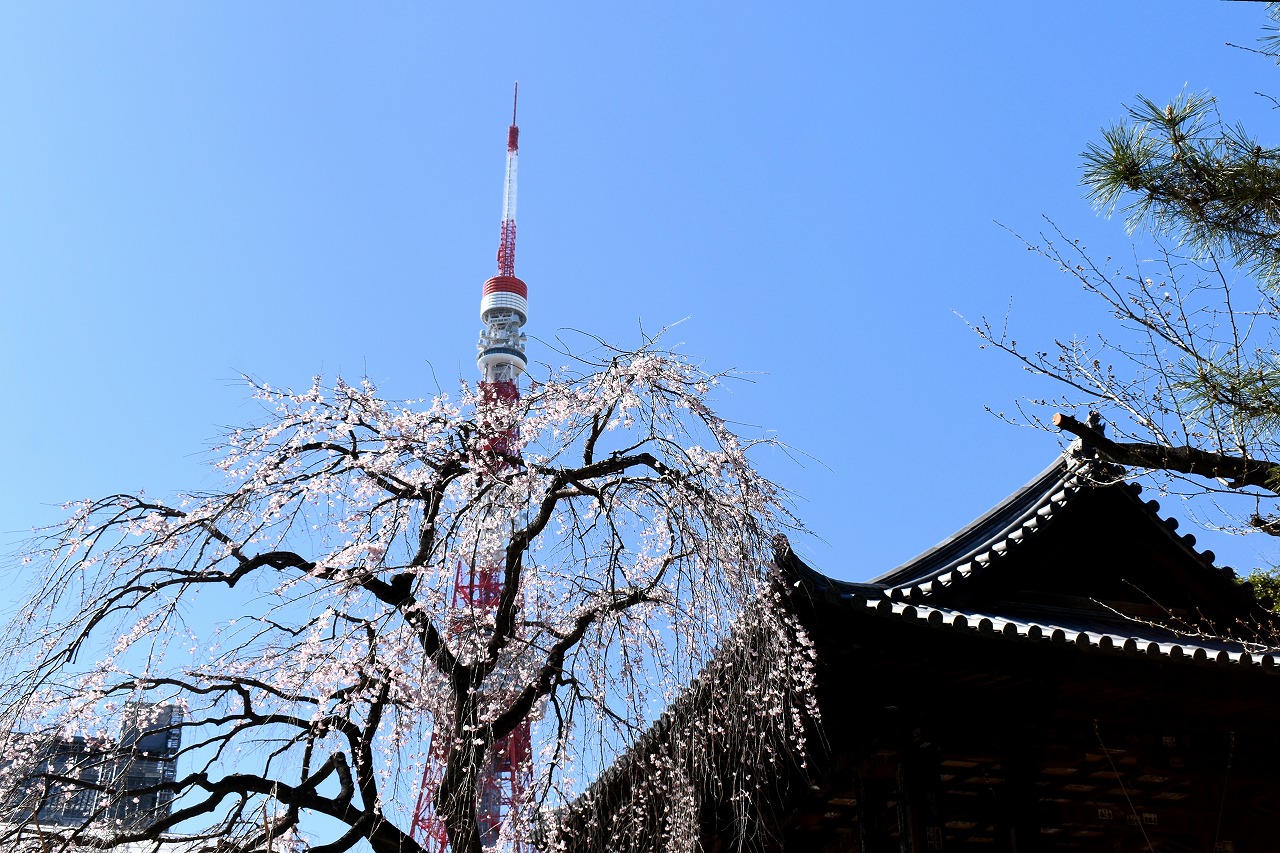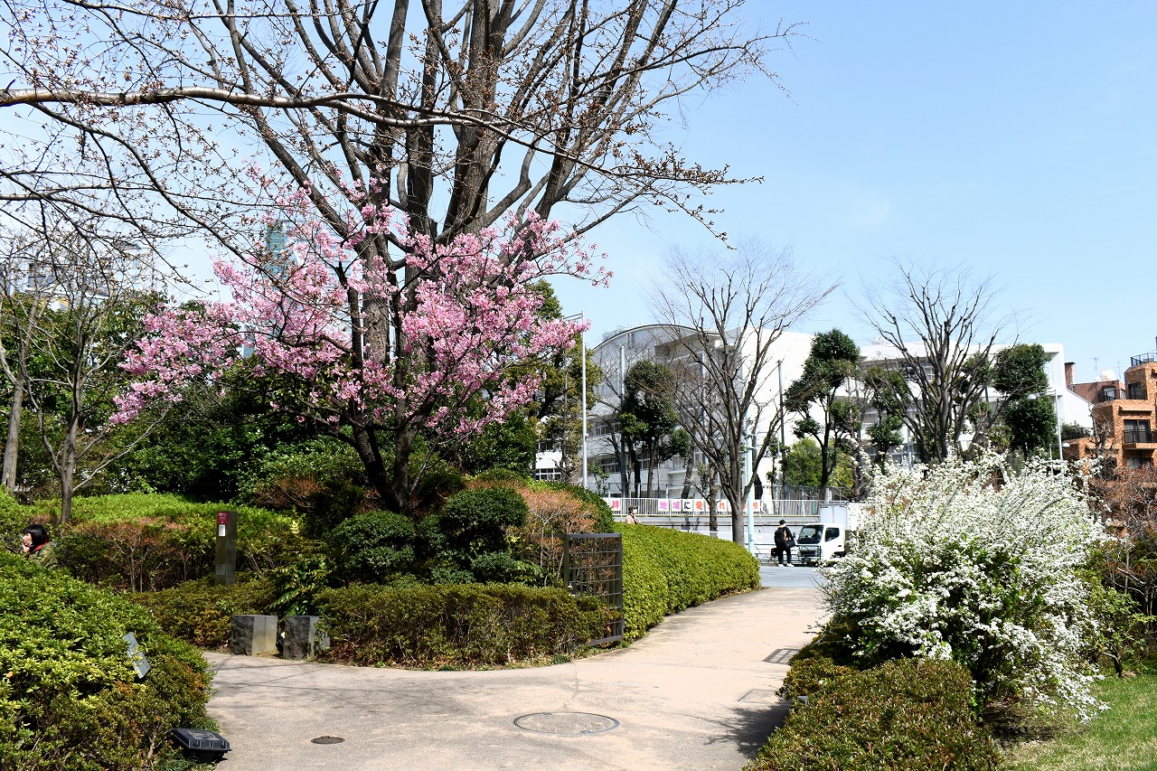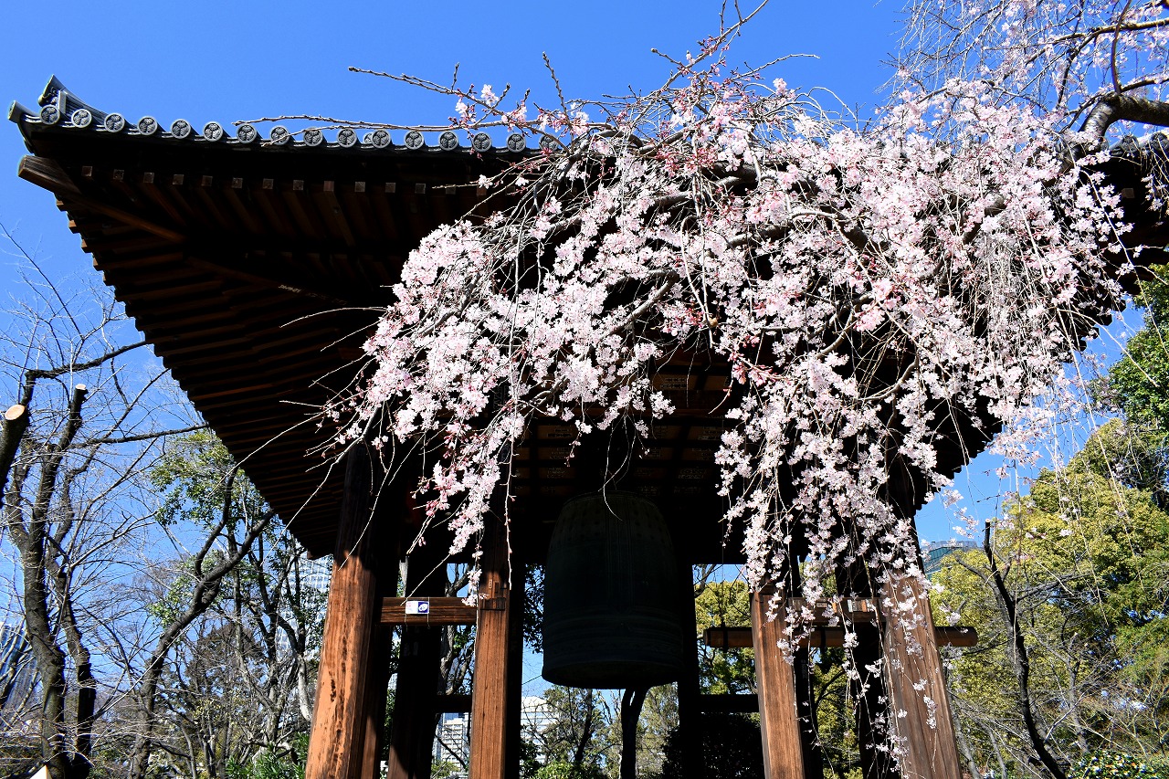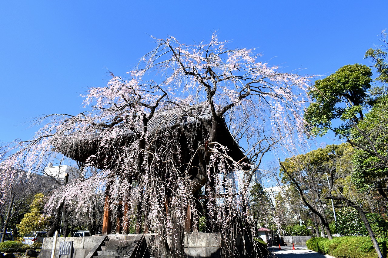 「一言」増上寺のしだれの桜が咲き出し綺麗です。花が小さく写真を撮りましたが実際に見る感じのように綺麗には表現できませんでした。 愛宕山の陽光桜も満開です。山の上の陽光桜はビルの陰になり、花の色は写真の色とは少し違っています。本芝公園にはシャクナゲ が咲いています。乃木神社のしだれ桜が咲き出しました。桧町公園の柳の緑色が濃くなりカーテンのようになっています。毛利庭園の 陽光桜が見頃です。コブシもまだ咲いています。