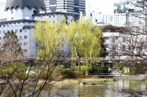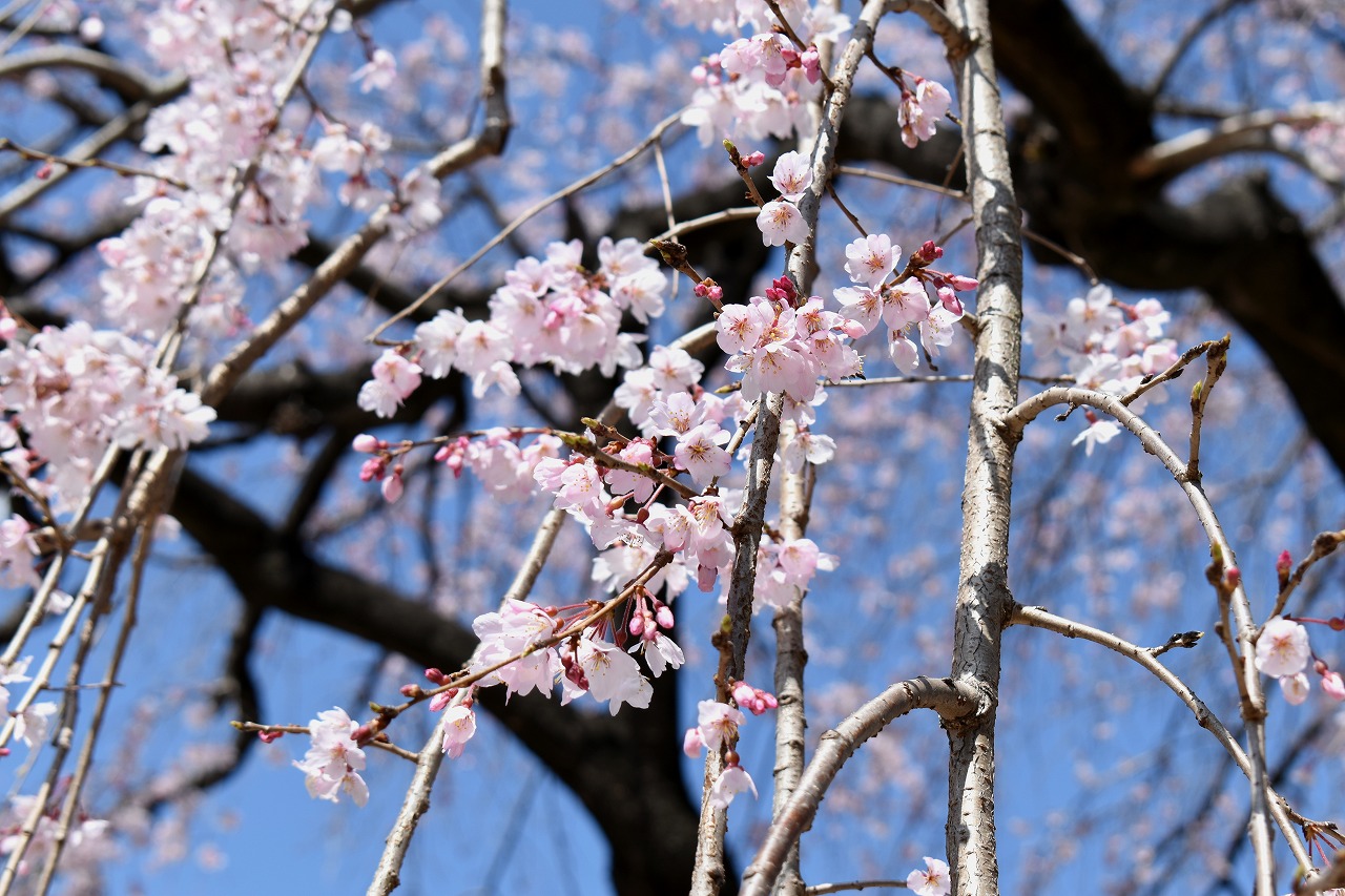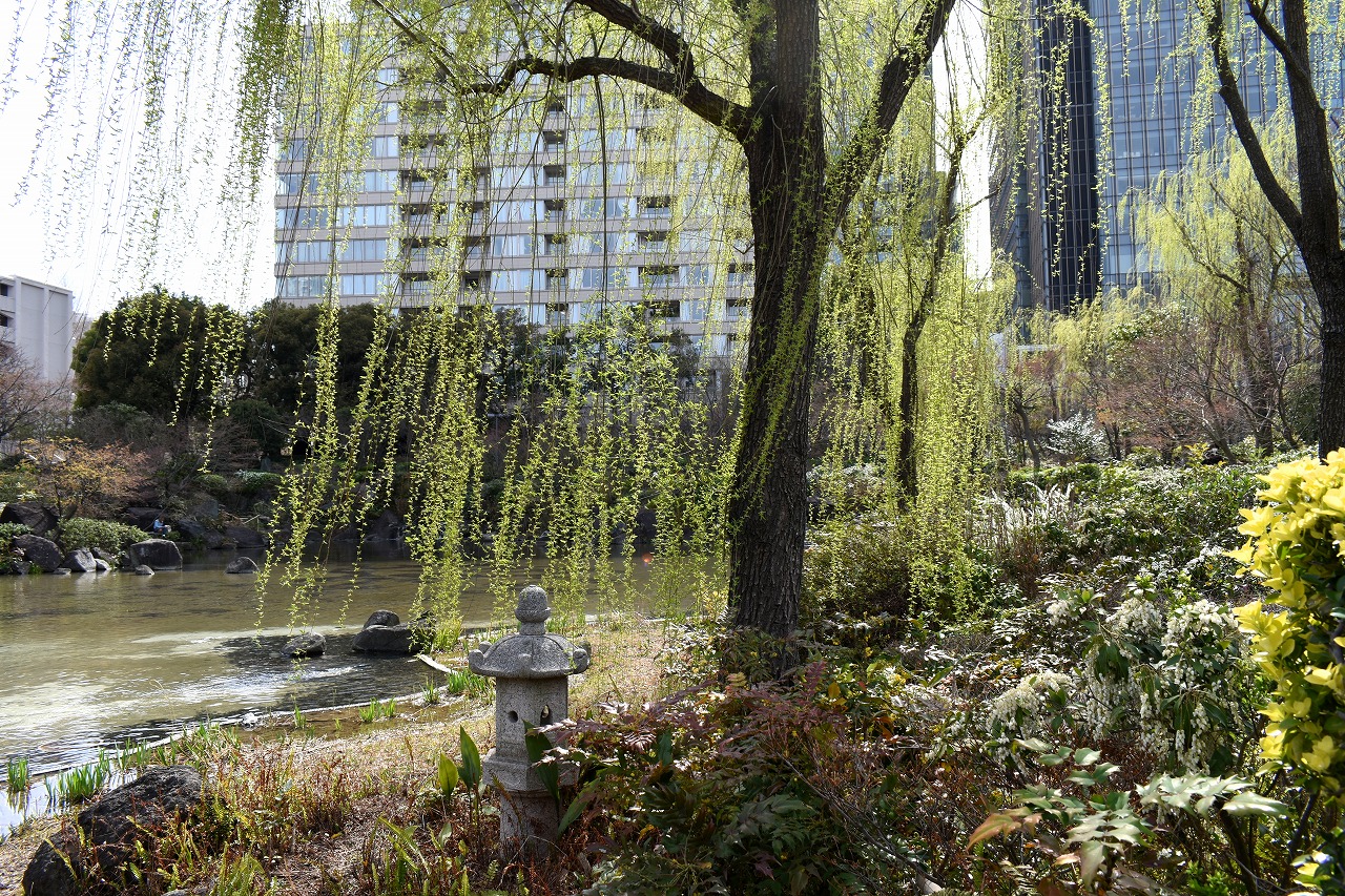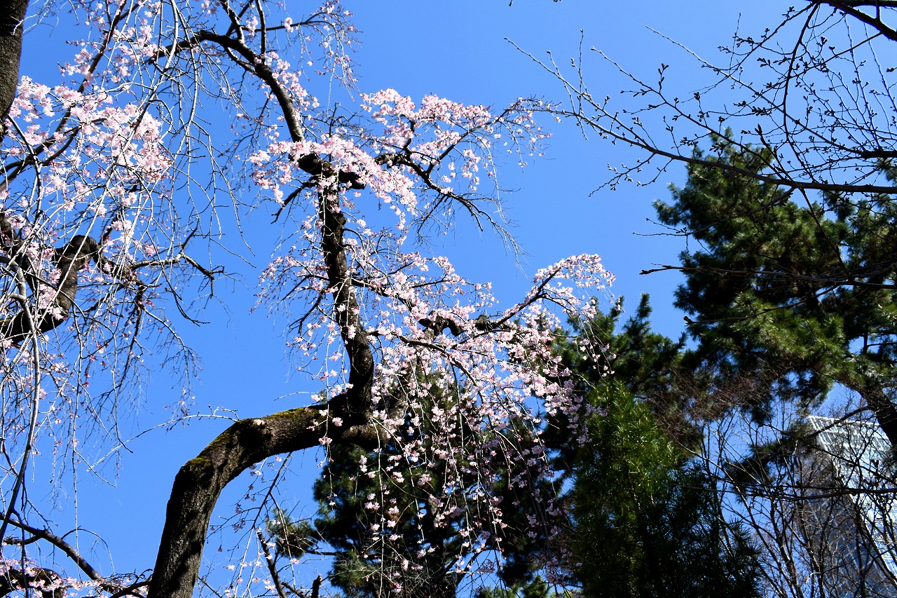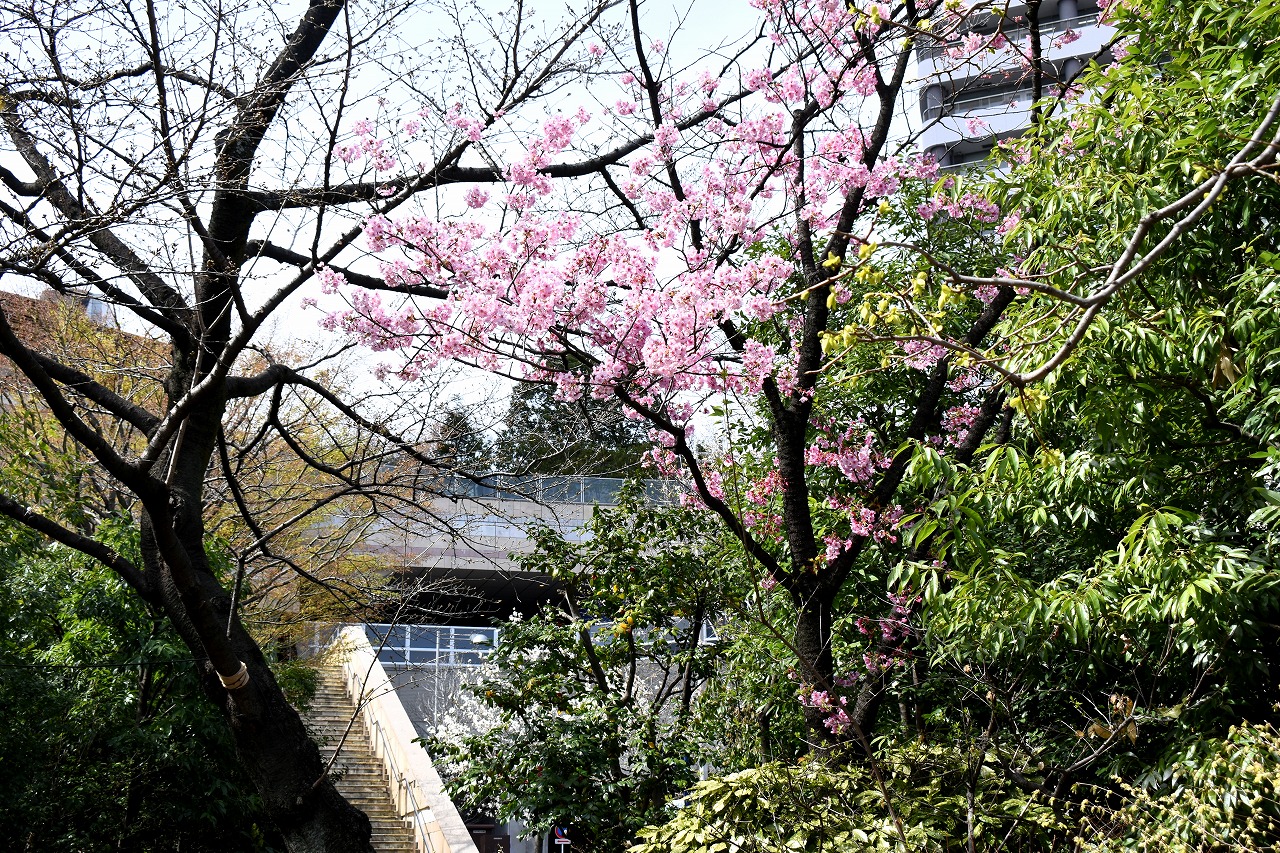 「一言」増上寺のしだれの桜が咲き出し綺麗です。花が小さく写真を撮りましたが実際に見る感じのように綺麗には表現できませんでした。 愛宕山の陽光桜も満開です。山の上の陽光桜はビルの陰になり、花の色は写真の色とは少し違っています。本芝公園にはシャクナゲ が咲いています。乃木神社のしだれ桜が咲き出しました。桧町公園の柳の緑色が濃くなりカーテンのようになっています。毛利庭園の 陽光桜が見頃です。コブシもまだ咲いています。