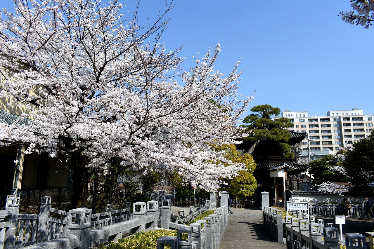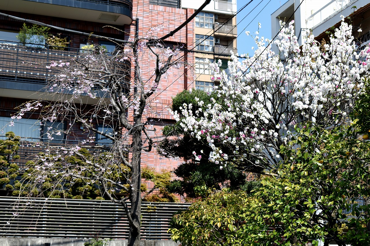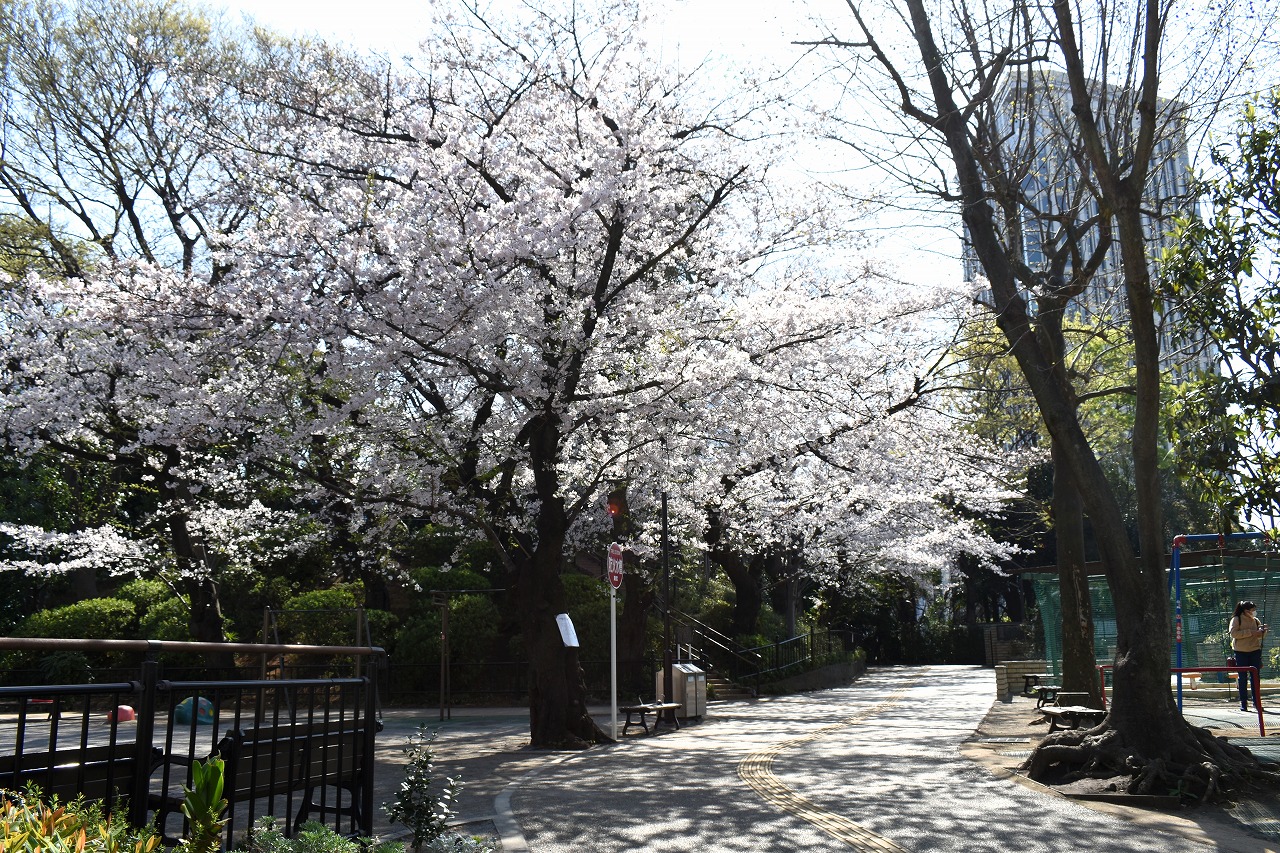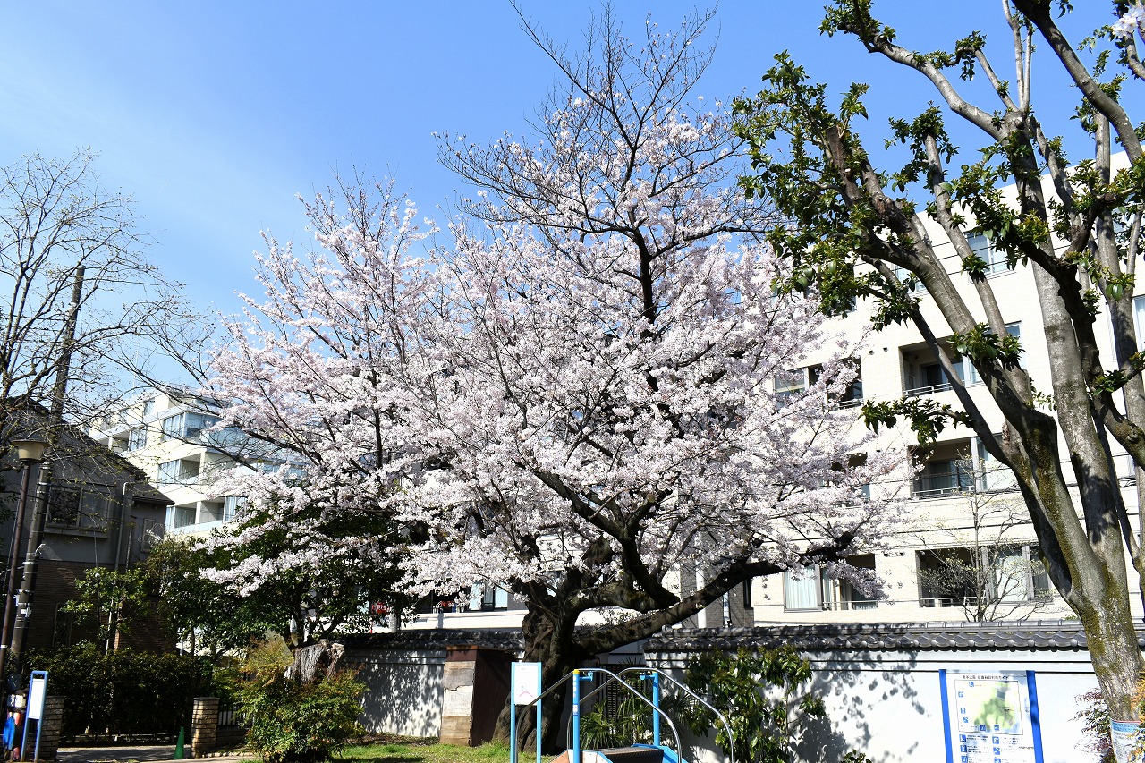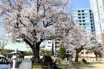 「一言」亀塚公園の大きな桜の木々が見頃になりました。魚籃坂下にはサクラソウが咲き出しました。高野山東京別院の桜も見頃です。